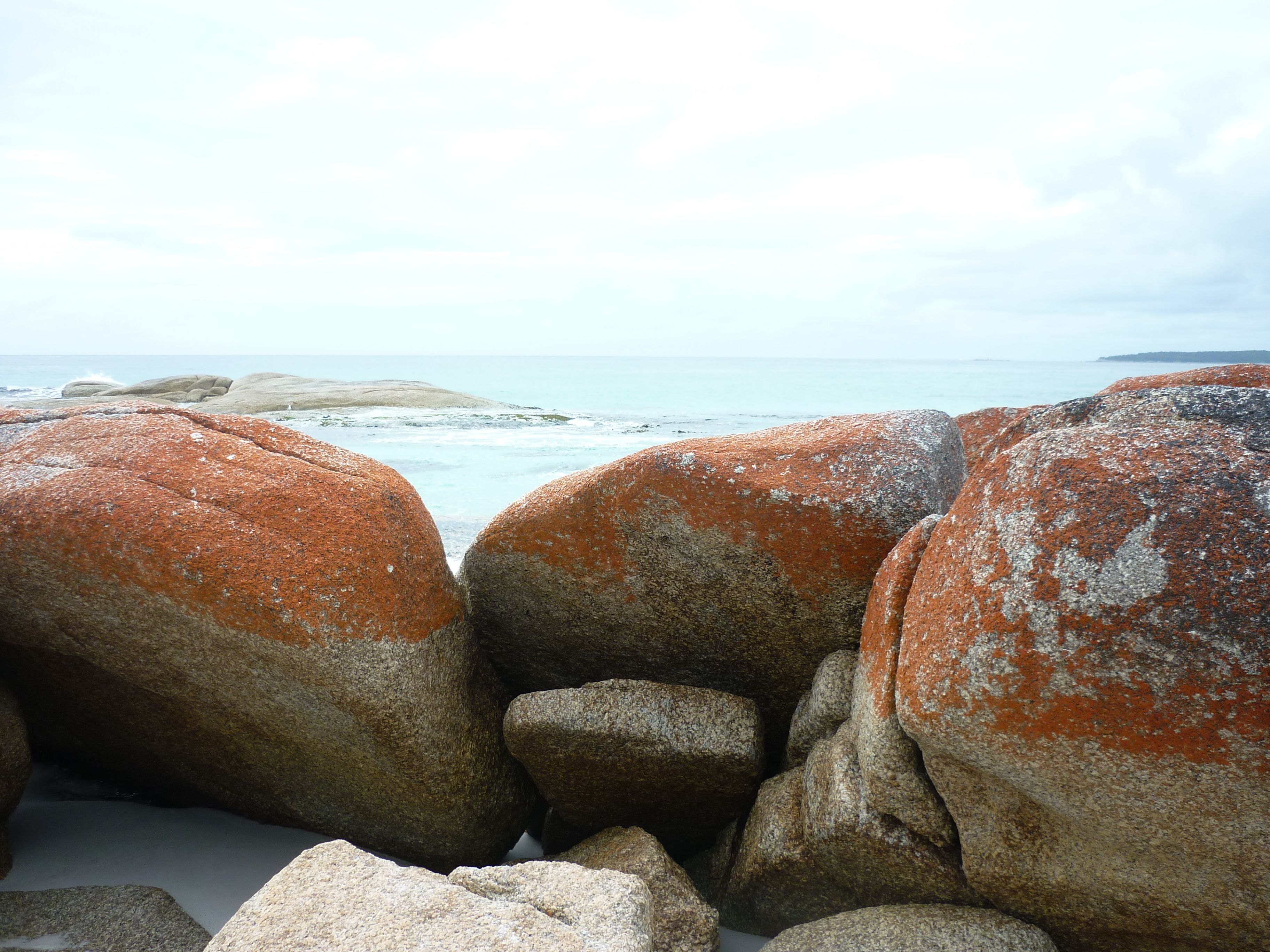 My husband and I were taken to the beach at Binalong Bay, on the north eastern coast of Tasmania in February last year, 2012, and the sight of these colourful rocks left as lasting impression on us.