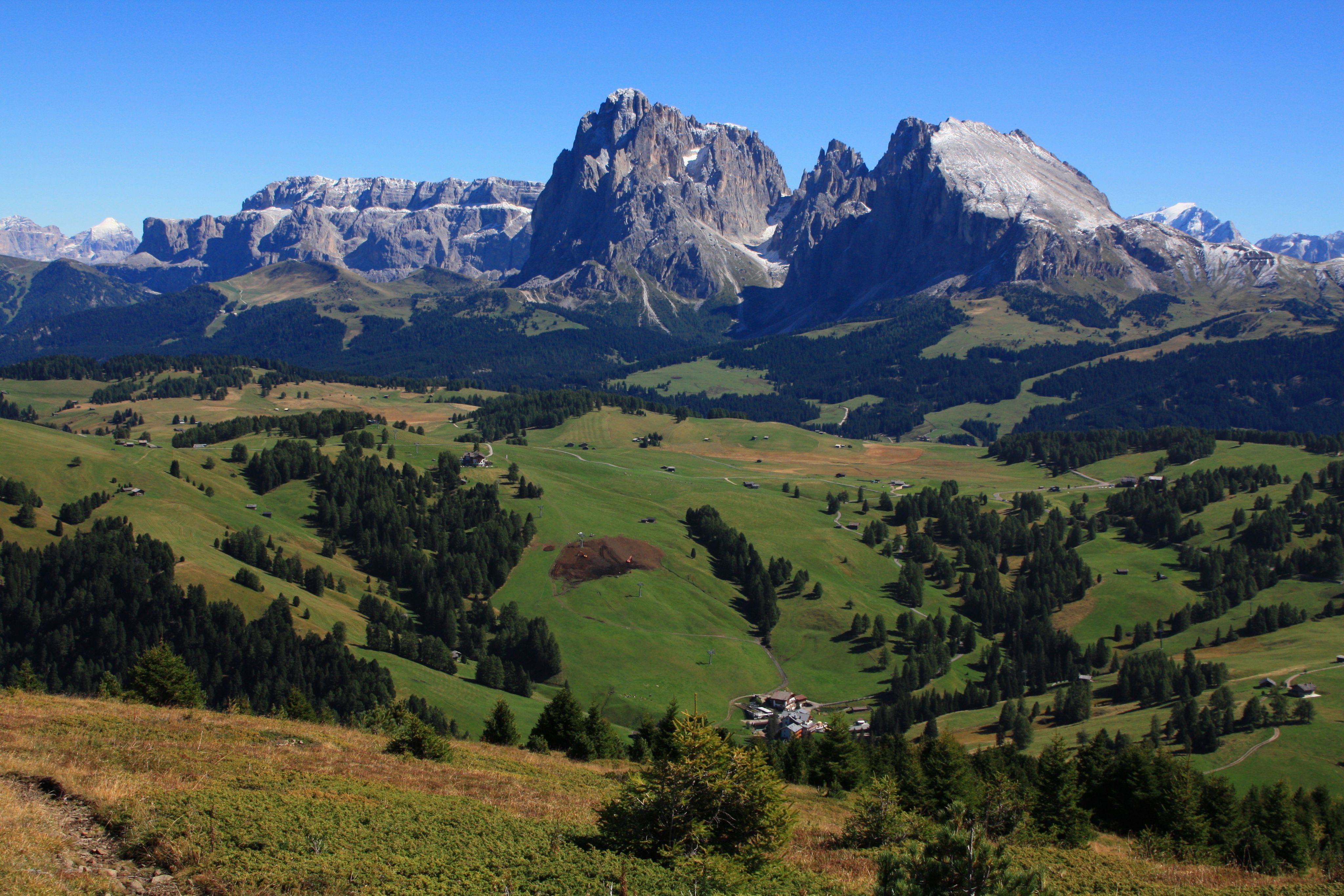 We were in the Dolomites for two nights staying in Castelrotto, Italy and took a side trip to Alpe di Siusi, the largest alpine meadow in Europe. What a fantastic place - we felt like we were on the set for "The Sound of Music". This shot taken near Compatsch in September 2012.
