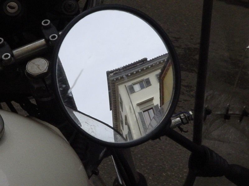 I captured this reflection in the mirror of a Vespa. We referred to them as Zanzarri (mosquitos) because of the constant drone of their engines. They were everywhere!