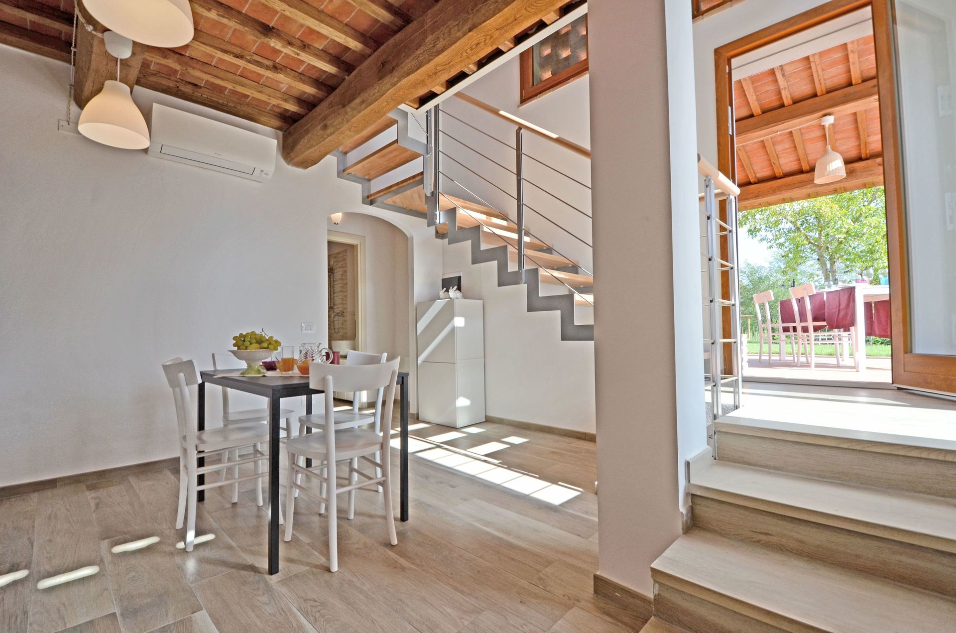 La casa è stata ricavata dalla ristrutturazione di un antico fienile ed è stata trasformata in una comoda e confortevole casa di campagna. All'esterno di trova un bel giardino con piscina panoramica.