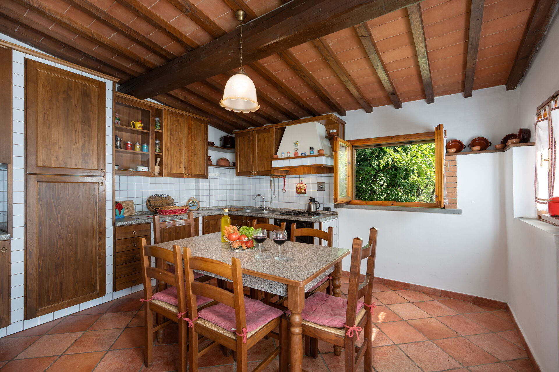All'arrivo sarai accolto dal proprietario o dal gestore della tua bellissima casa vacanze, una proprietà pulita e tenuta in ottime condizioni con vista sulle montagne, ideale per una tranquilla vacanza in Toscana. Dopo una impegnativa giornata ricca di visite ai musei locali, concediti del tempo con famiglia e amici a bordo piscina per gustarti una bibita rinfrescante o un buon calice di vino - non c'è niente di meglio per riposarti alla fine della giornata. C'è una cucina con macchinetta per il caffè, fornelli e frigorifero, così come un numero sufficiente di stoviglie e posate per un massimo di otto persone. Se preferisci mangiare all'aperto, c'è a tua disposizione un giardino completamente accessoriato dove potrai goderti il bel tempo durante i tuoi pasti.