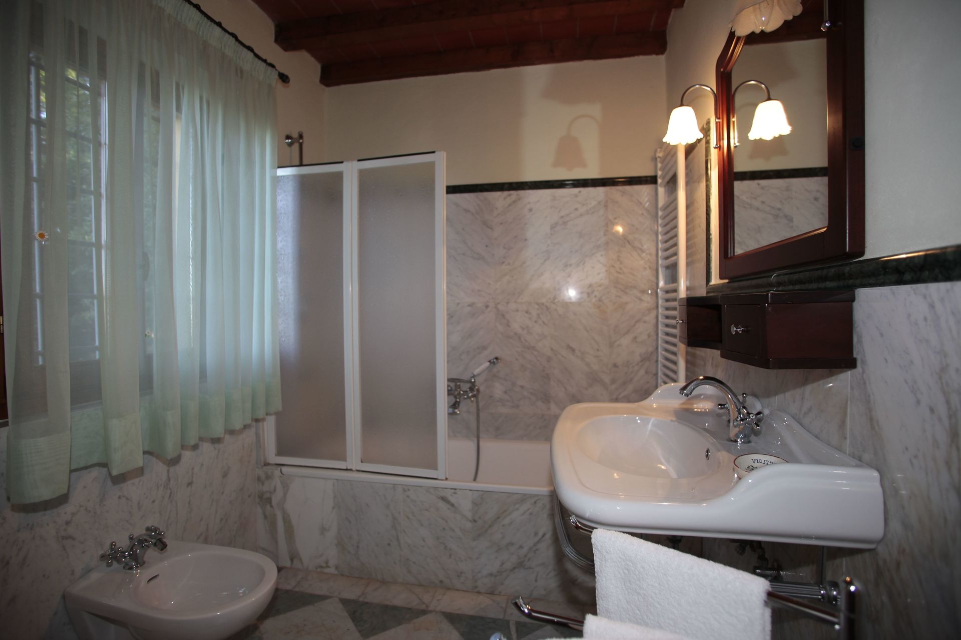 La posizione in estate è abbastanza privata, perchè si trova sotto la Villa tra un piccolo boschetto di alberi, rendendo particolarmente piacevole in estate.