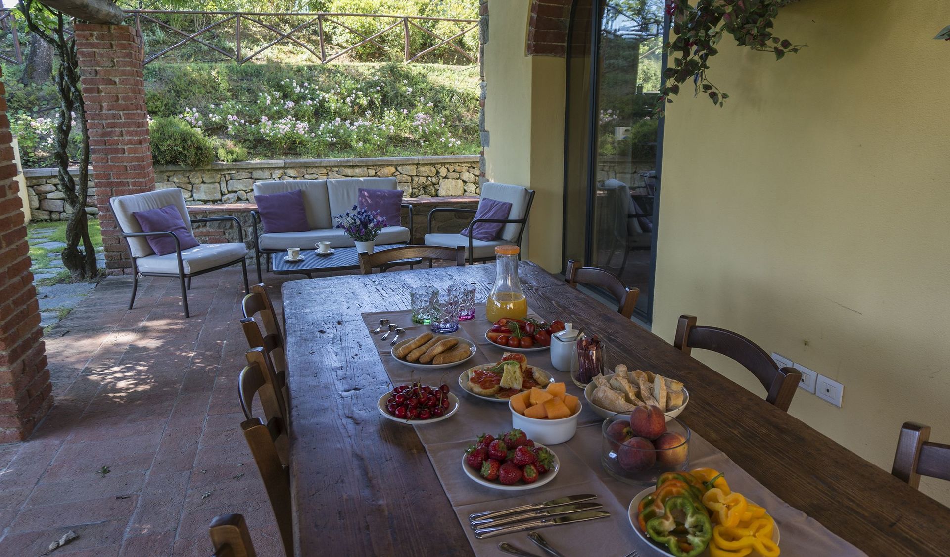 Soggiorno: divano, caminetto, internet WIFI, aria condizionata, tv satellitare, uscita sul patio.