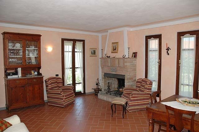 Piano terreno: ampio soggiorno (TV-sat, stereo CD, DVD) con camino e zona pranzo, cucina ben attrezzata (forno, freezer, lavastoviglie), lavanderia con lavatrice, bagno con doccia, camera matrimoniale.