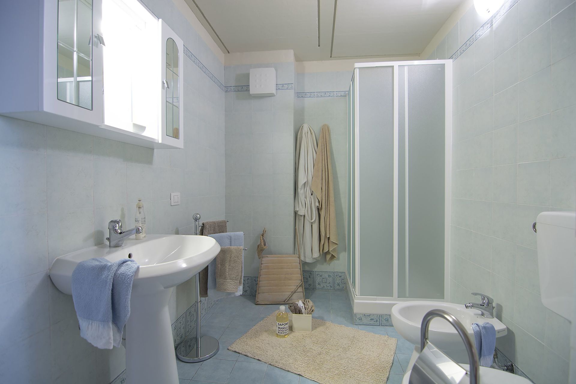 Bagno (15 m2): lavandino, wc, bidet, doccia, asciugacapelli, internet WIFI, internet.