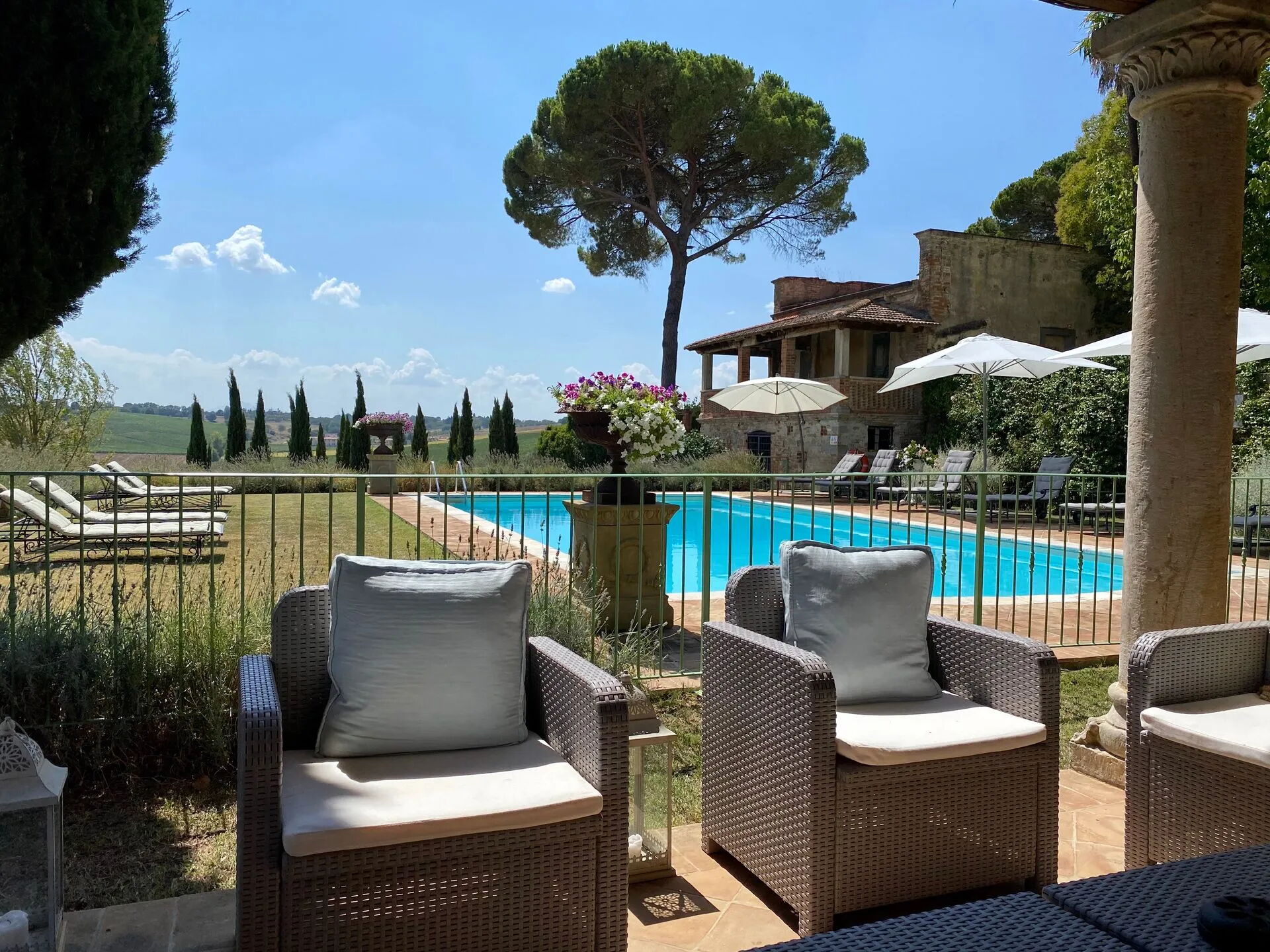 Una volta arrivato troverai una incantevole casa vacanze pulita e in ottime condizioni con vista sulle colline, perfetta per una rilassante vacanza in Toscana. A prescindere da come trascorrerai le tue giornate - visitando i più famosi musei della zona, imbarcandoti in gite fuori porta, facendo shopping o semplicemente guidando nell'entroterra, quando arriverai a casa la sera avrai la possibilità di riposarti con famiglia e amici a bordo piscina concludendo in bellezza un altro fantastico giorno di vacanza in Toscana. Mangiare in compagnia di famiglia e amici è un importante aspetto della cultura toscana. Approfitta della cucina ben accessoriata per preparare pasti utilizzando prodotti locali freschi e genuini mentre ti trovi in vacanza. La cucina è provvista di macchinetta del caffè, microonde, tostapane e frigorifero, così come un numero sufficiente di stoviglie e posate per un massimo di dieci persone. Pranza o cena all'aperto, la veranda completamente accessoriata è la cornice ideale per godersi del buon cibo, la compagnia della propria famiglia o gruppo di amici e l'incantevole clima toscano.