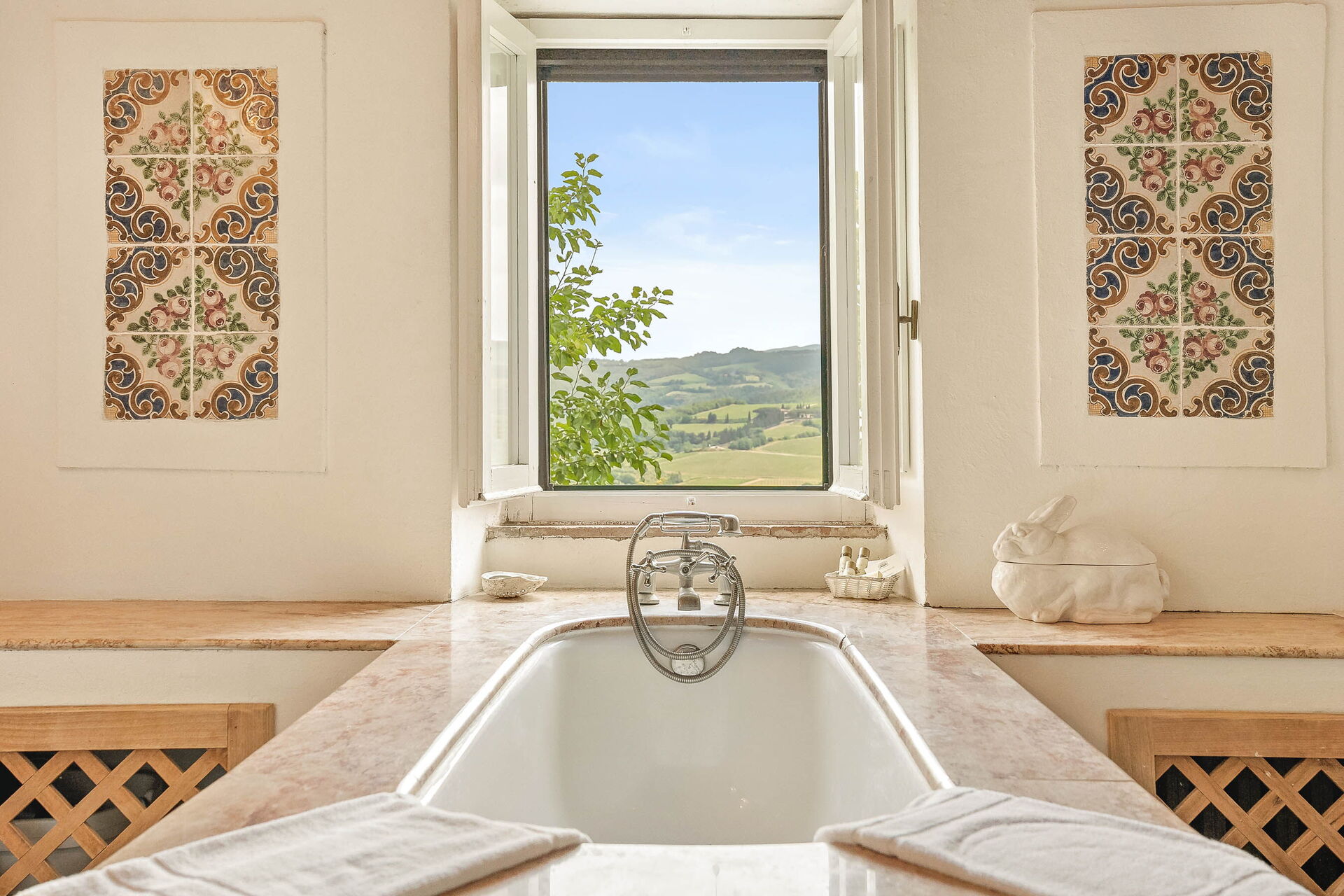 A bit old and rustic. Nice views overall to Tuscany hills. Slip road to the house is a bit difficult and you have to careful with it. Good atmosphere and cosy place.