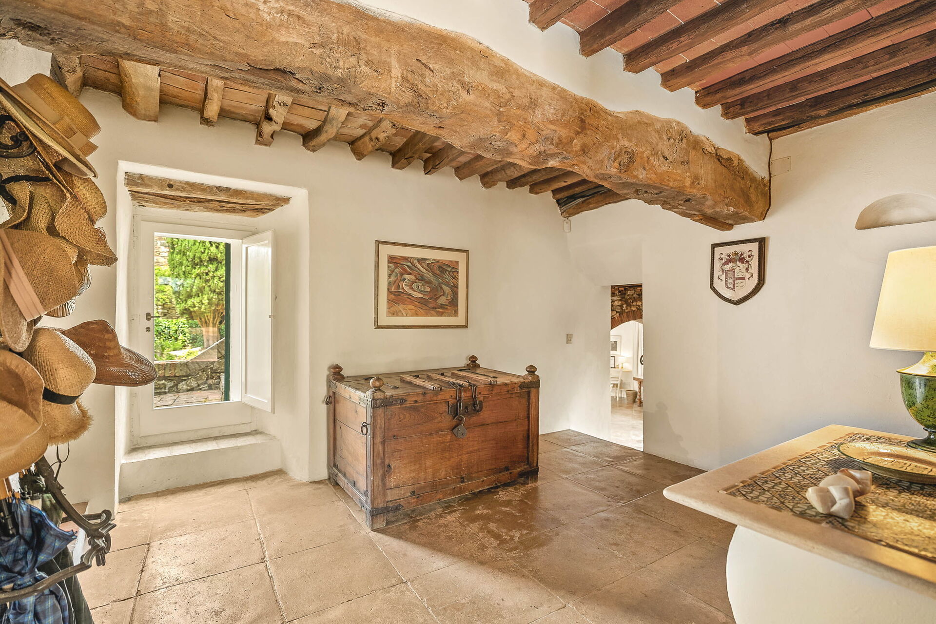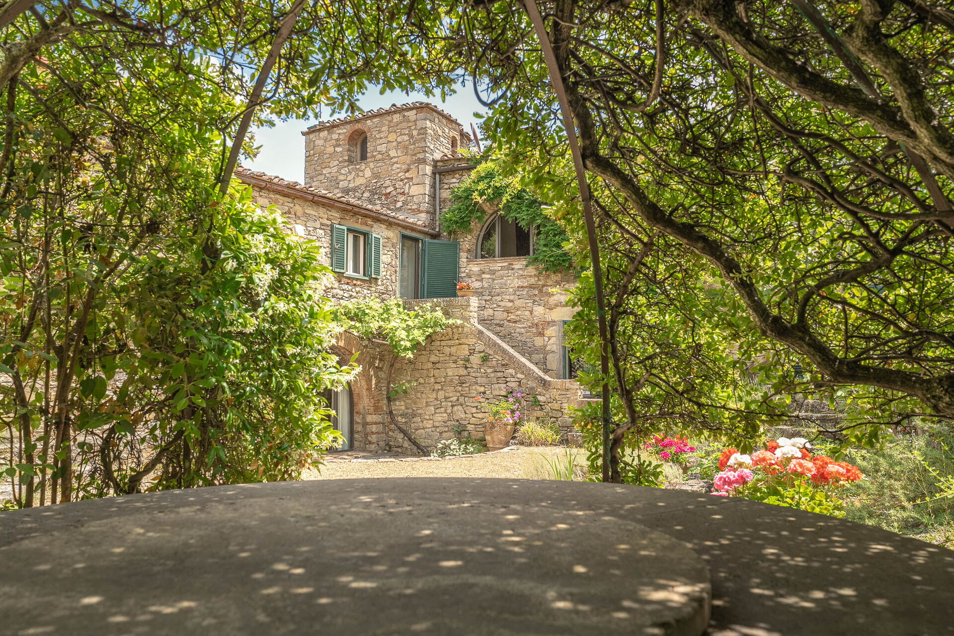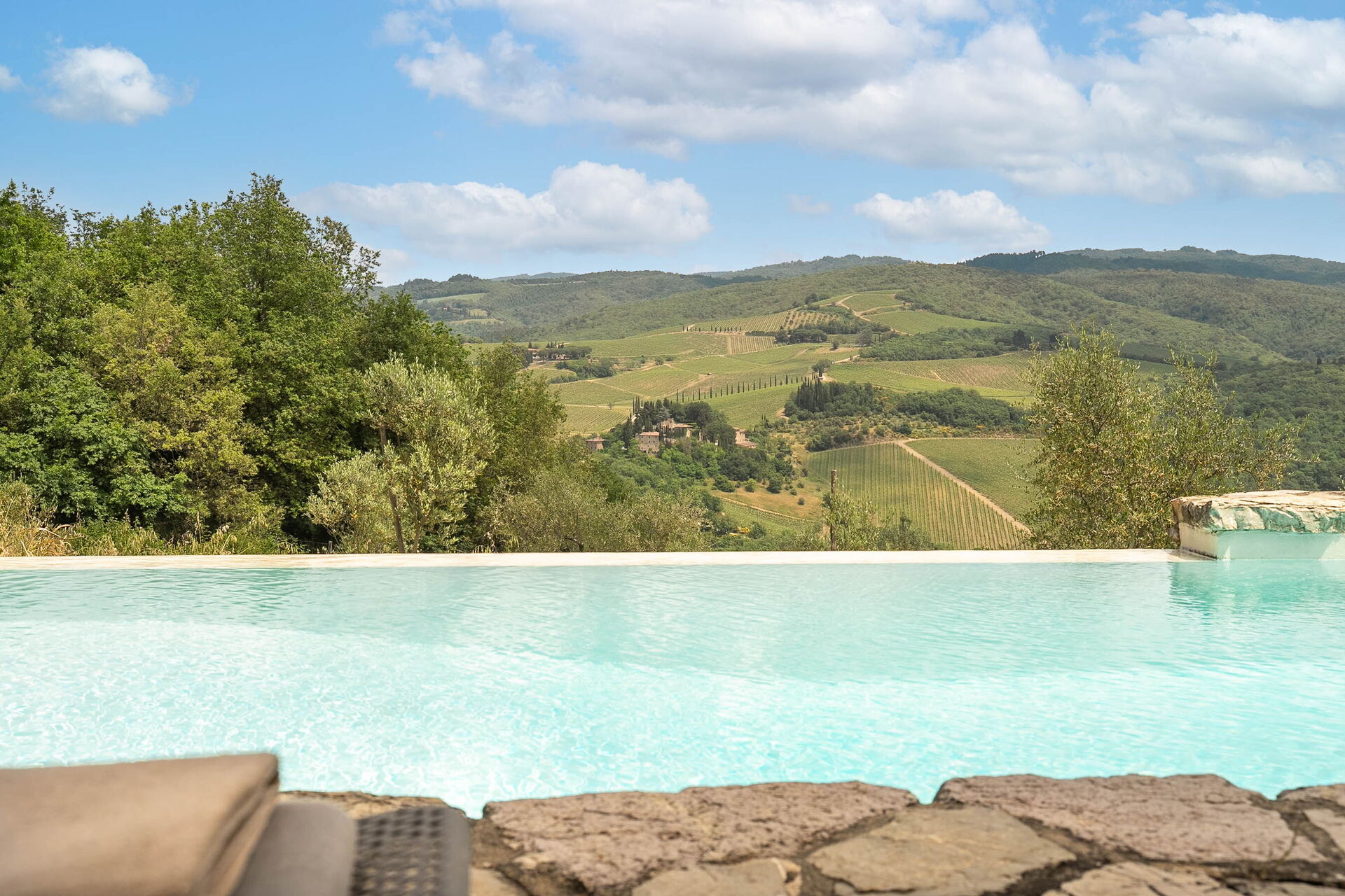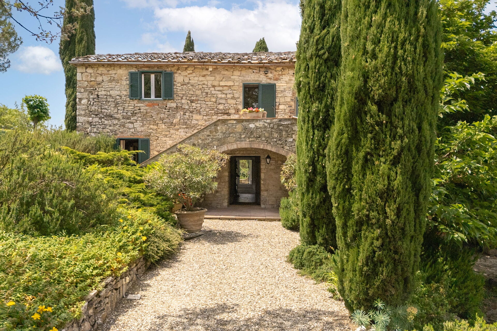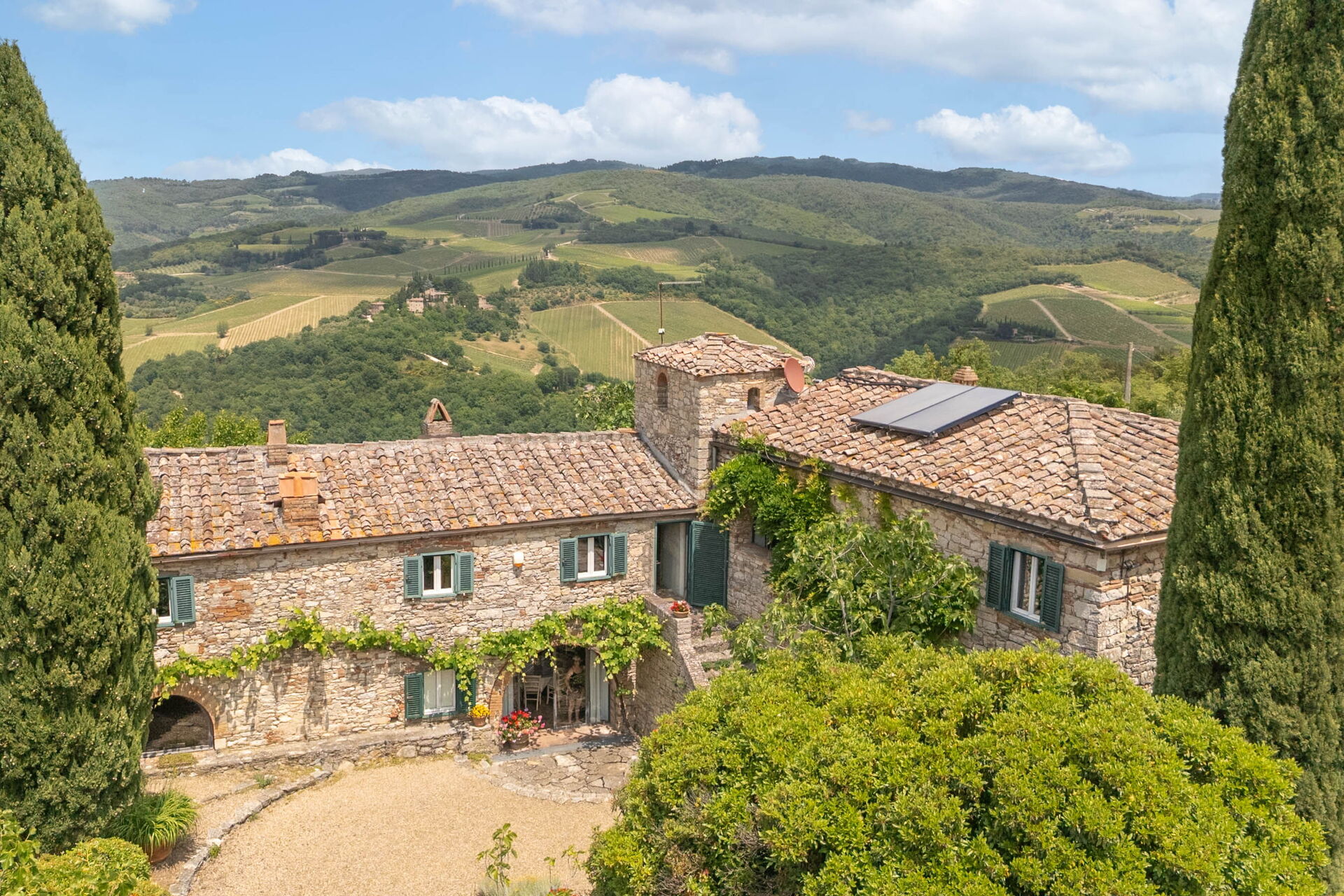 Dalla sua posizione isolata la vista è assolutamente fantastica, con le finestre ad incorniciare la bellissima campagna del Chianti. Un sentiero conduce alla stupenda piscina, che è in posizione panoramica. La piscina ha un'ampia zona poco profonda, ideale per i bambini. Sul retro della proprietà c'è un fienile ristrutturato, dove vive il guardiano.