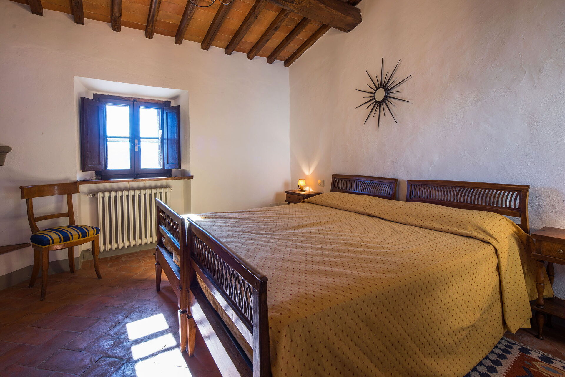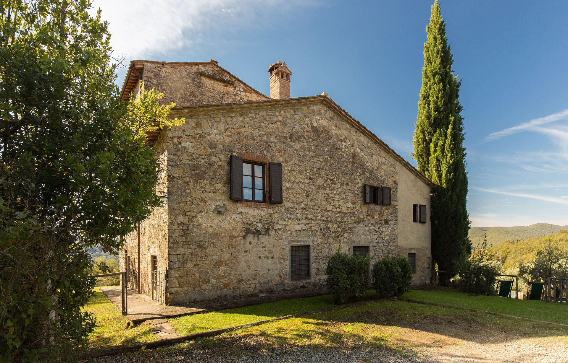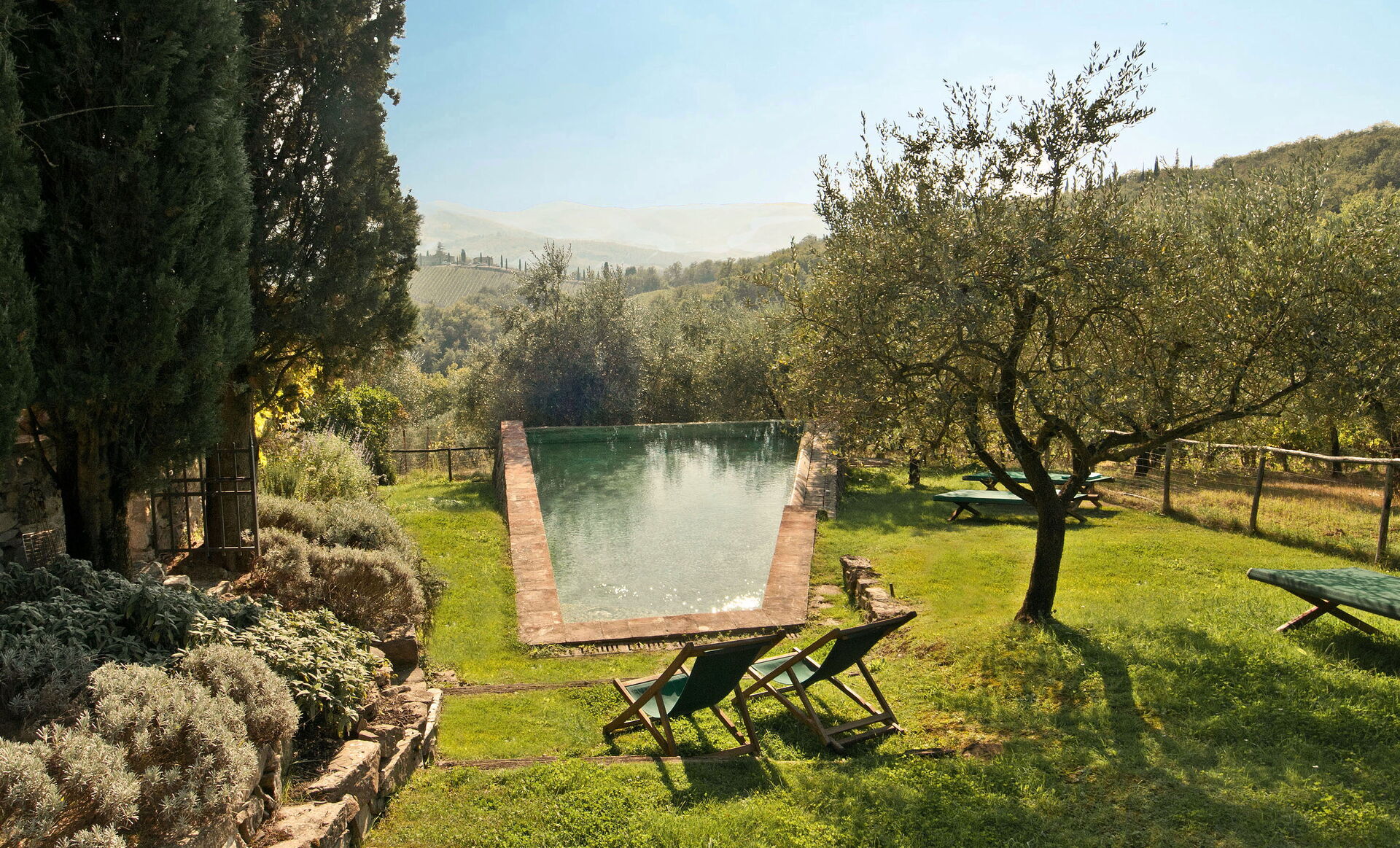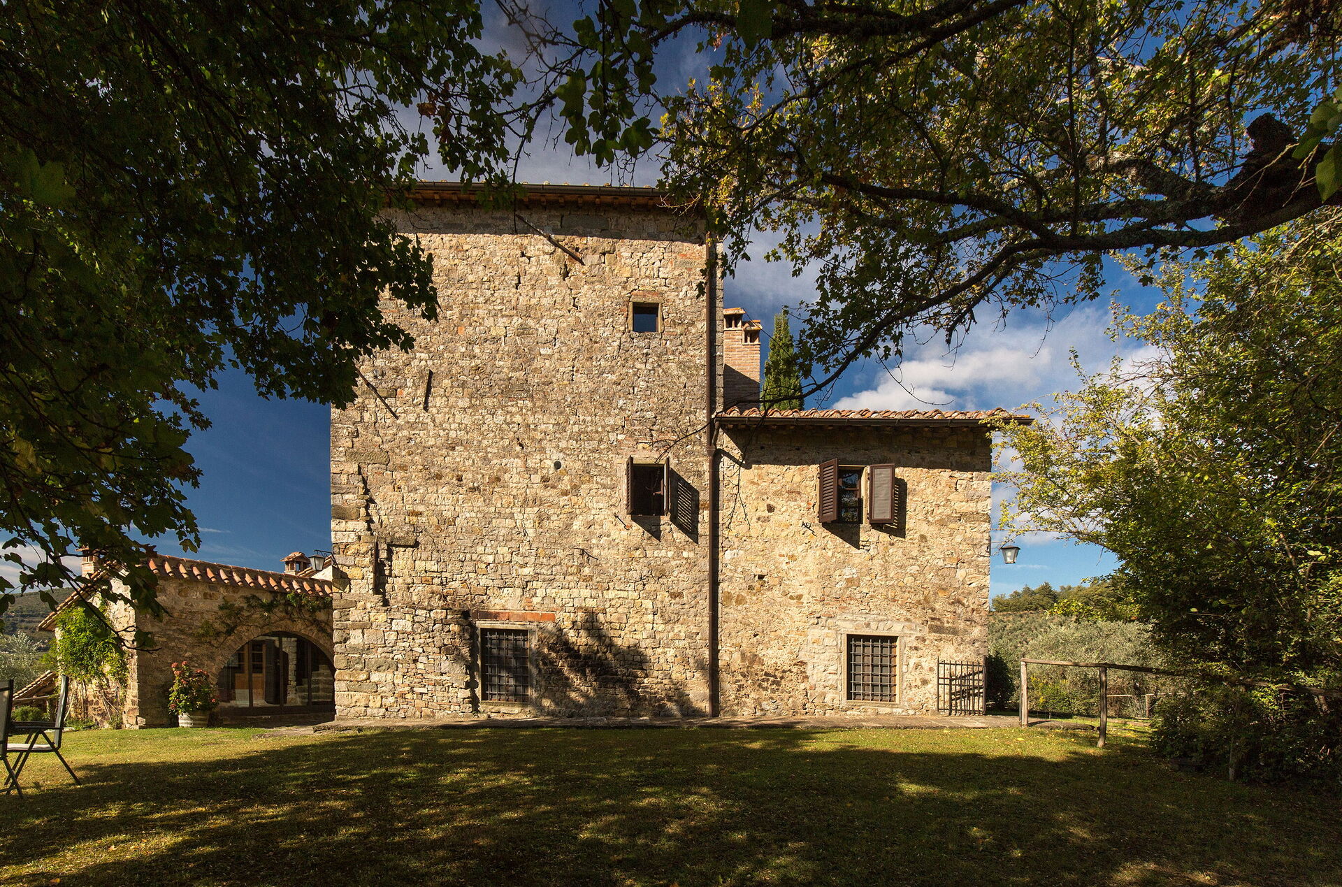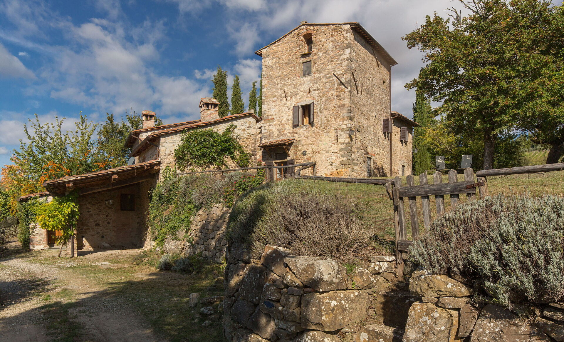 Questa splendida colonica si trova in posizione molto appartata nella tenuta del Castello di Volpaia. dove si trova anche l'altra villa parte della nostra offerta, Pozza di Volpaia. Dalla veranda gli ospiti godono di una vista stupenda; quest'area esterna è attrezzata per cenare all'aperto, e comoda per le famiglie con bambini poiché da lì si può tenere d'occhio la piscina. Il borgo fortificato di Volpaia offre due ristoranti assai carini, uno dei quali appartiene al proprietario della tenuta. Lo staff locale può organizzare su richiesta lezioni di cucina e visite alle cantine, oltre a fornire assistenza generale durante il soggiorno.