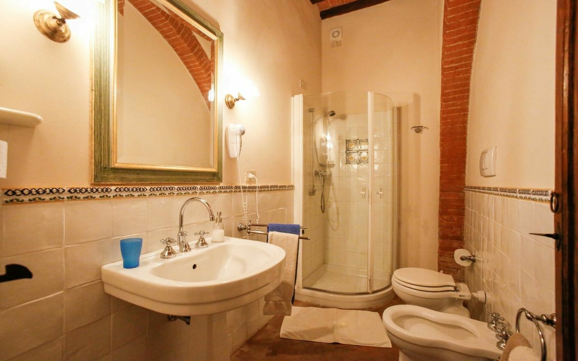 Bagno 1: lavabo, wc, bidet, doccia, asciugacapelli.