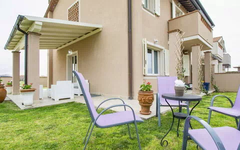 La proprietà vanta un ampio giardino privato di 400 m2, completamente recintato per maggiore privacy e sicurezza. Il giardino è attrezzato con comodi arredi da giardino, un'area barbecue perfetta per pranzi all'aperto e un'area giochi dedicata ai bambini, rendendolo uno spazio esterno ideale per famiglie che desiderano rilassarsi e divertirsi.