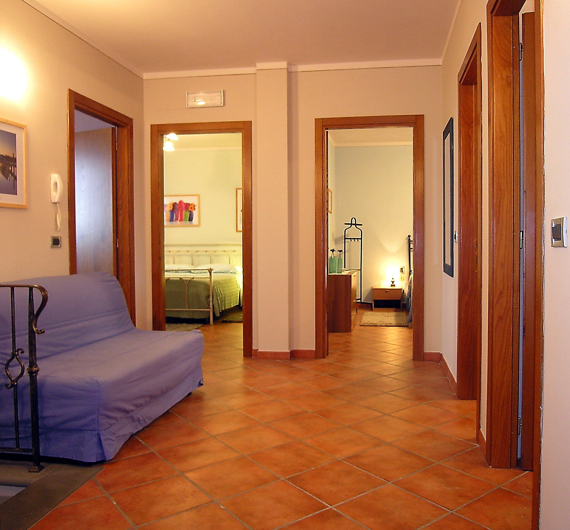 Soggiorno (38 m2): tre divani, due poltrone, internet WIFI, tv satellitare, vcr / dvd, uscita sul giardino.