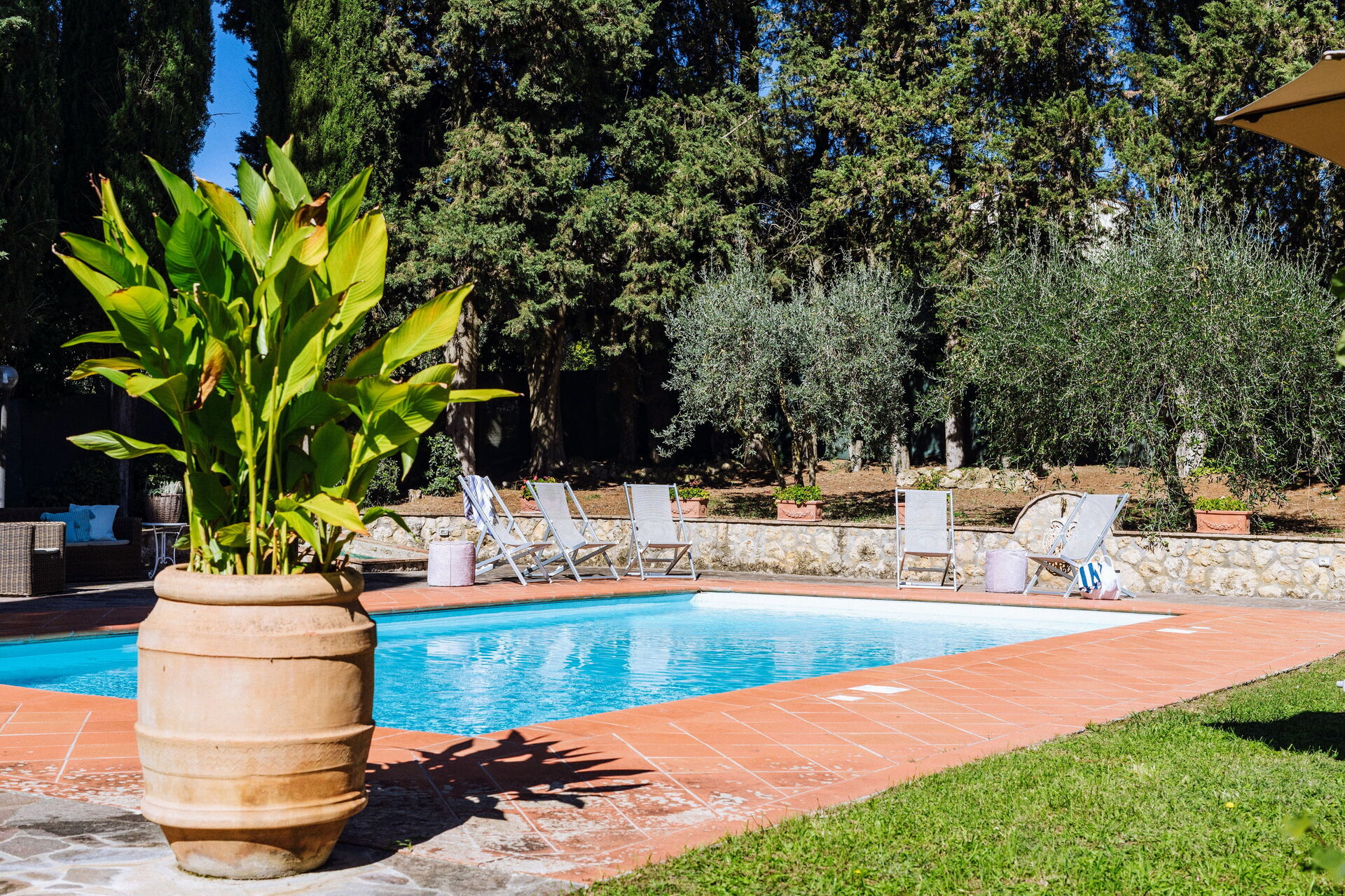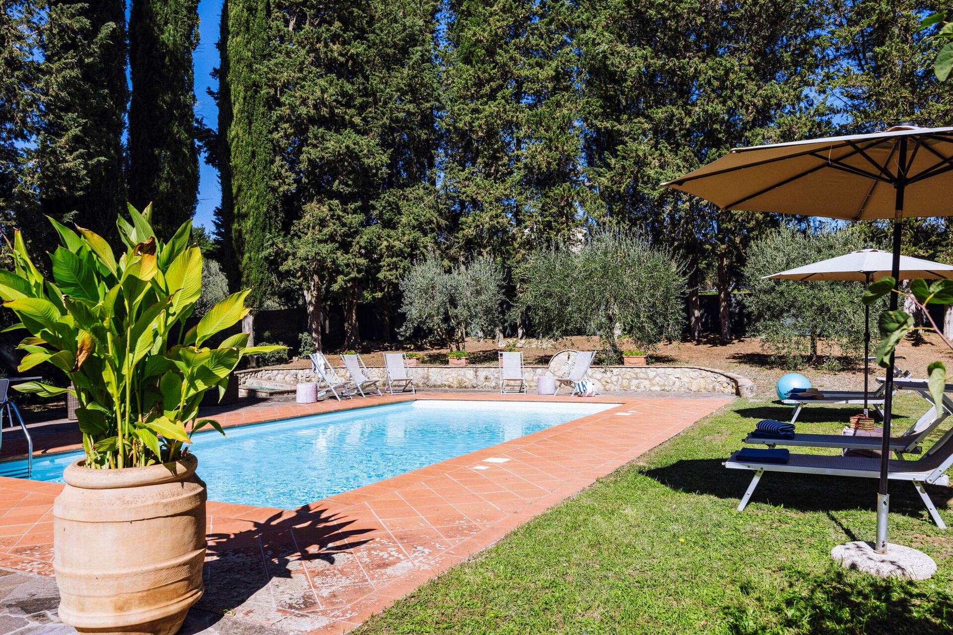 La proprietà è posizionata a soli 13 km di distanza da Poggibonsi (Italia), nell'area turistica "San Gimignano e Dintorni" e solo a 24 km di distanza da Siena. Villa Staggia è una bellissima struttura (500 mq) con aria condizionata, internet Wi-Fi e piscina privata. La proprietà può accogliere comodamente fino a 14 persone in sette camere da letto con sette bagni.