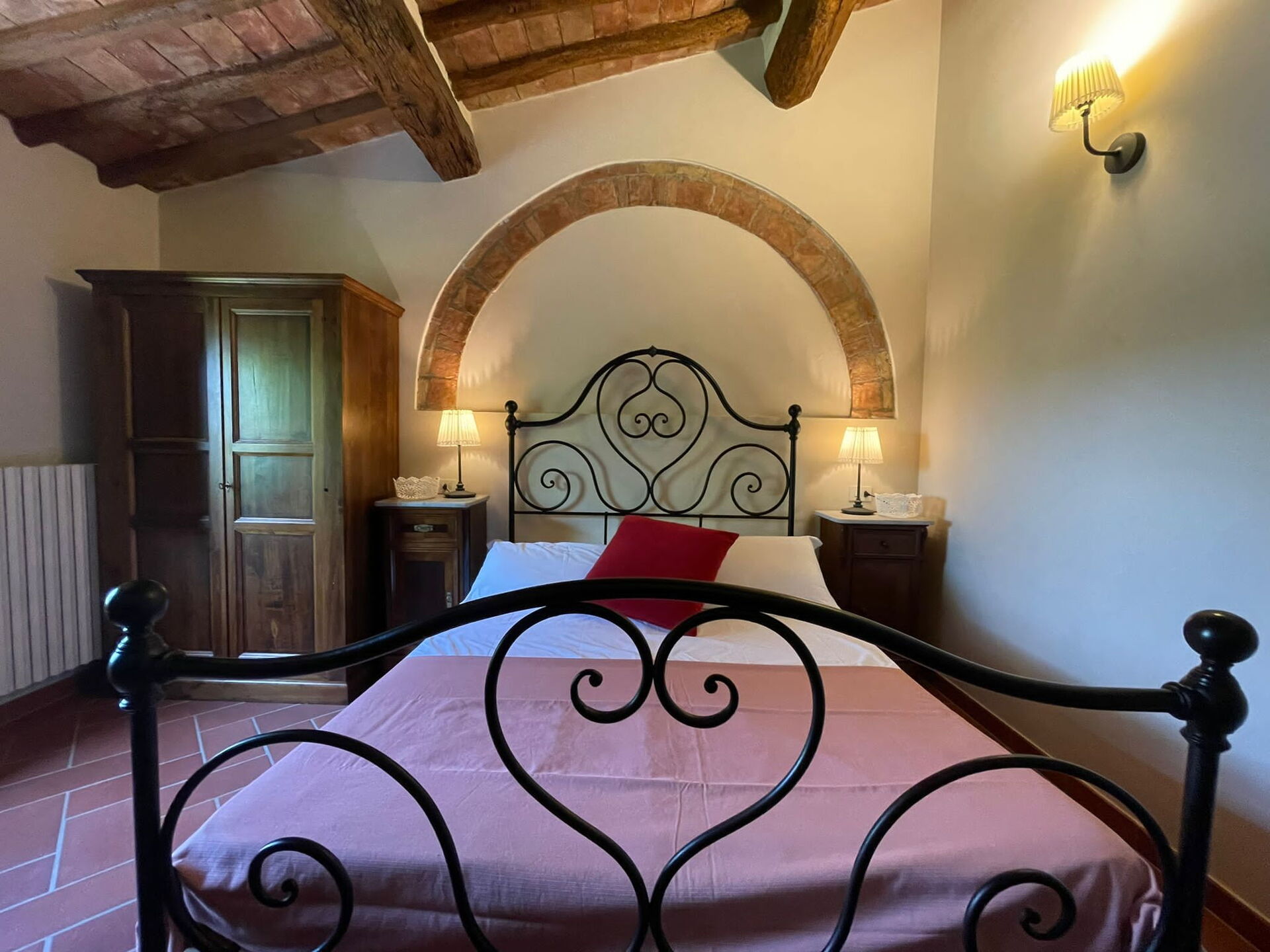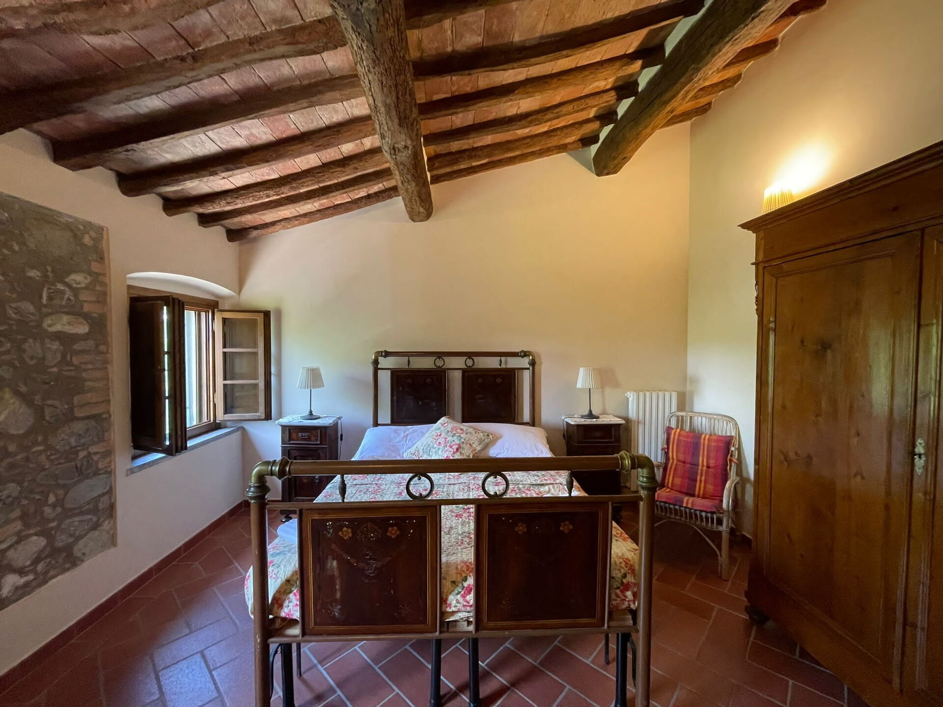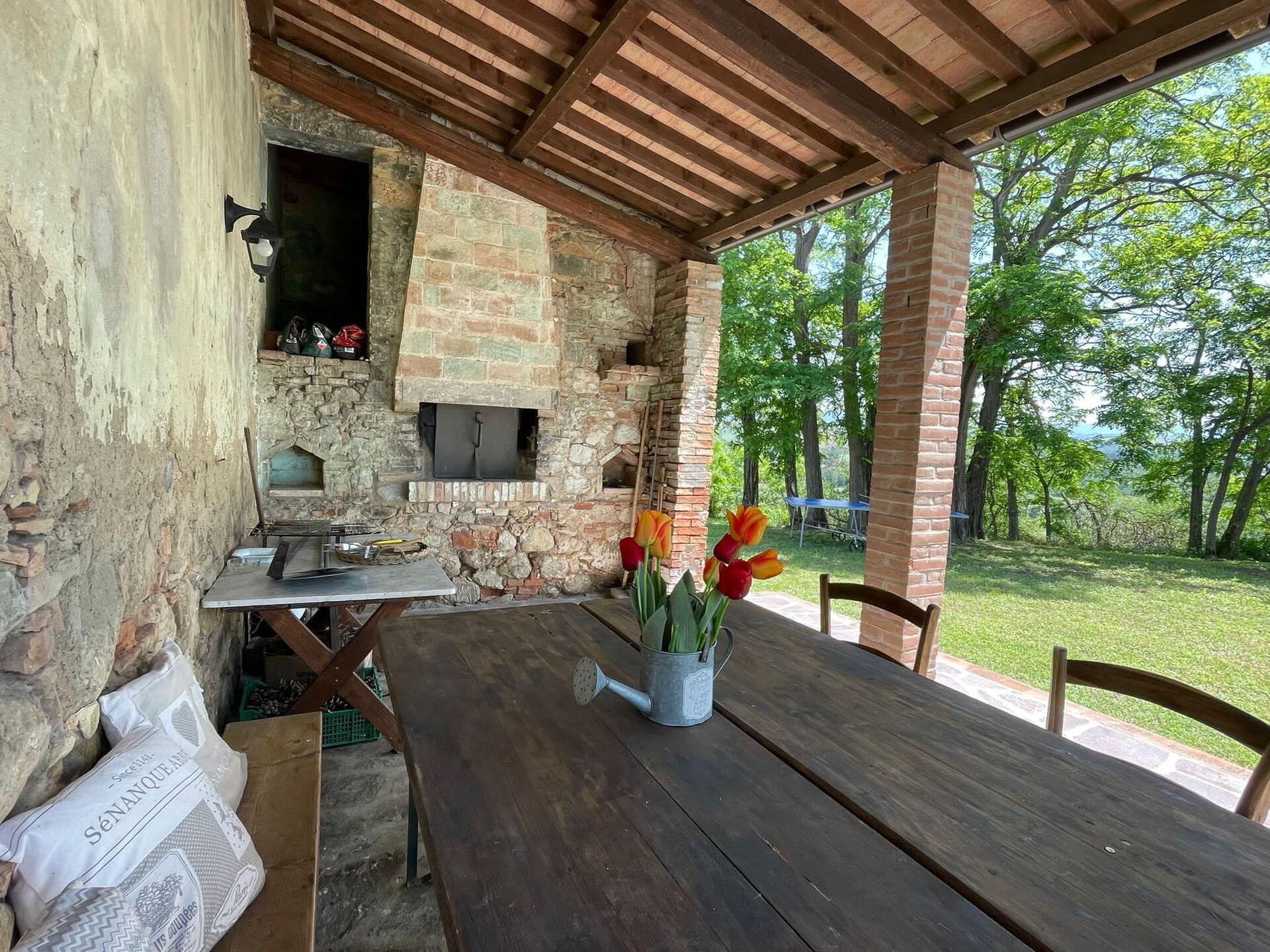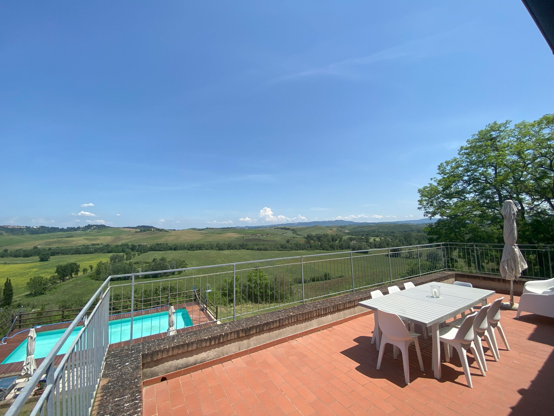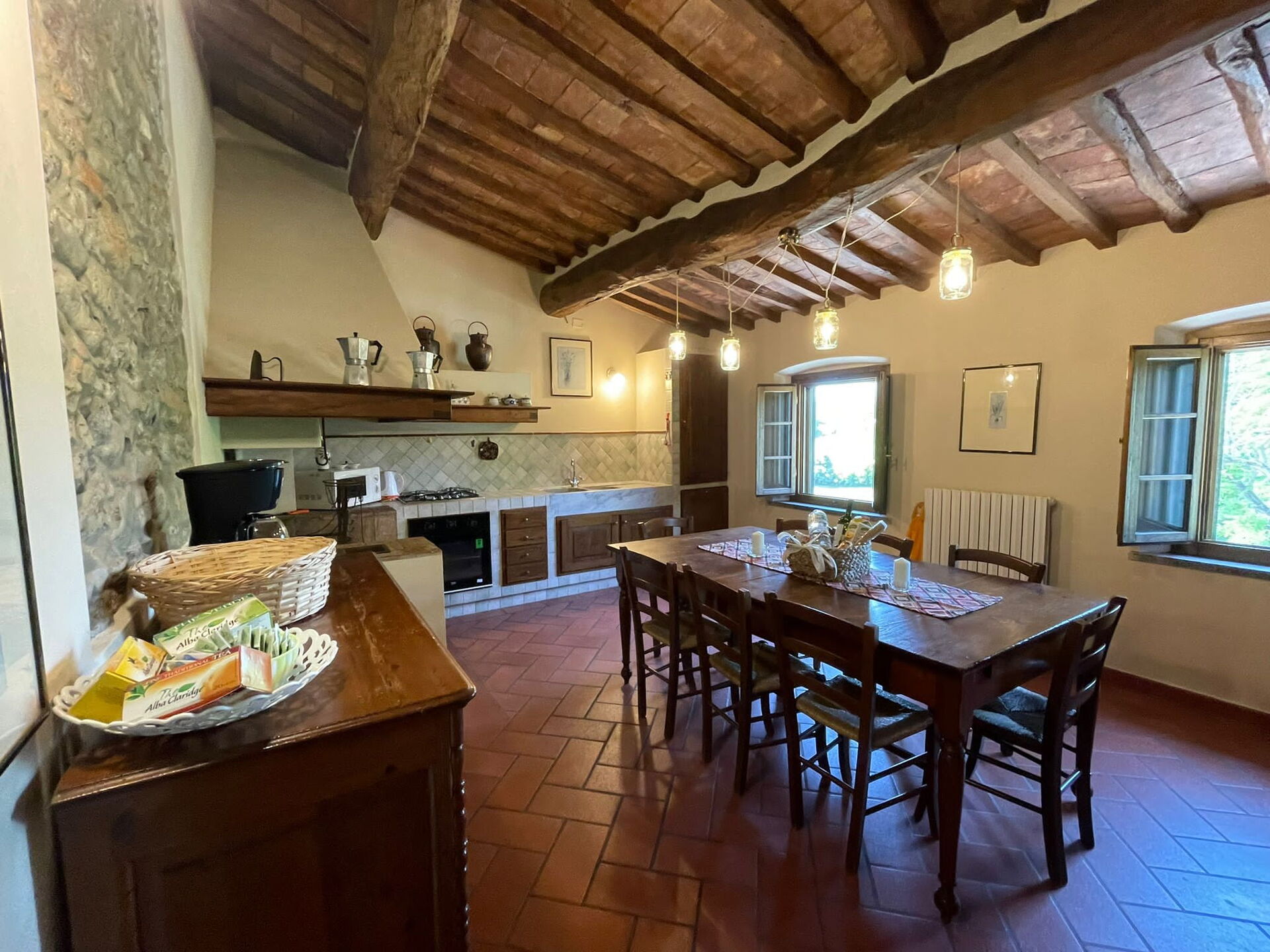 All'arrivo troverai una incantevole casa vacanze pulita e in ottime condizioni con vista sulle colline, ideale per una rilassante vacanza in Toscana. Per il tuo divertimento troverai una piscina privata dove poterti rilassare mentre ti godi una bibita rinfrescante dopo una giornata frenetica ricca di shopping. Avrai a tua disposizione all'aperto anche un barbecue e un patio. Condividere un pasto in compagnia di famiglia e amici è un grosso aspetto della cultura toscana. Approfitta della cucina ben accessoriata per preparare pasti utilizzando prodotti locali freschi e genuini mentre ti trovi in vacanza. La cucina è provvista di macchinetta del caffè, microonde, tostapane, fornelli e frigorifero, così come un numero sufficiente di stoviglie e posate per un massimo di otto persone. Pranza o cena all'aperto, la veranda completamente accessoriata è la cornice perfetta per godersi del buon cibo, la compagnia della propria famiglia o gruppo di amici e il meraviglioso clima toscano.