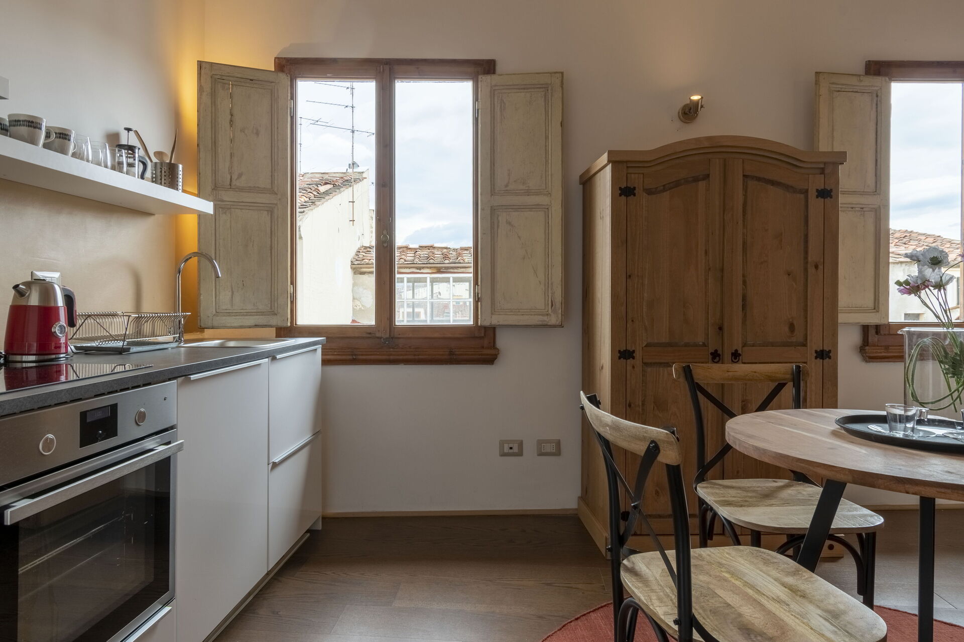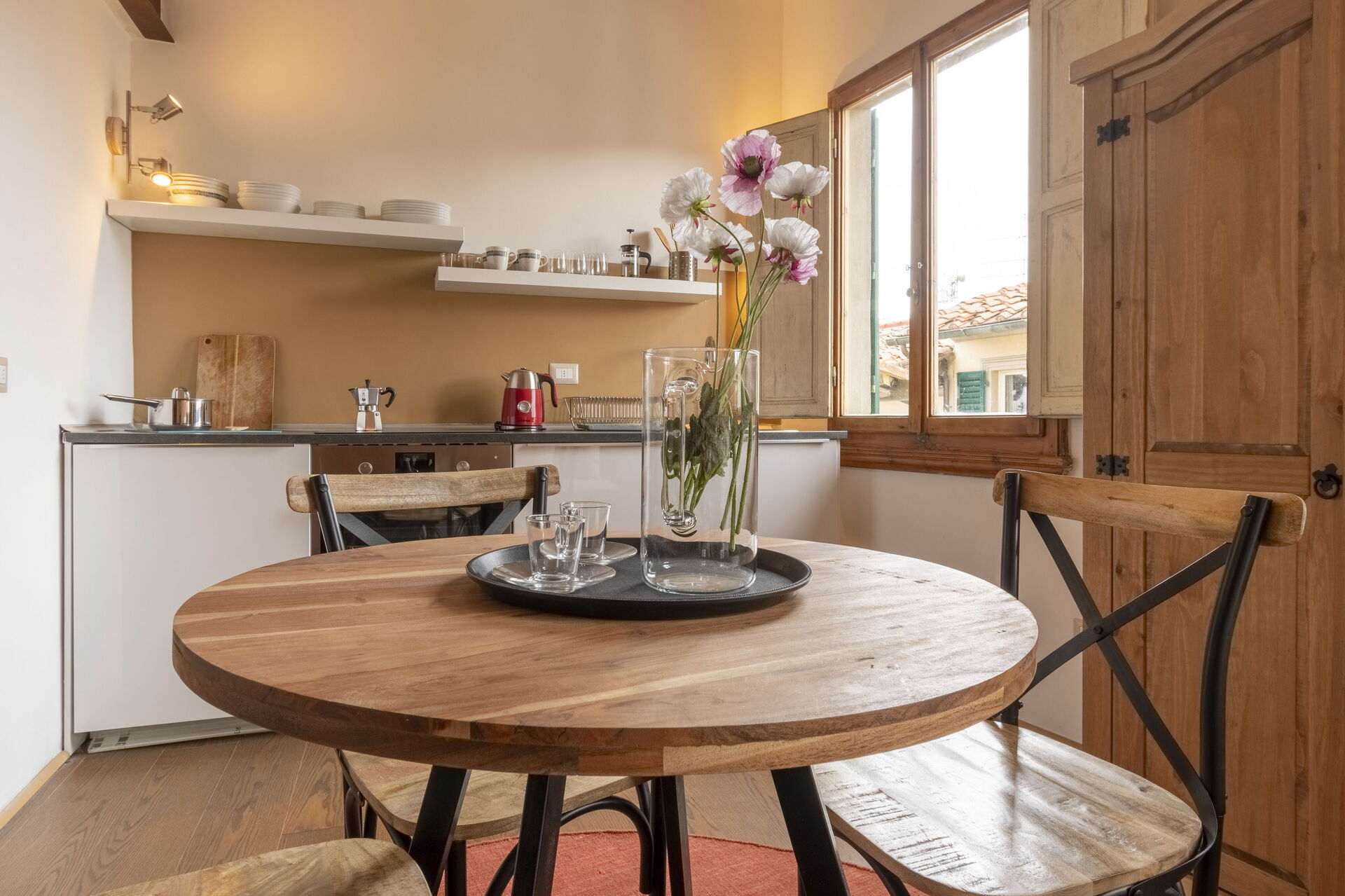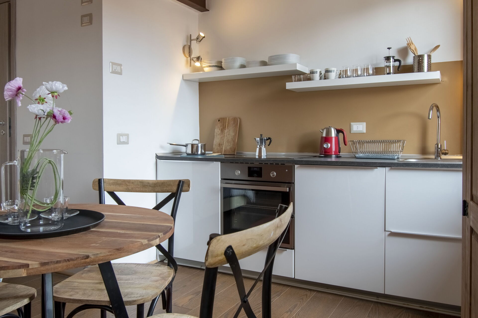 All'arrivo troverai una splendida casa vacanze pulita e in ottime condizioni con vista sulla città, perfetta per una piacevole vacanza in Toscana. Dopo una impegnativa giornata ricca di gite turistiche, concediti del tempo con famiglia e amici per gustarti una bibita rinfrescante o un buon calice di vino - non c'è niente di meglio per rilassarti alla fine della giornata. Mangiare in compagnia di famiglia e amici è un importante aspetto della cultura toscana. Approfitta della cucina ben accessoriata per preparare pasti utilizzando prodotti locali freschi e genuini mentre ti trovi in vacanza. La cucina è provvista di macchinetta del caffè, tostapane, fornelli e frigorifero, così come un numero sufficiente di stoviglie e posate per un massimo di quattro persone.
