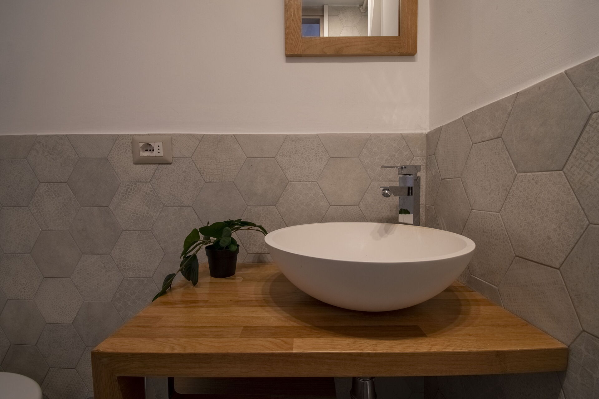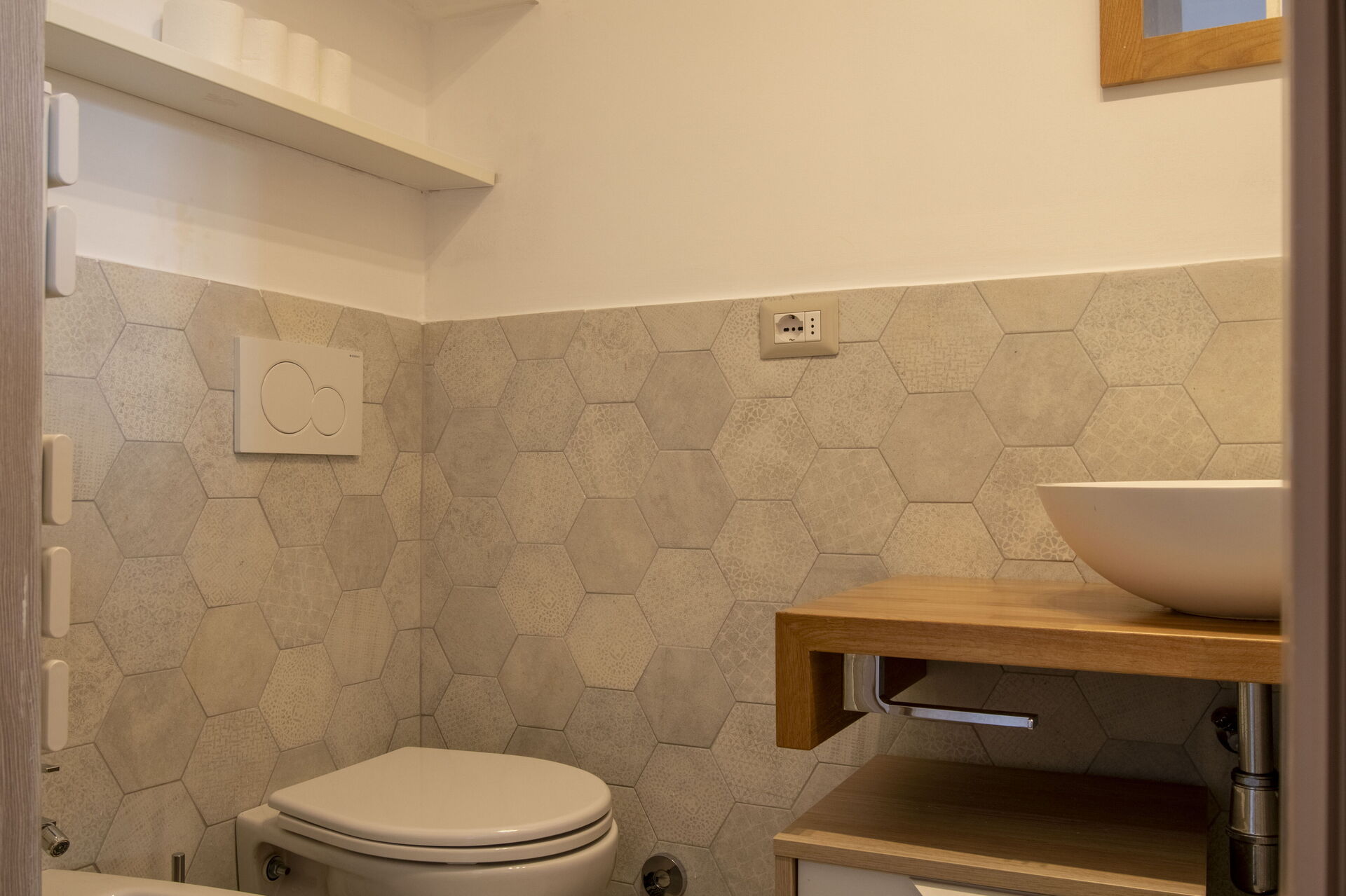 Bagno: lavandino, wc, bidet, doccia, asciugacapelli.