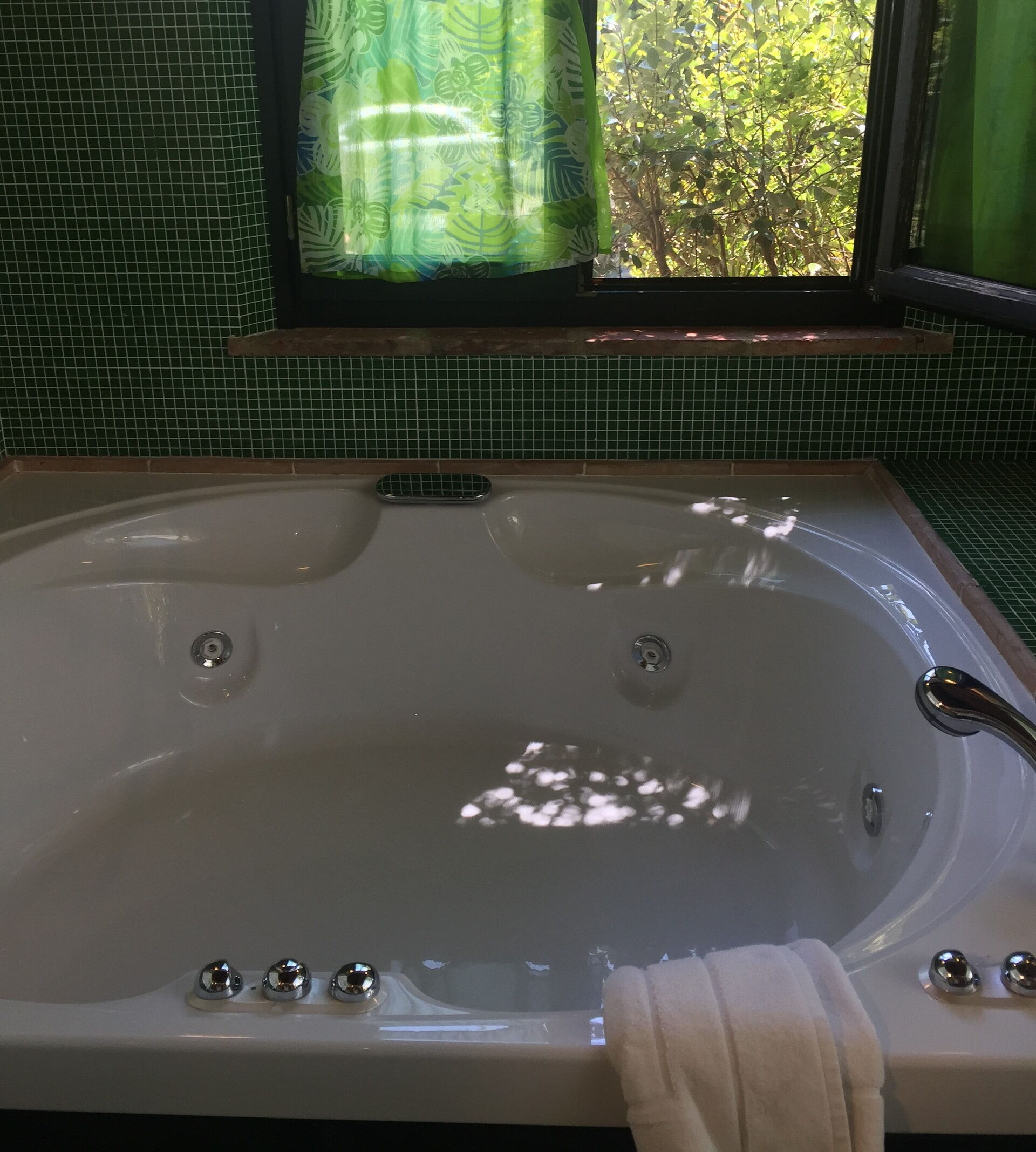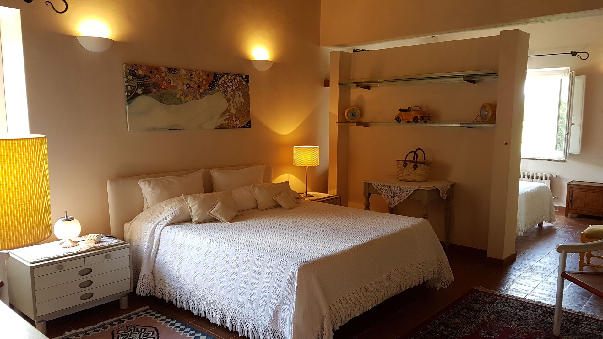Camera da letto con bagno: letto matrimoniale (larghezza: 170m, lunghezza: 190m), internet WIFI, aria condizionata, zanzariere, televisione, due poltrone, scrivania, frigo, vasca da bagno idromassaggio, lavandino, wc, bidet, doccia, ferro da stiro, asciugacapelli, uscita sul giardino.