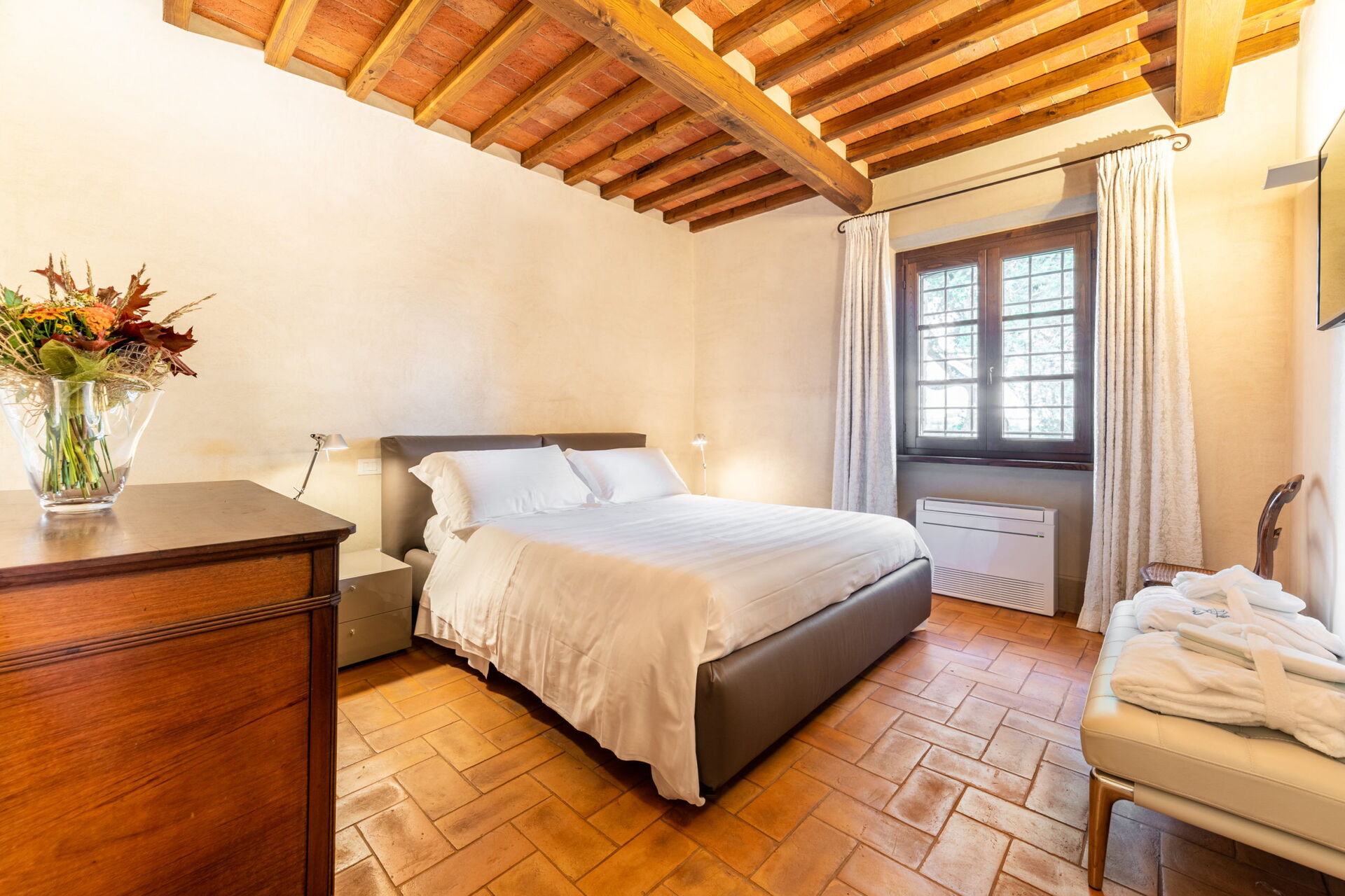 Una volta arrivato sarai accolto dal proprietario o dal gestore della tua incantevole casa vacanze, una proprietà pulita e tenuta in ottime condizioni con vista sulle colline, ideale per una rilassante vacanza in Toscana. Dopo una frenetica giornata ricca di shopping, concediti del tempo con famiglia e amici a bordo piscina per gustarti una bibita rinfrescante o un buon calice di vino - non c'è niente di meglio per rilassarti alla fine della giornata.