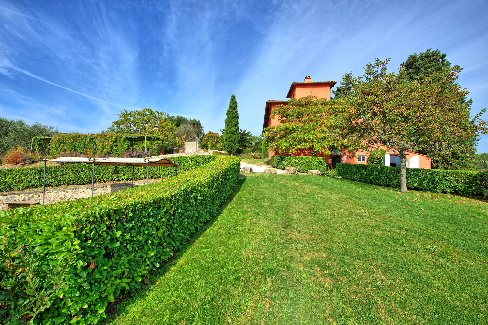 Confortevole villa ricavata della ristrutturazione di un’antica proprietà le cui origini risalgono al 1300, situata nelle immediate vicinanze di Firenze (distante soltanto 15 km). La struttura fa parte di un’ampia azienda agricola con 200 ettari di campi coltivati in parte a vigneti e in parte ad oliveti dove vengono prodotti ottimi vini e un ottimo olio extravergine di oliva.