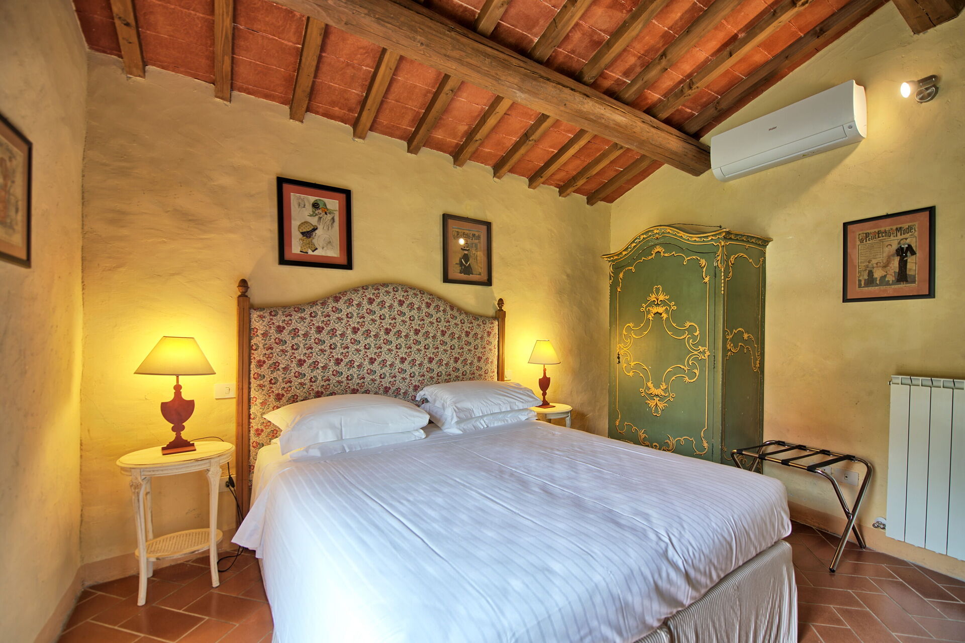 Primo piano: soggiorno (camino non utilizzabile, tv, internet wi-fi), cucina (piano cottura a induzione, forno, frigorifero, freezer, lavastoviglie), camera matrimoniale (aria condizionata), camera matrimoniale (aria condizionata), bagno con doccia (senza finestra).