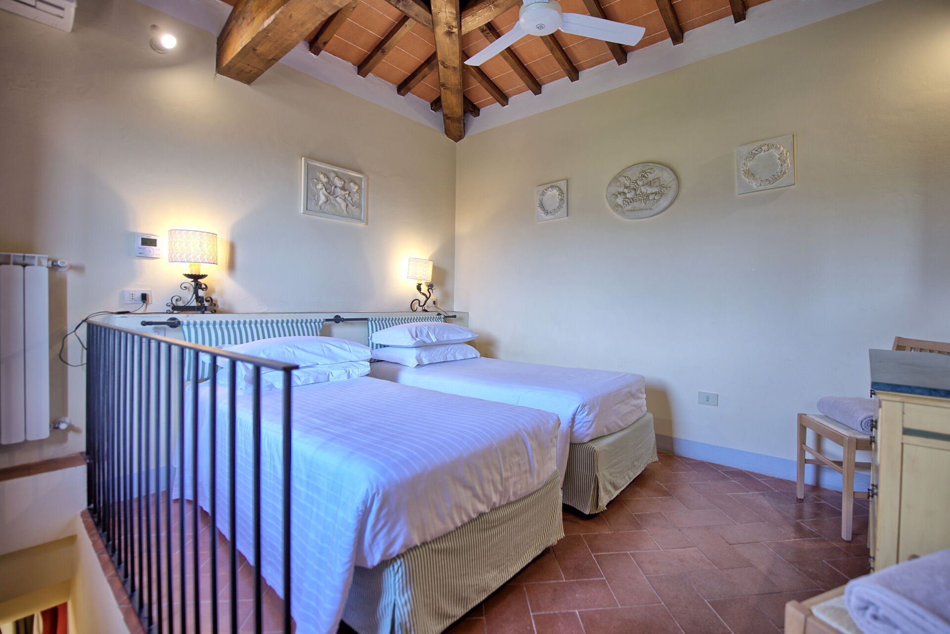 20 gradini sopra (dal soggiorno) camera con 2 letti singoli (aria condizionata e ventilatore a soffitto)