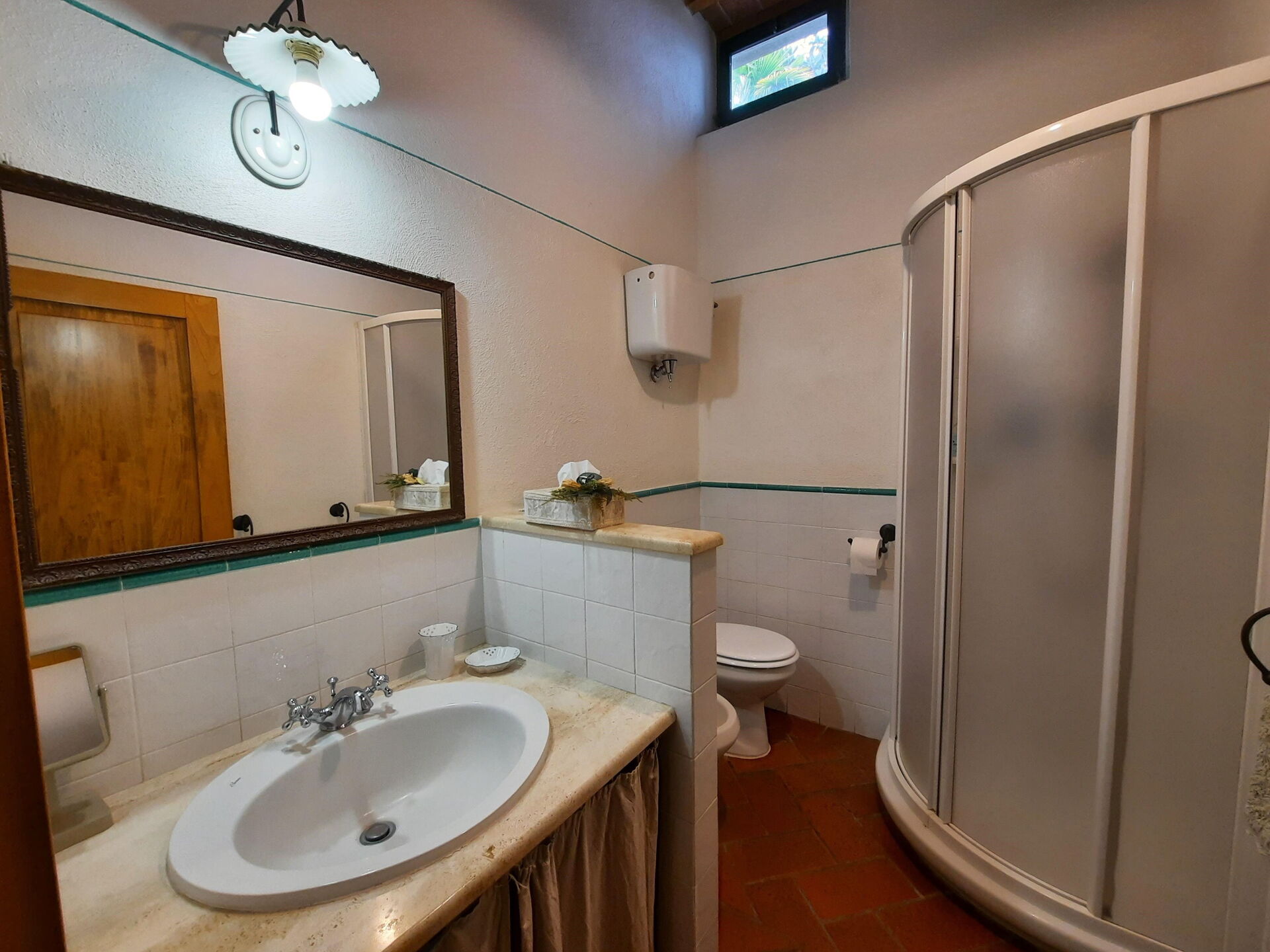 Bagno 1: lavandino, wc, bidet, doccia, asciugacapelli.
