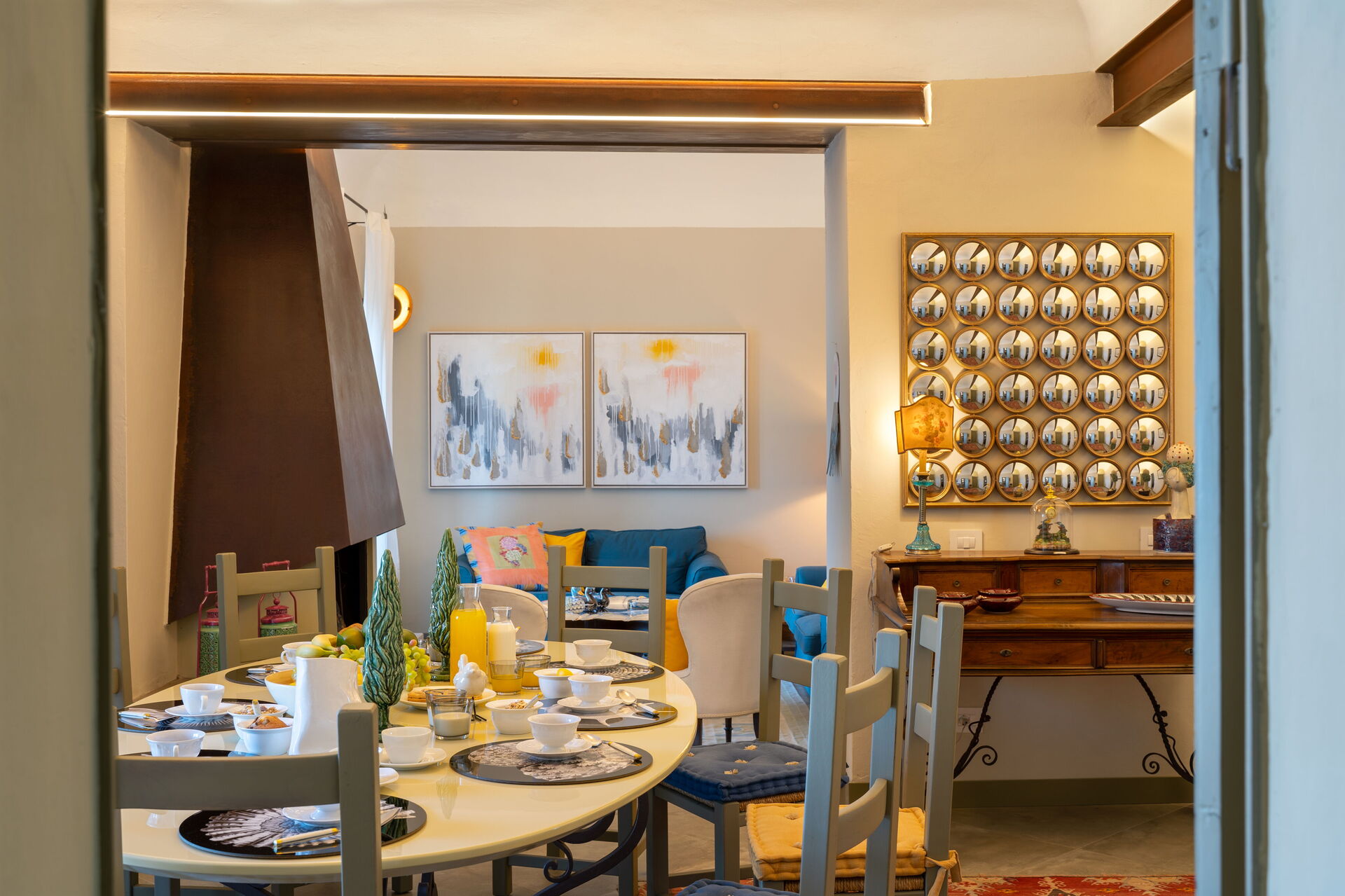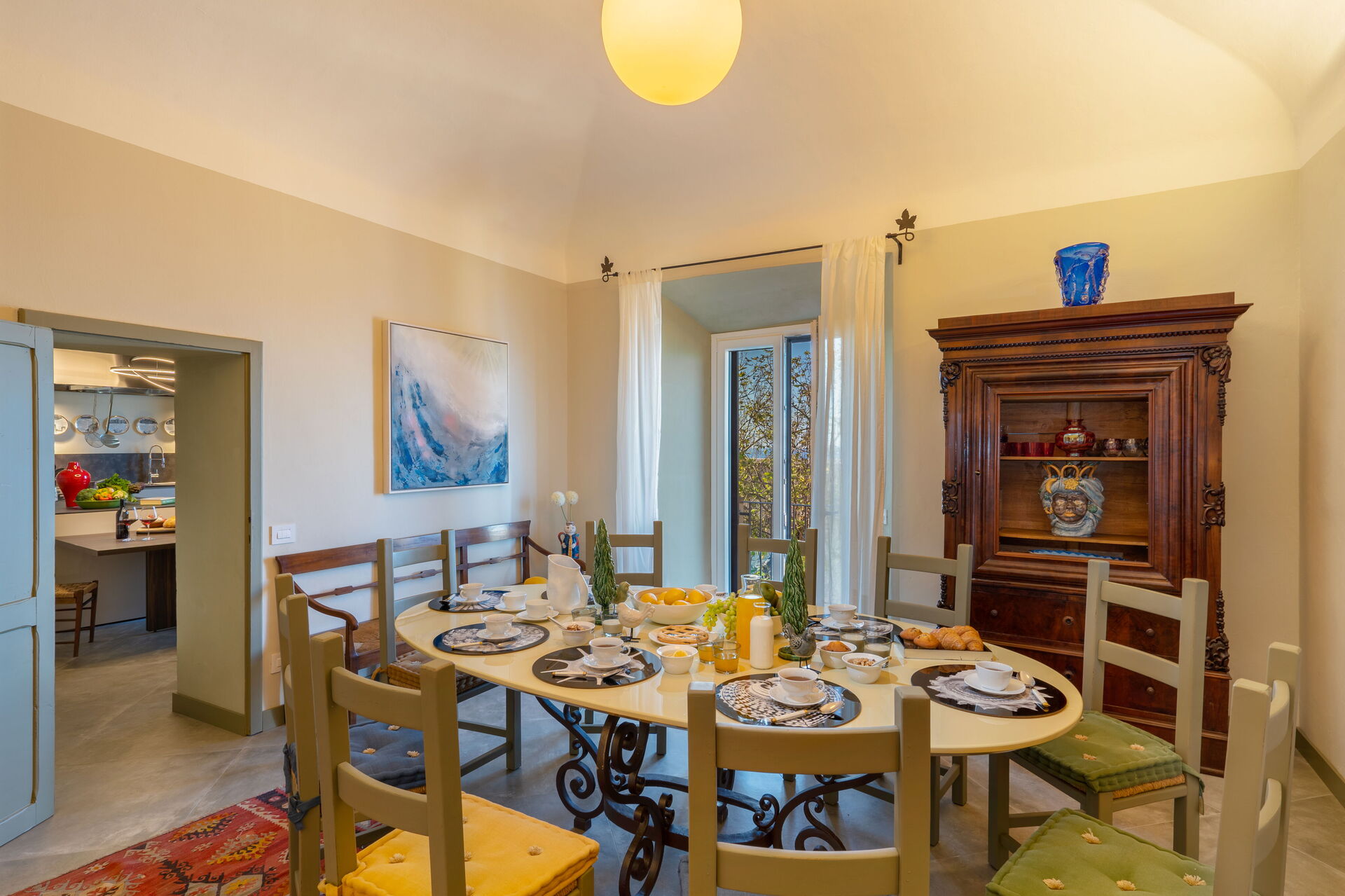Soggiorno: due divani, tavolo da pranzo (persone: 10), internet WIFI, aria condizionata, tv satellitare, uscita sulla terrazza.