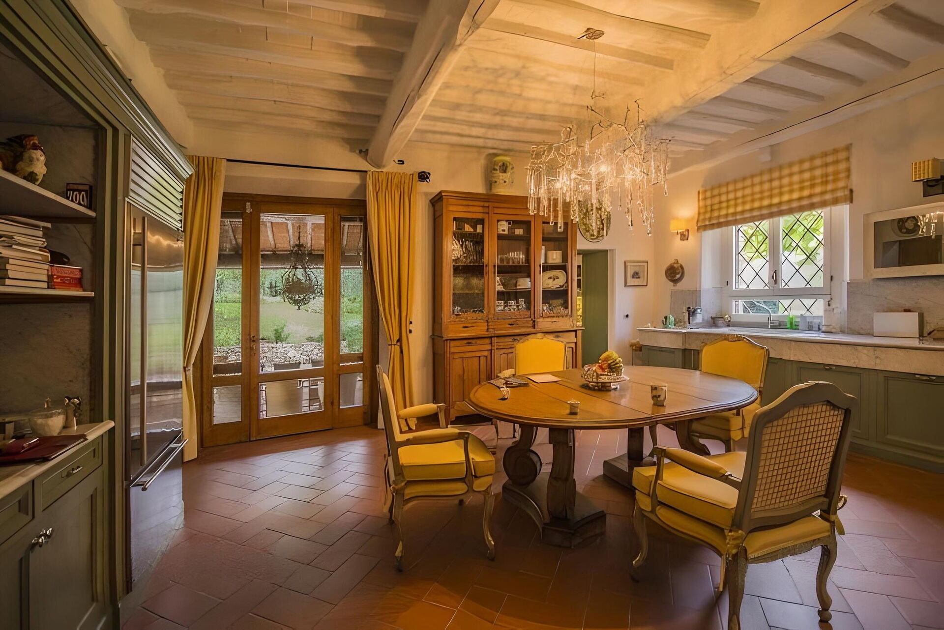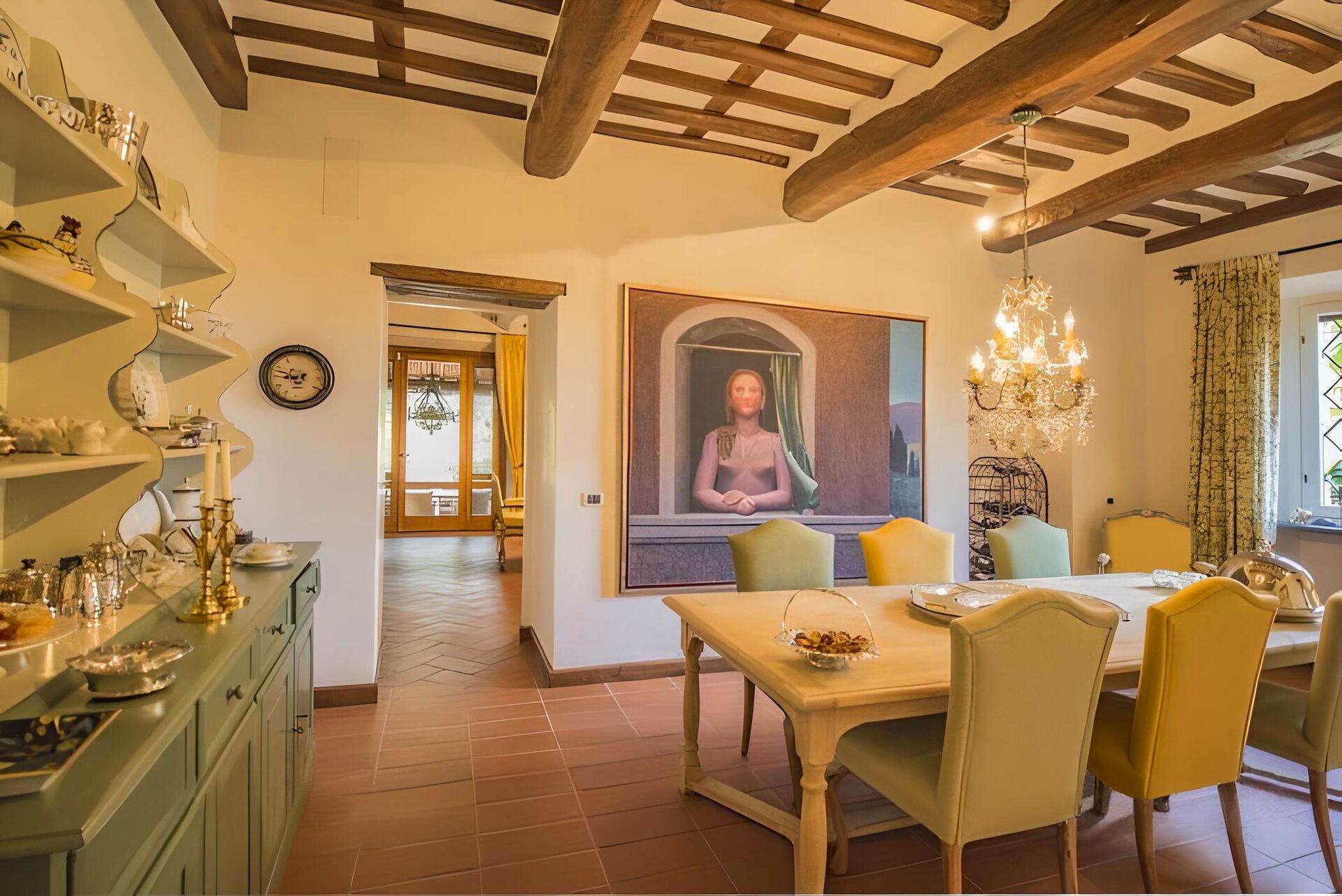 Comprende: cucina, 2 soggiorni, sala da pranzo, toilette, stanza di servizio.