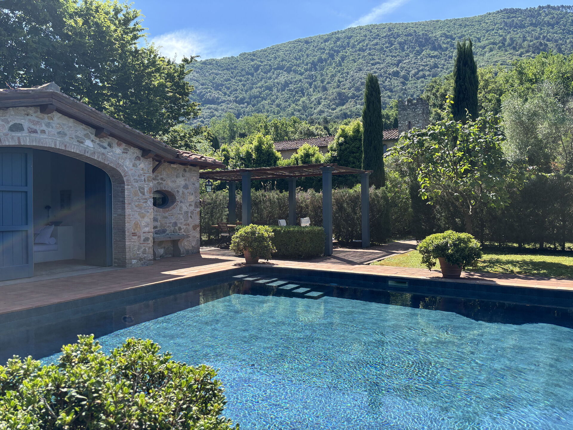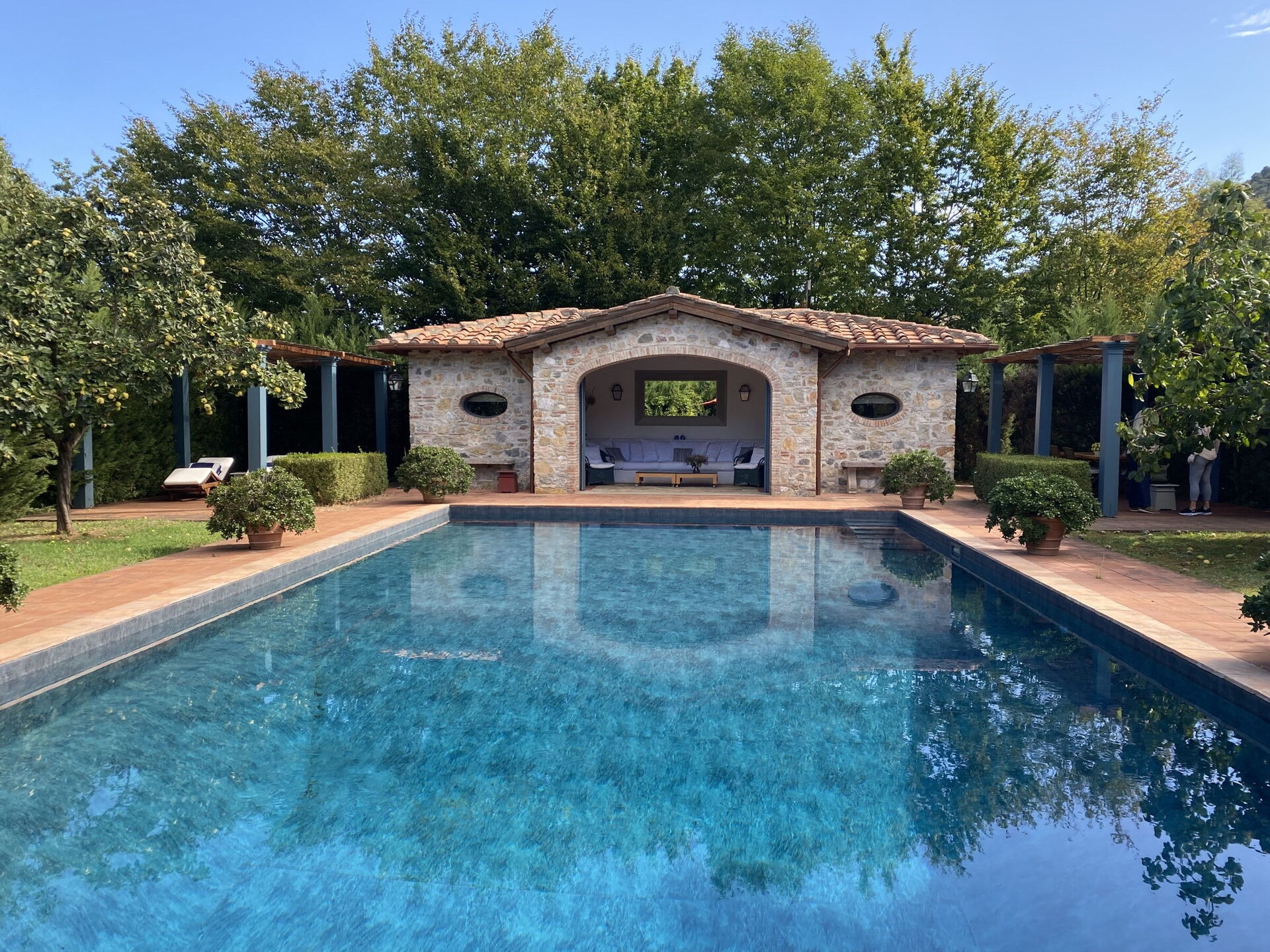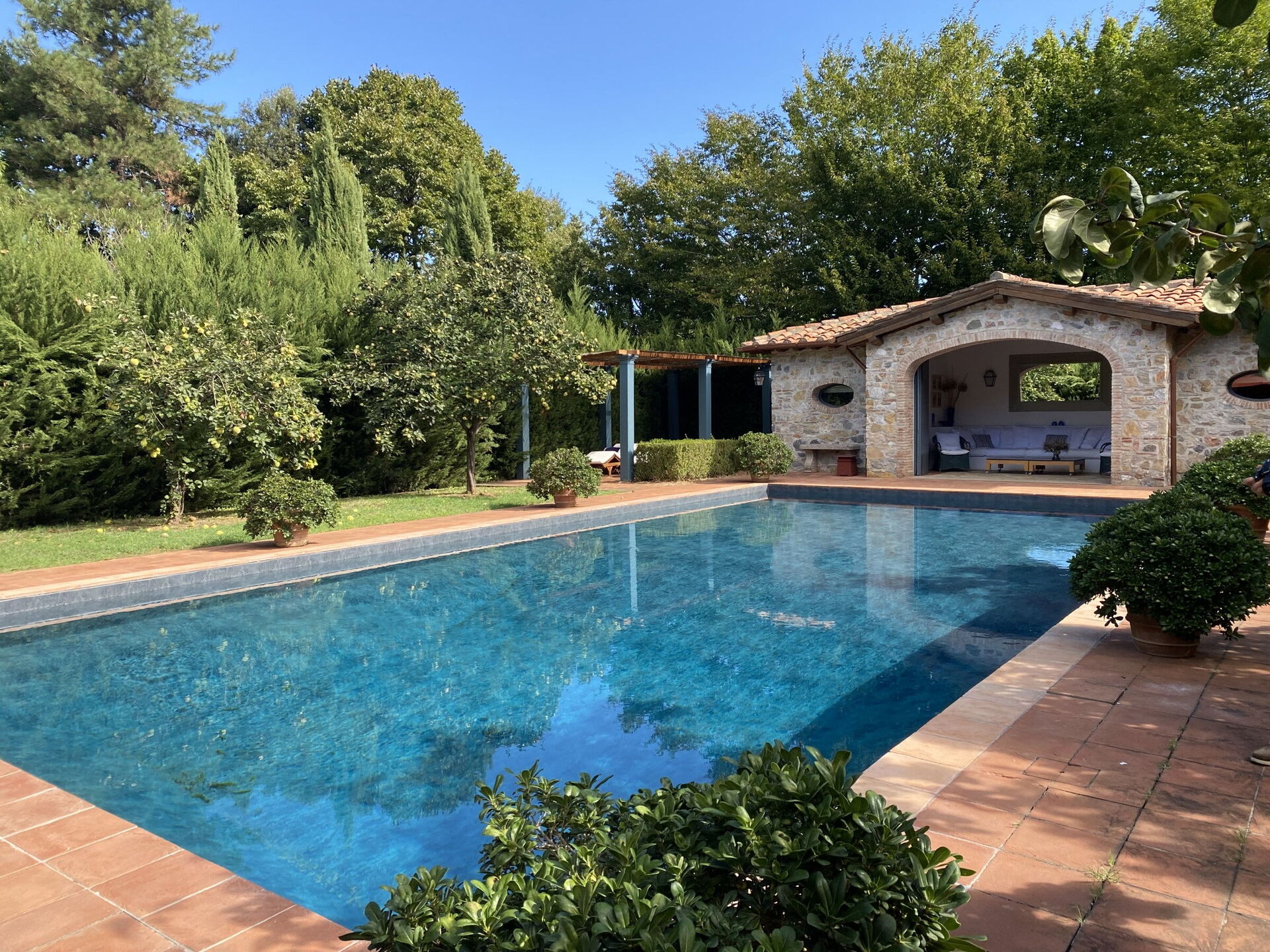 Giardino: piscina (larghezza: 7m, lunghezza: 12m), internet WIFI, possibilità di mangiare all'aperto, tavolo da pranzo, gazebo, arredamento da giardino, sdraio, proprietà recintata, campo da tennis.