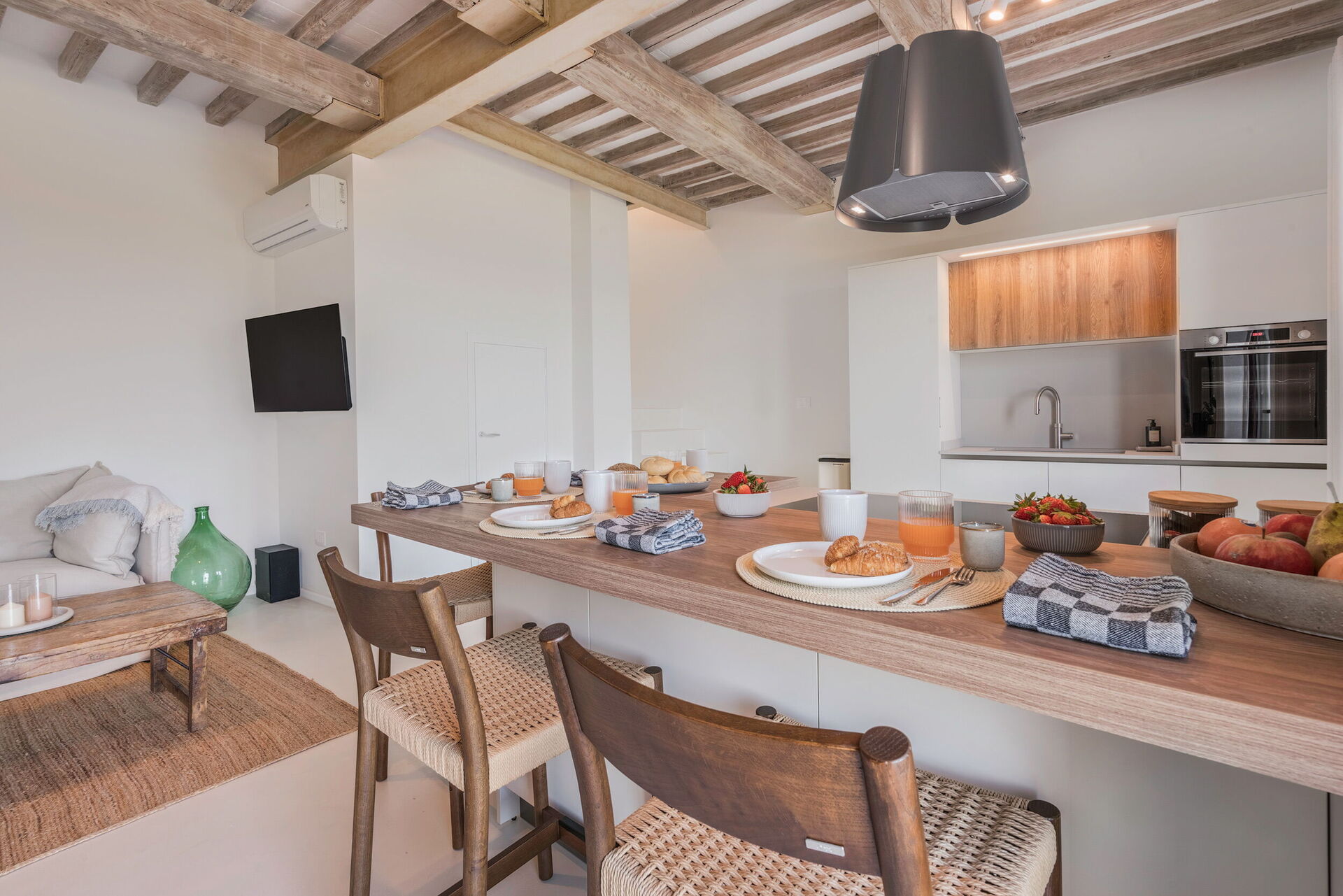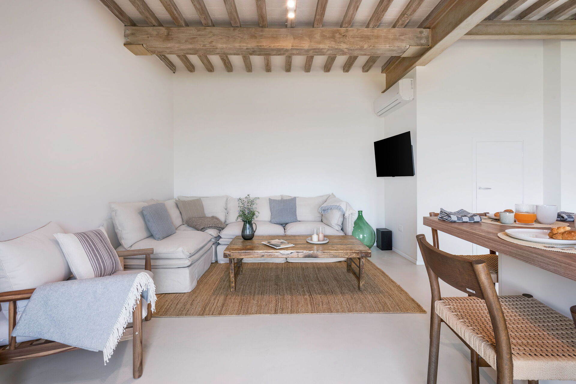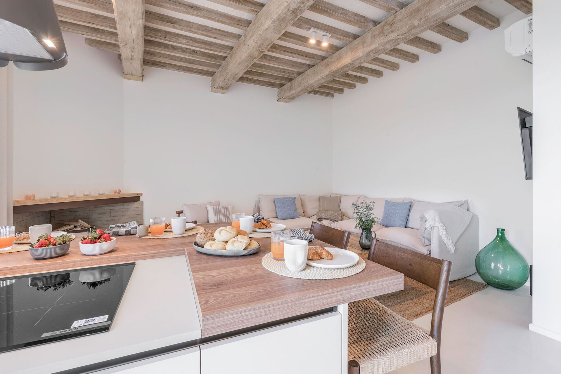 Cucina - soggiorno: cucina ben attrezzata, tavolo da pranzo, lavastoviglie, frigo, freezer, microonde, piano cottura, forno, macchina da caffè (italiana), internet WIFI, aria condizionata, televisione, uscita sul giardino.