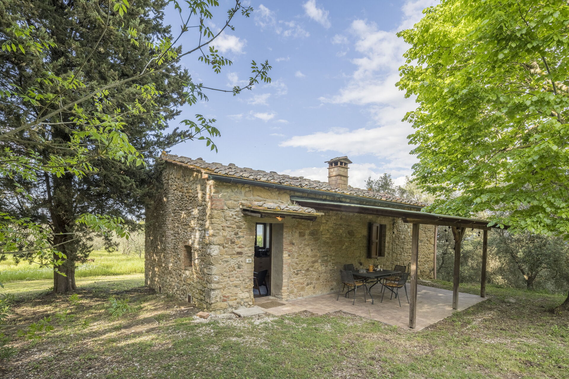 Il cottage dispone di un'ampia area privata con veranda attrezzata per mangiare all'aperto. La proprietà è molto grande e comprende la casa padronale di fronte alla quale si trova una piscina condivisa con i proprietari che soggiornano occasionalmente nella casa padronale.