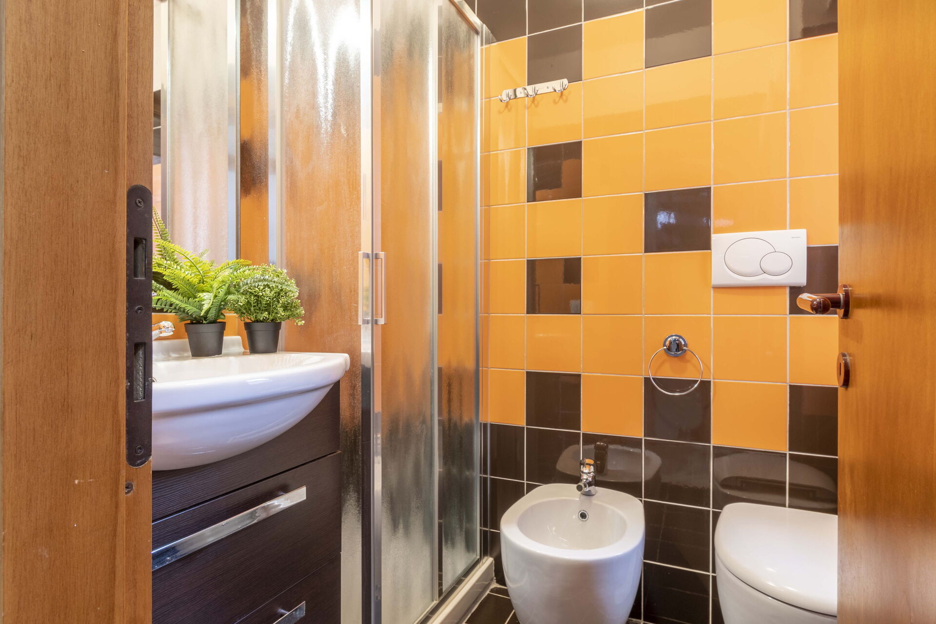 Bagno: lavandino, wc, bidet, doccia, asciugacapelli.