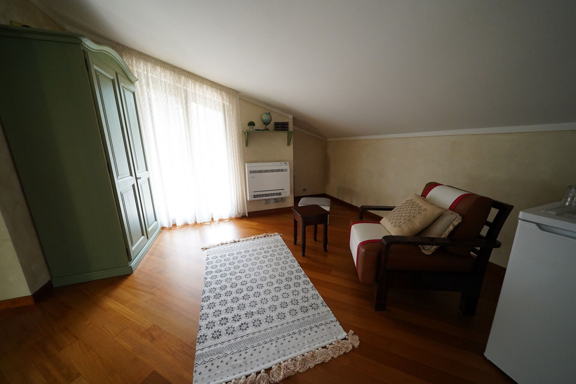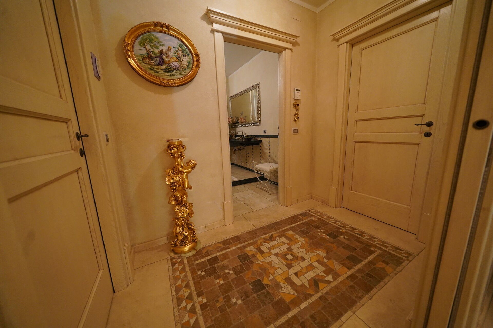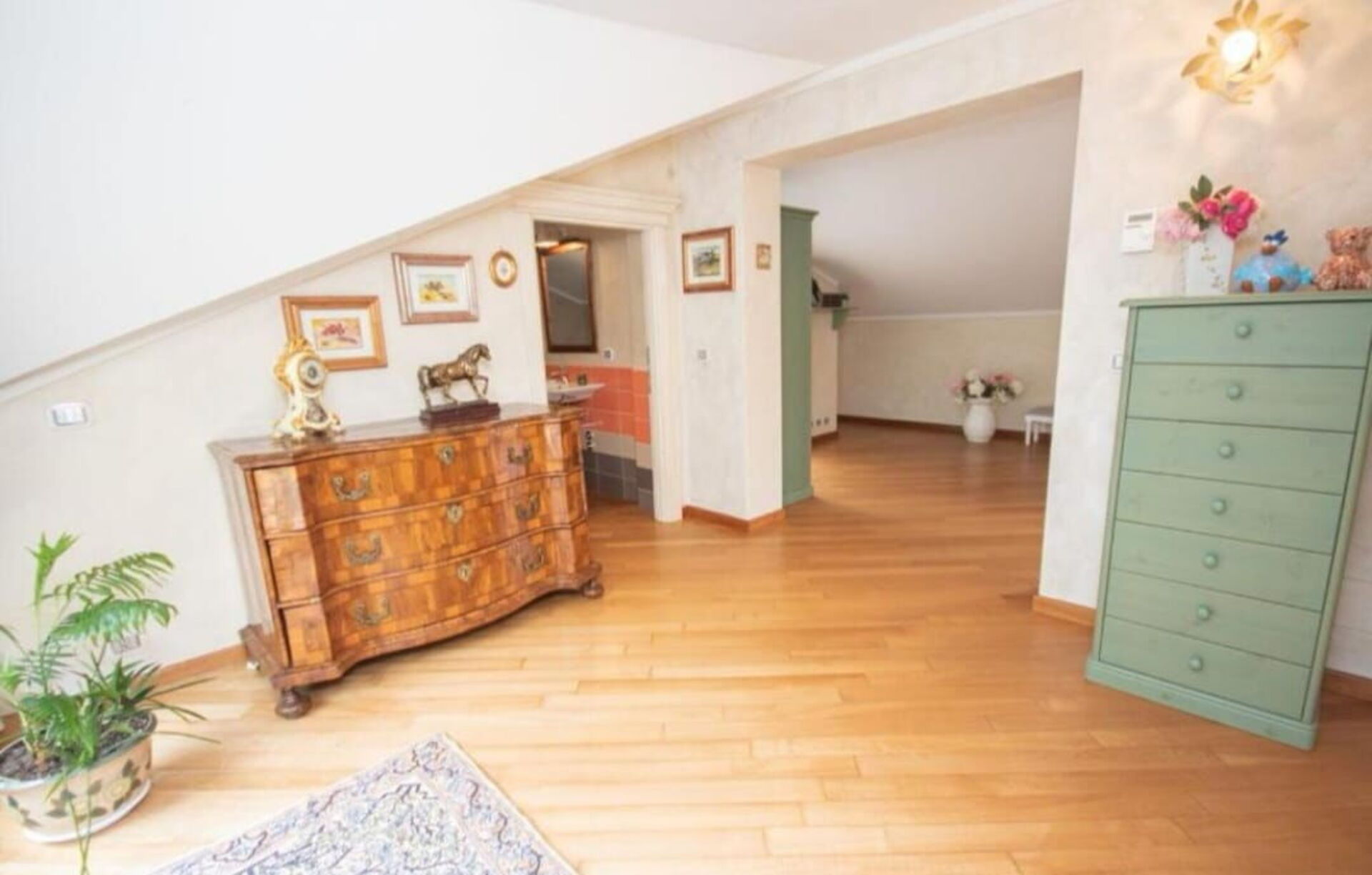 Soggiorno a sinistra, ampio bagno con vasca. Passaggio alla scala - 2 camere doppie, una con terrazza, al centro un bagno con doccia, soppalco 1 camera doppia, 1 stanza guardaroba. Mansarda con porta a vetri 1 camera da letto con bagno con doccia e 2 terrazze.
