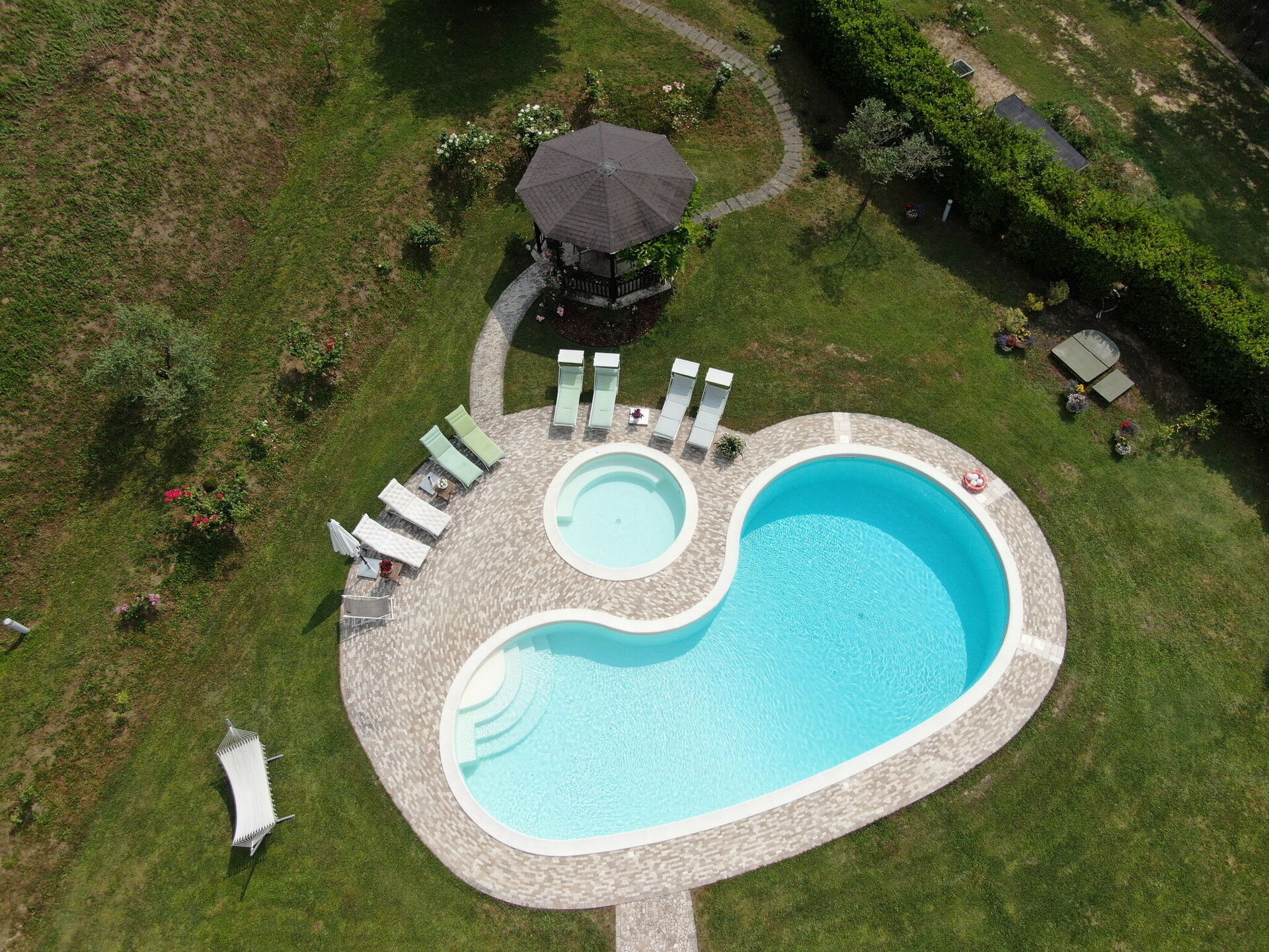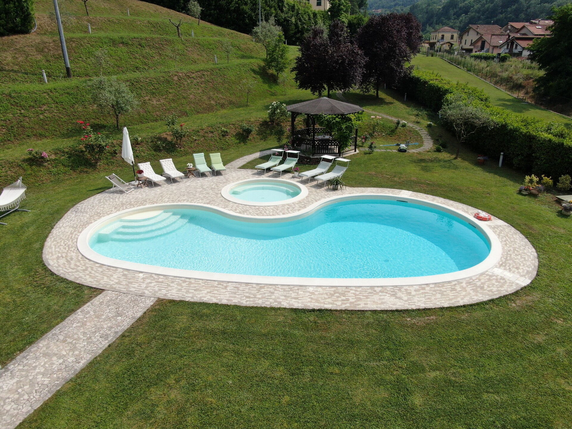 La struttura offre una comoda alternativa al mare. L'enorme piscina (17 x 5 m a forma di rene) e profonda oltre 2 m (sistema di filtraggio a sale) è un luogo molto apprezzato per rilassarsi. Accanto ad essa si trova una pergola con tavolo e posti a sedere, dietro la quale si trova un sentiero che porta al villaggio di Gragnola.