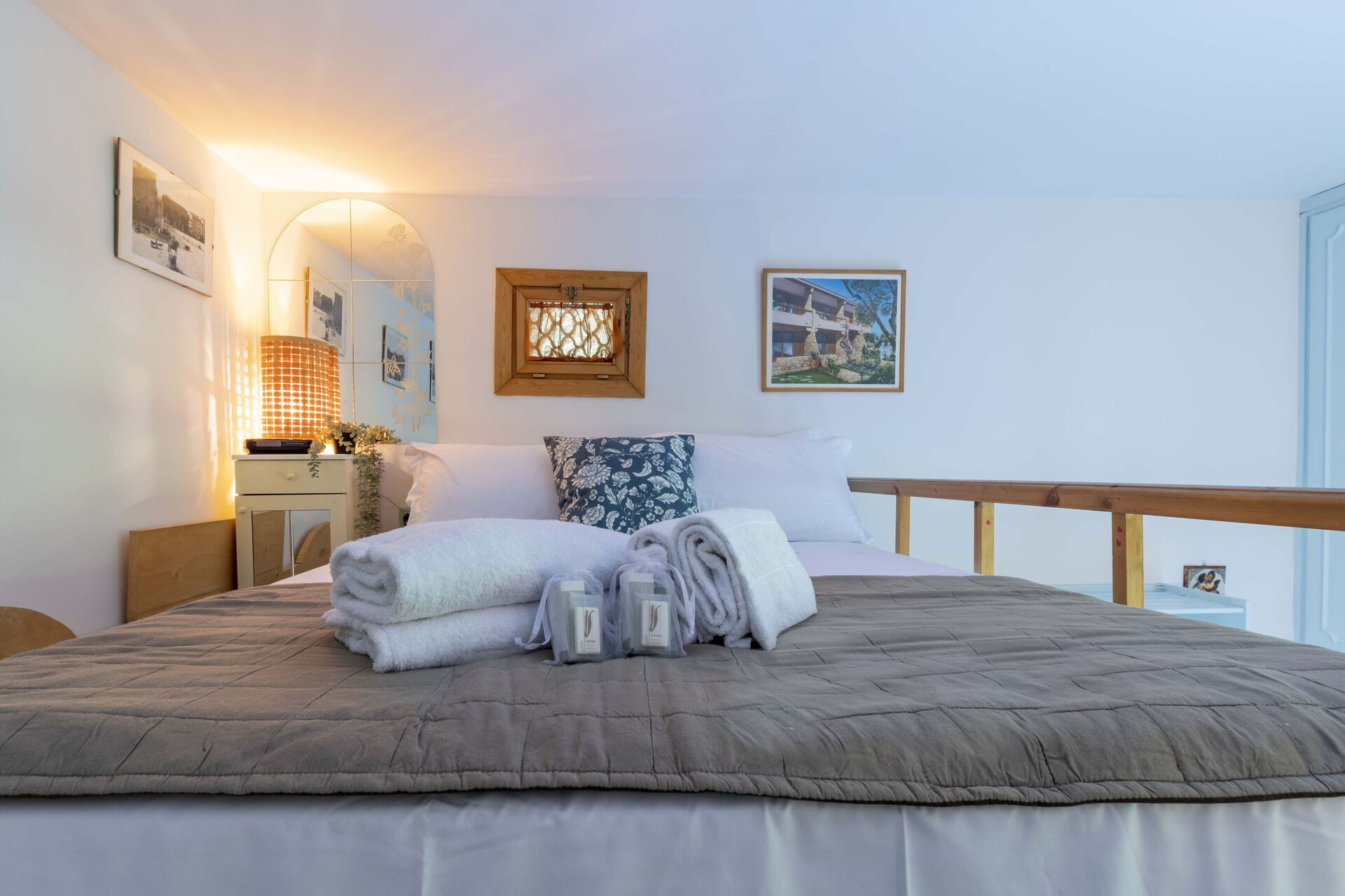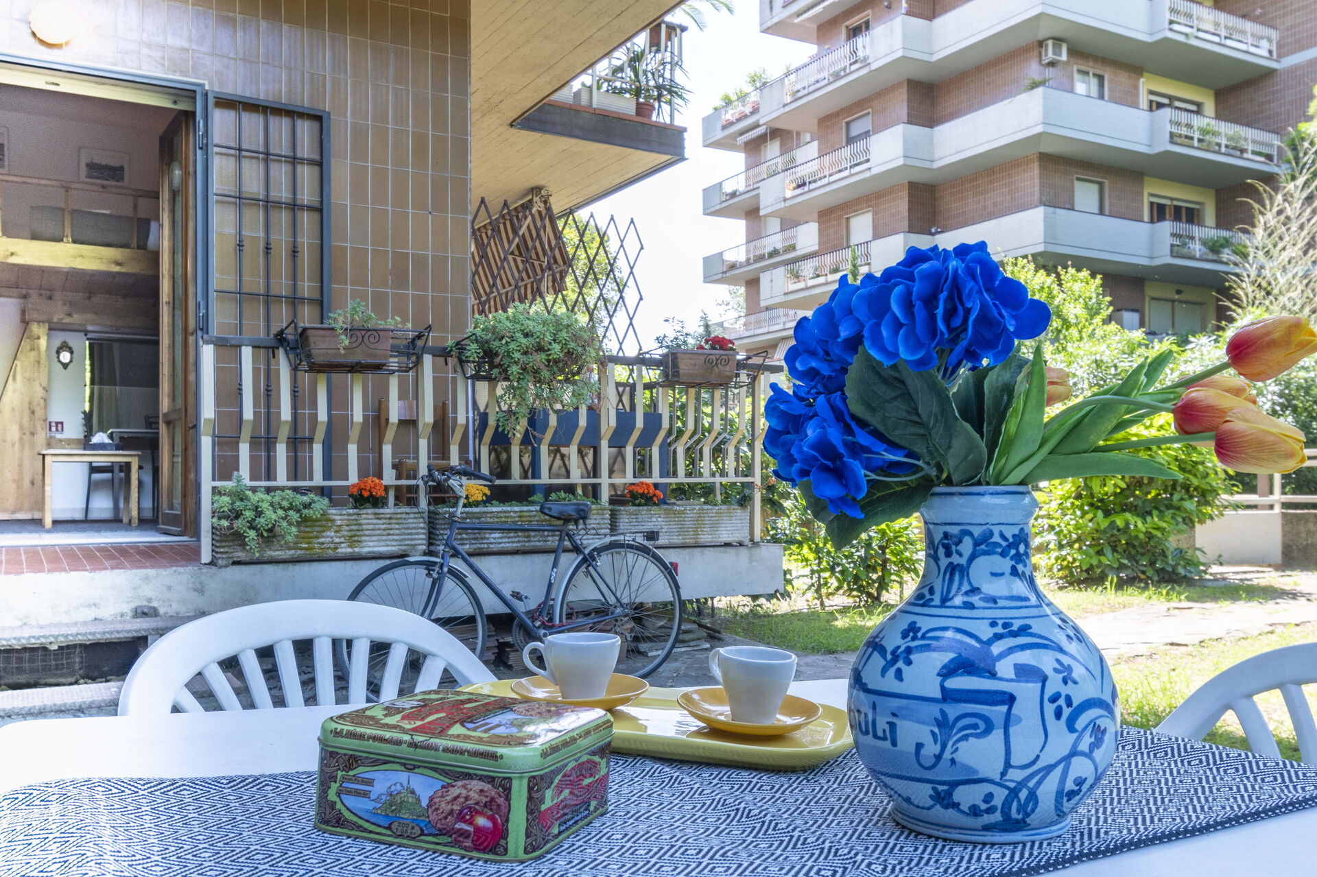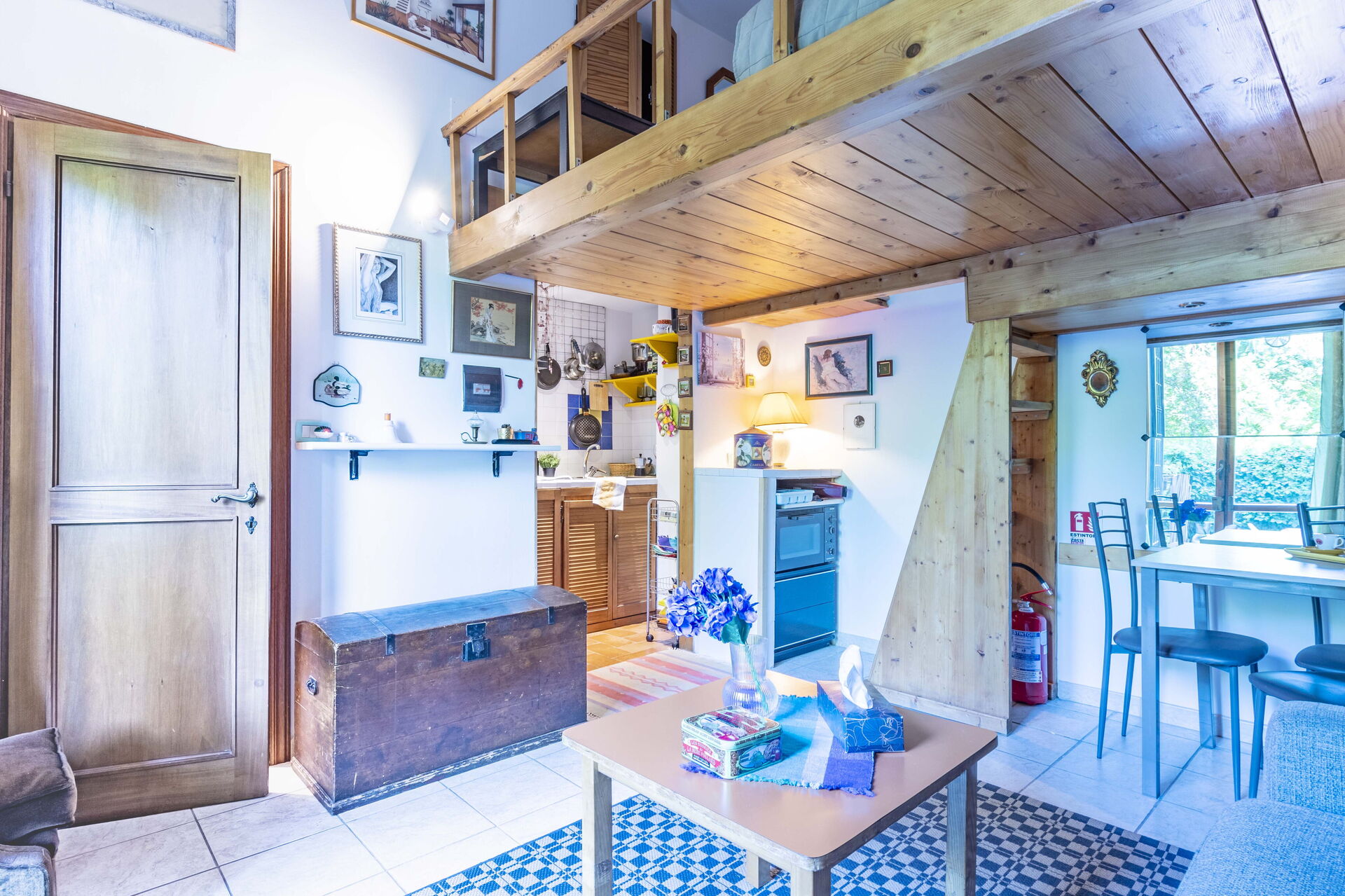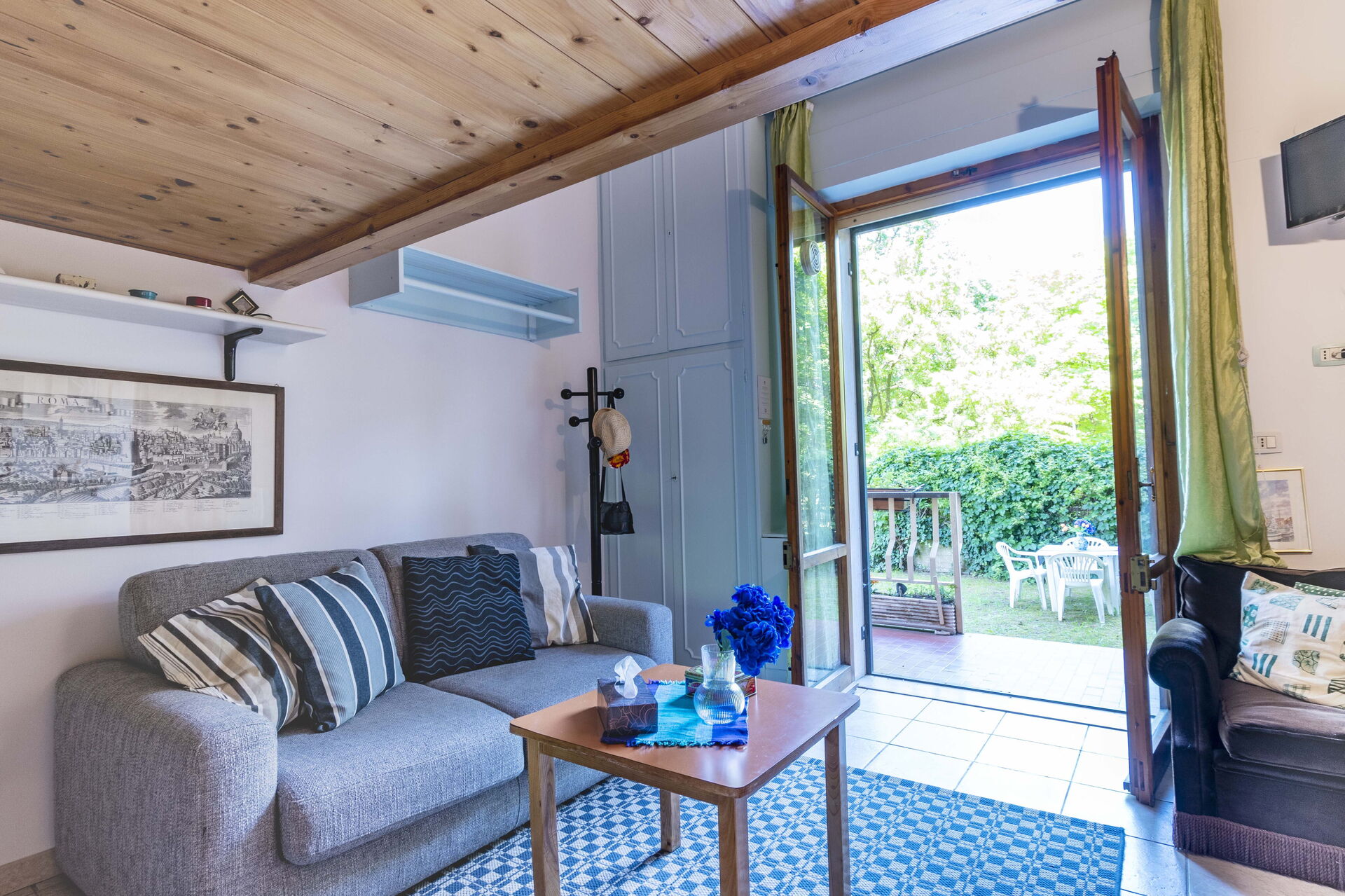Open space (35 m2): scrivania, tavolo da pranzo, divano letto, internet WIFI, tv satellitare, frigo, piano cottura, lavatrice, freezer, cucina ben attrezzata, microonde, macchina da caffè (italiana), uscita sul giardino.