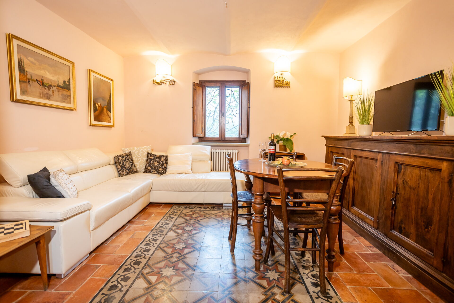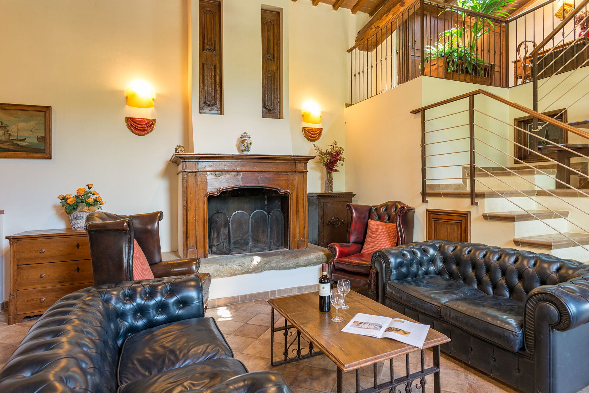 Soggiorno: due divani (persone: 5), caminetto, tavolo da pranzo (persone: 10), internet WIFI, tv satellitare.