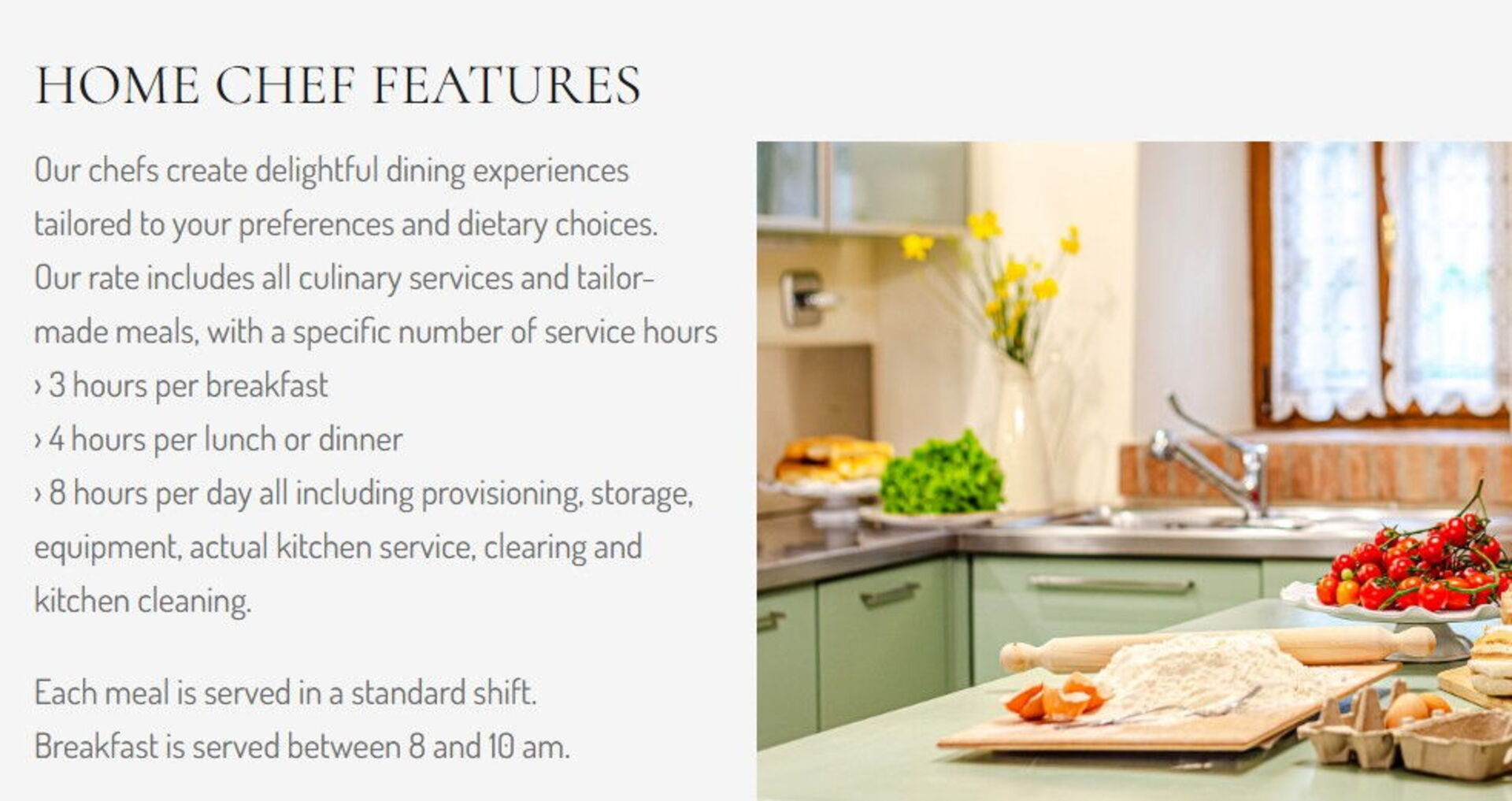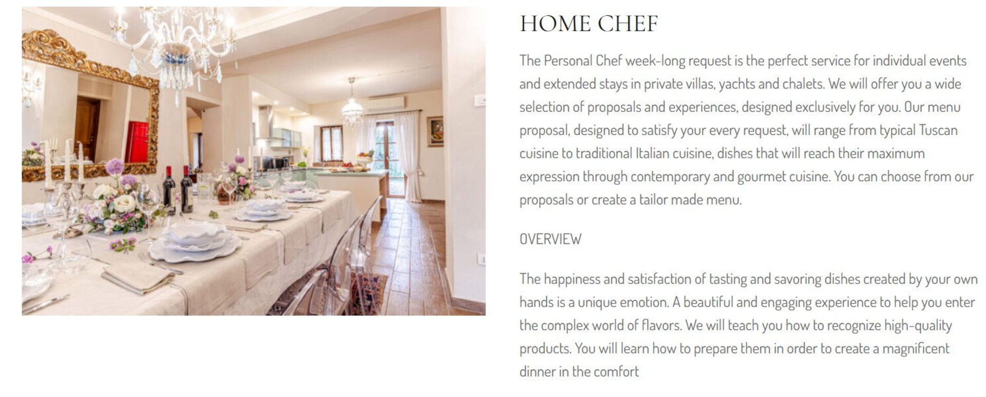 Chef Personale - Sei alla ricerca di un vero e proprio sfizio durante la tua vacanza? Perchè non prenotare uno chef professionista per prepararti e servirti un delizioso pasto creato con prodotti freschi e locali? Lo chef concorderà il menù in base alle tue preferenze e alle necessità della tua dieta. Lo chef offrirà pareri per le varie portate e il vino di accompagnamento. Se interessato, chiedi maggiori informazioni e i costi supplementari del servizio.
