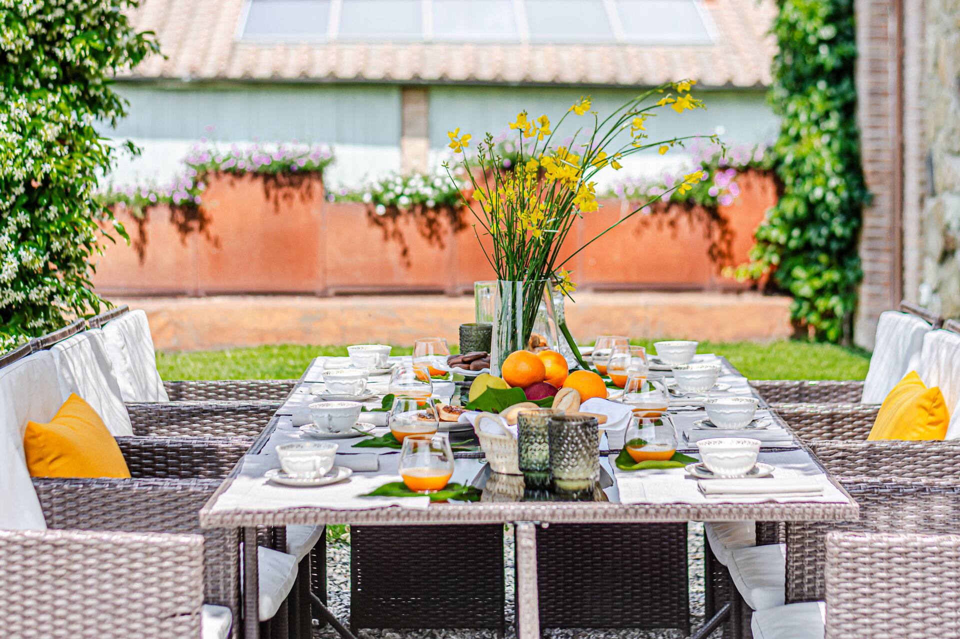 Giardino (2000 m2): piscina (larghezza: 6m, lunghezza: 12m, profondità: 1.4m, esterno/a), vasca idromassaggio esterna, barbeque, possibilità di mangiare all'aperto, tavolo da pranzo (persone: 10), arredamento da giardino, sdraio, proprietà recintata, spazio giochi, campo da calcetto.