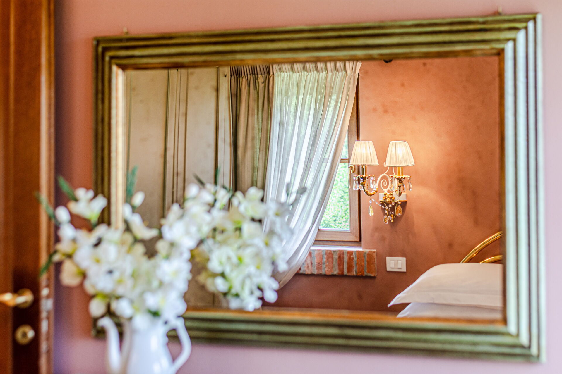 Camera da letto con bagno: internet WIFI, aria condizionata, lavandino, wc, bidet, doccia, uscita sul giardino.