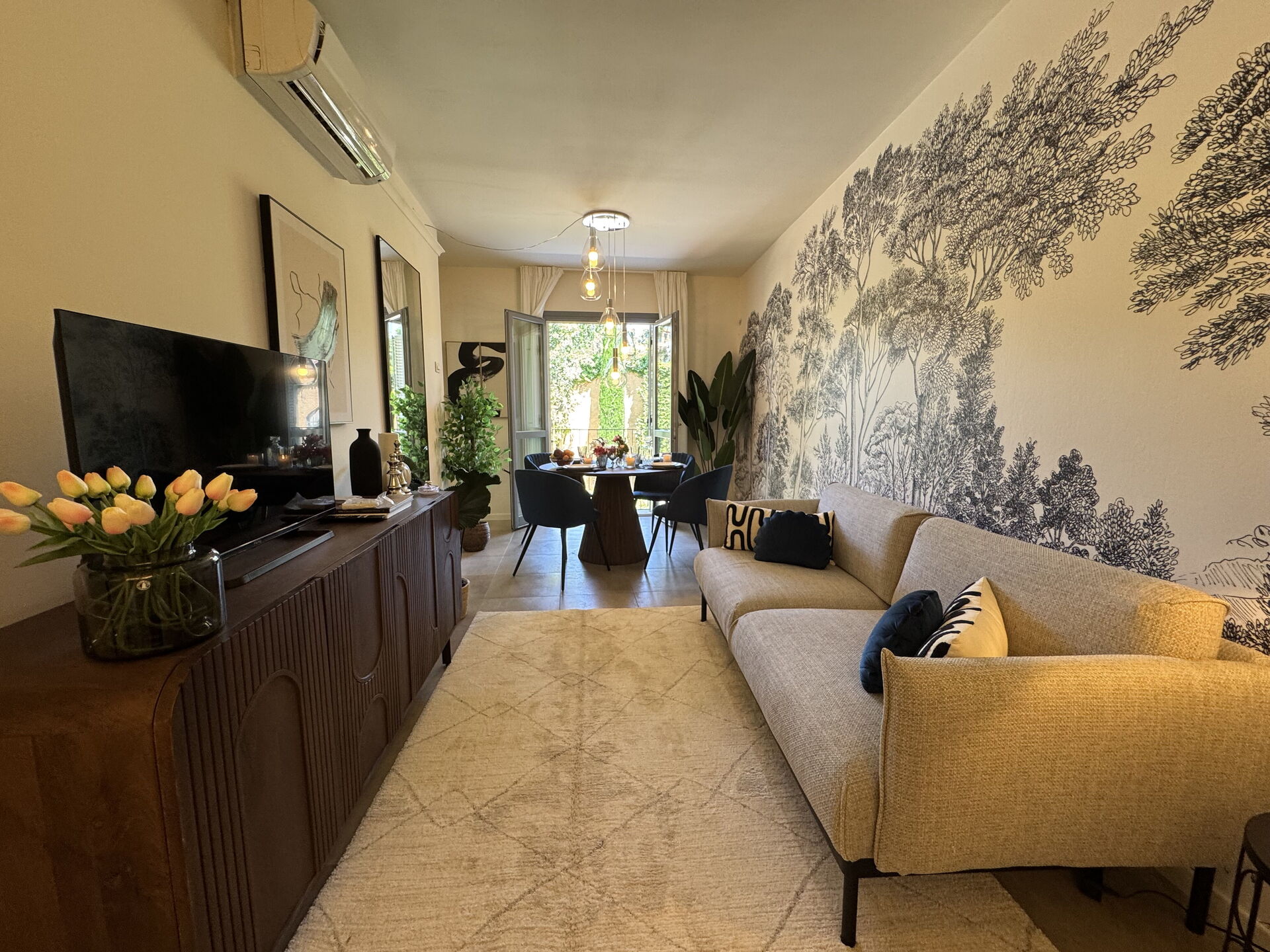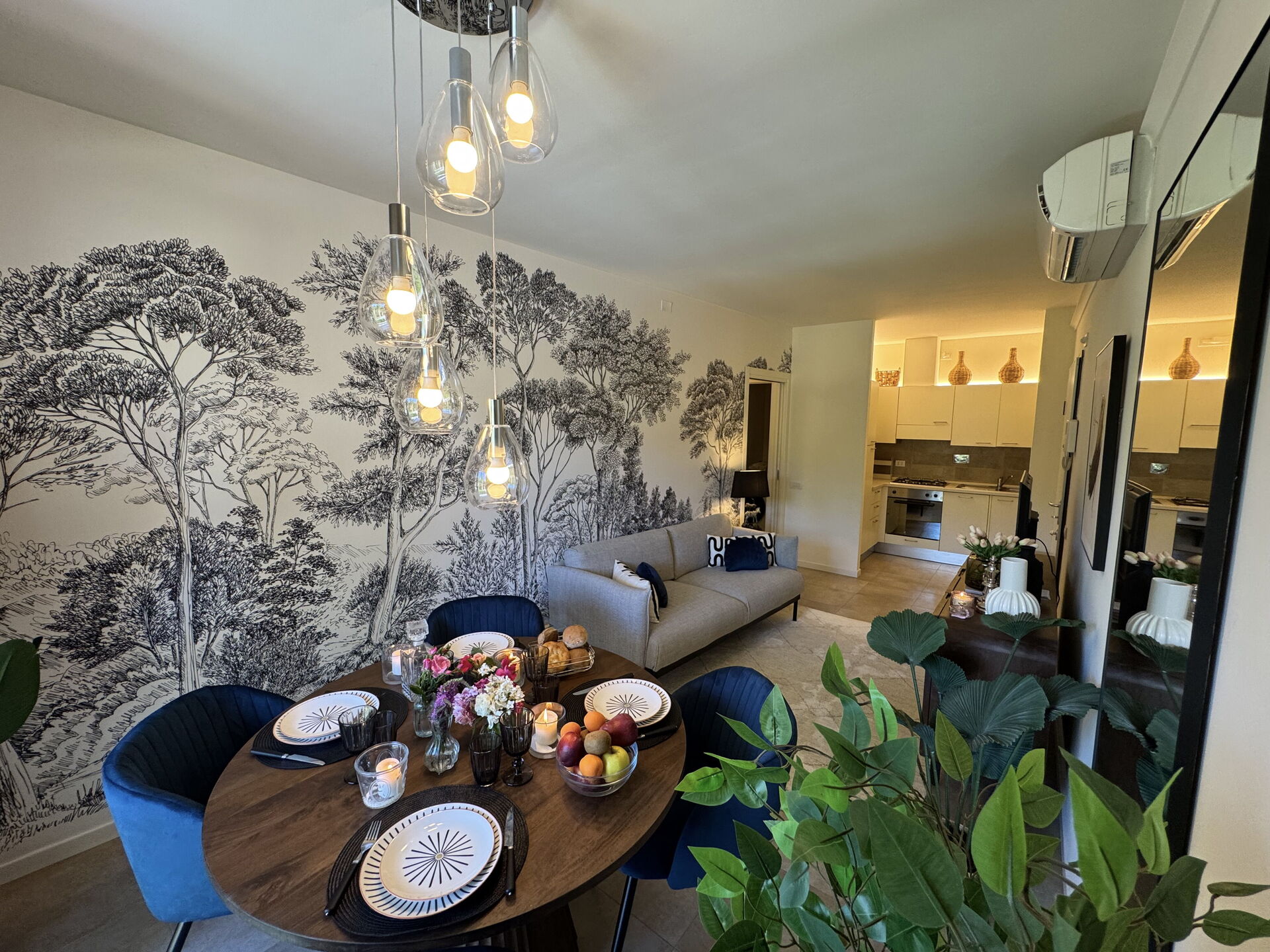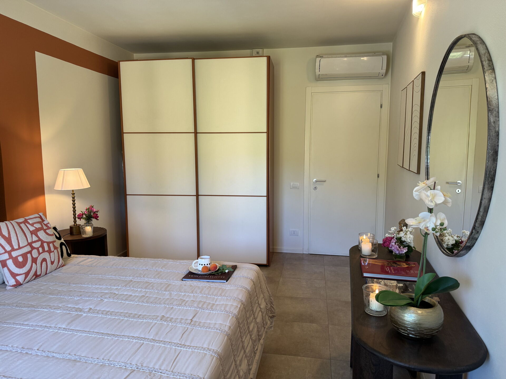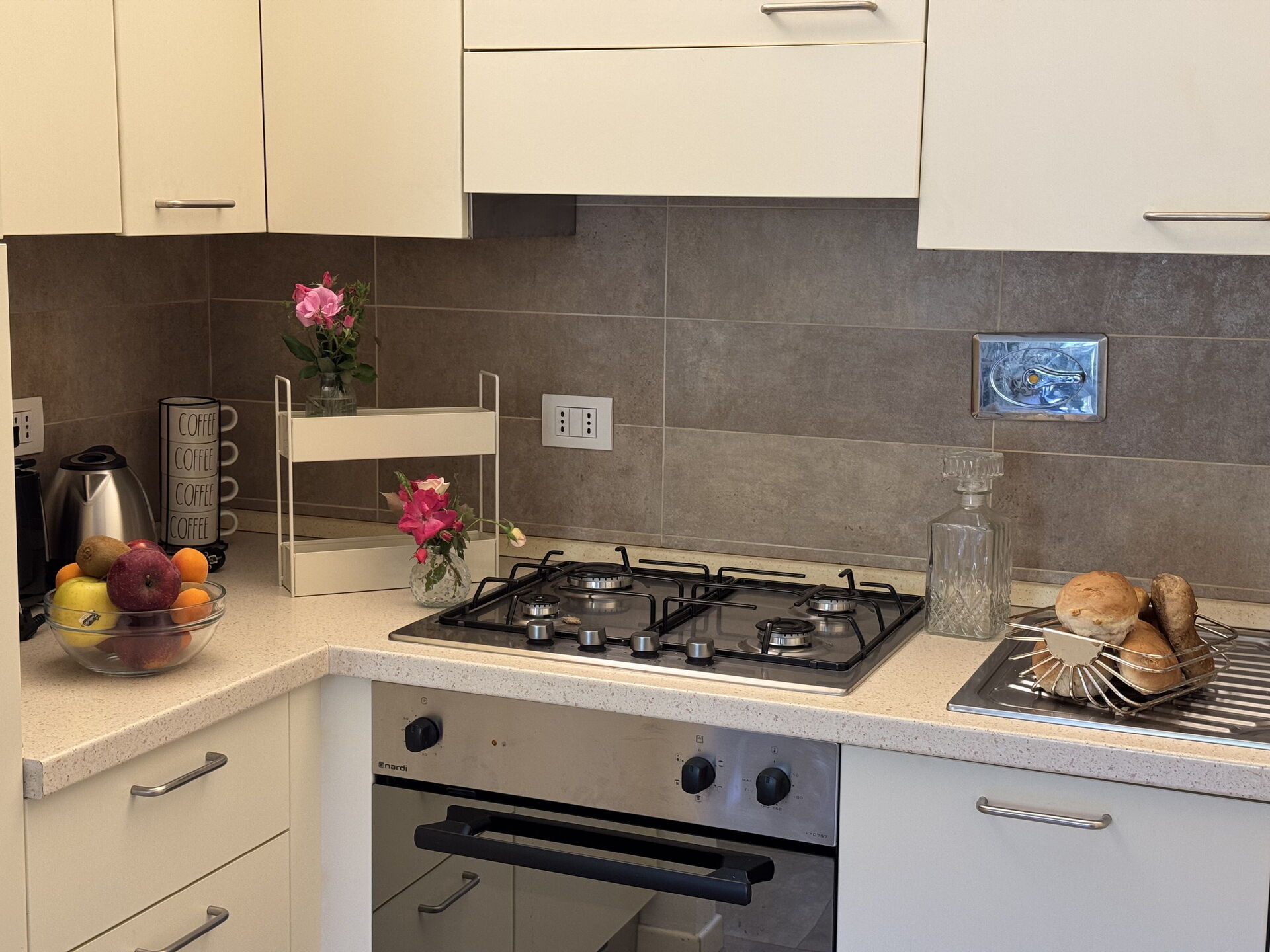 Cucina - soggiorno: cucina ben attrezzata, tavolo da pranzo, lavastoviglie, frigo, freezer, forno, tostapane, macchina da caffè (italiana), lavatrice, divano, aria condizionata, televisione.