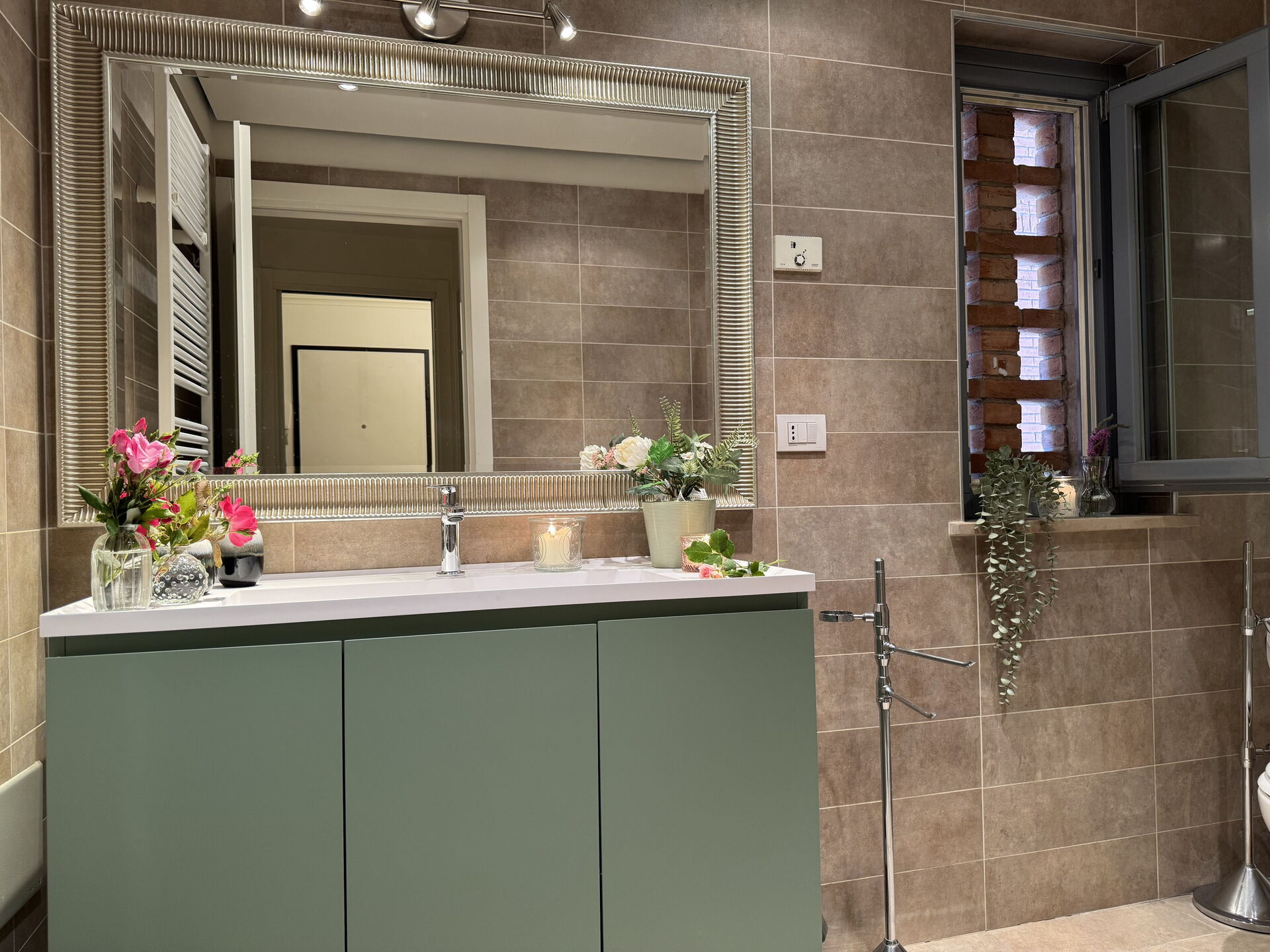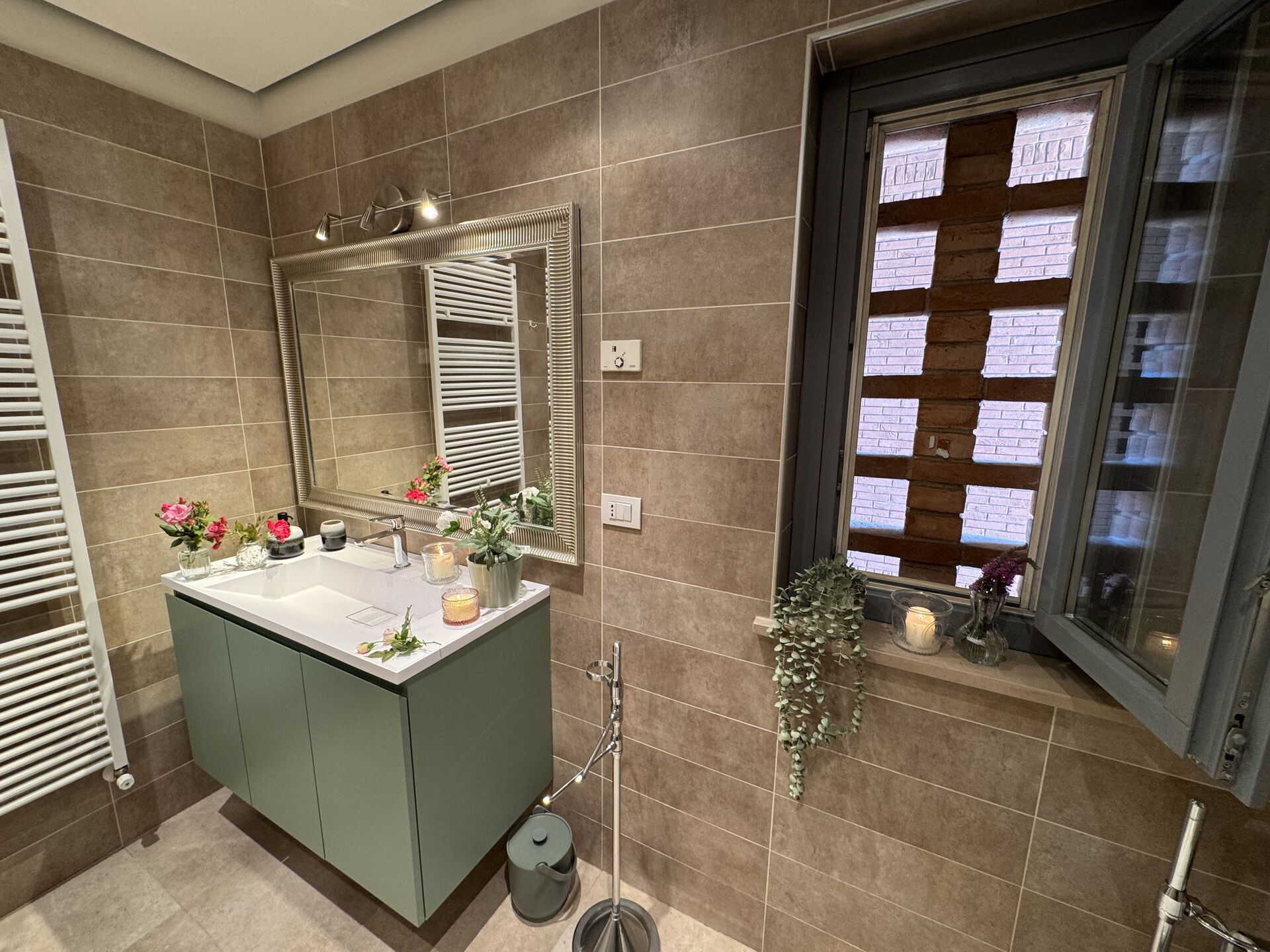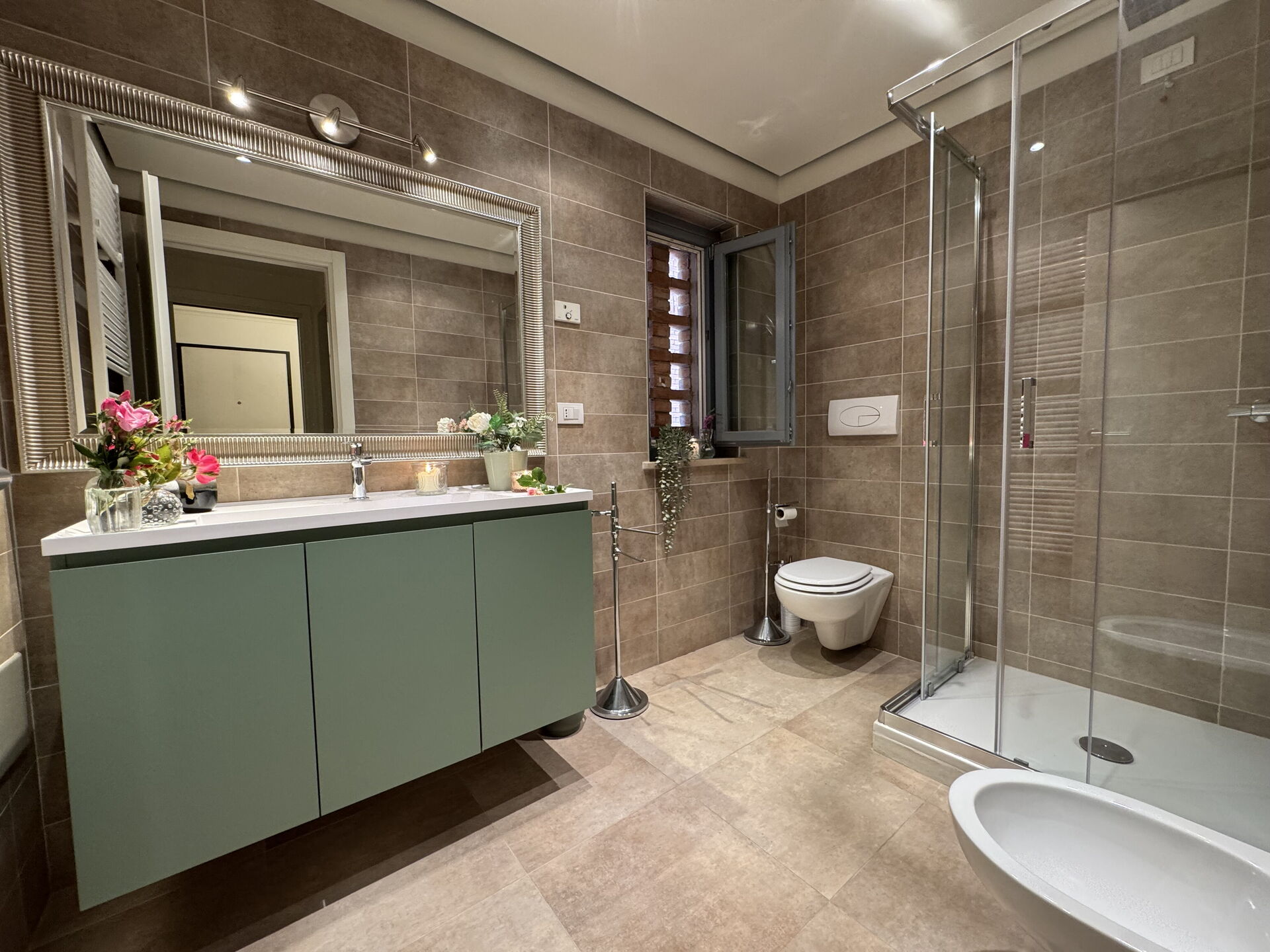 Bagno: lavandino, wc, bidet, doccia, asciugacapelli.