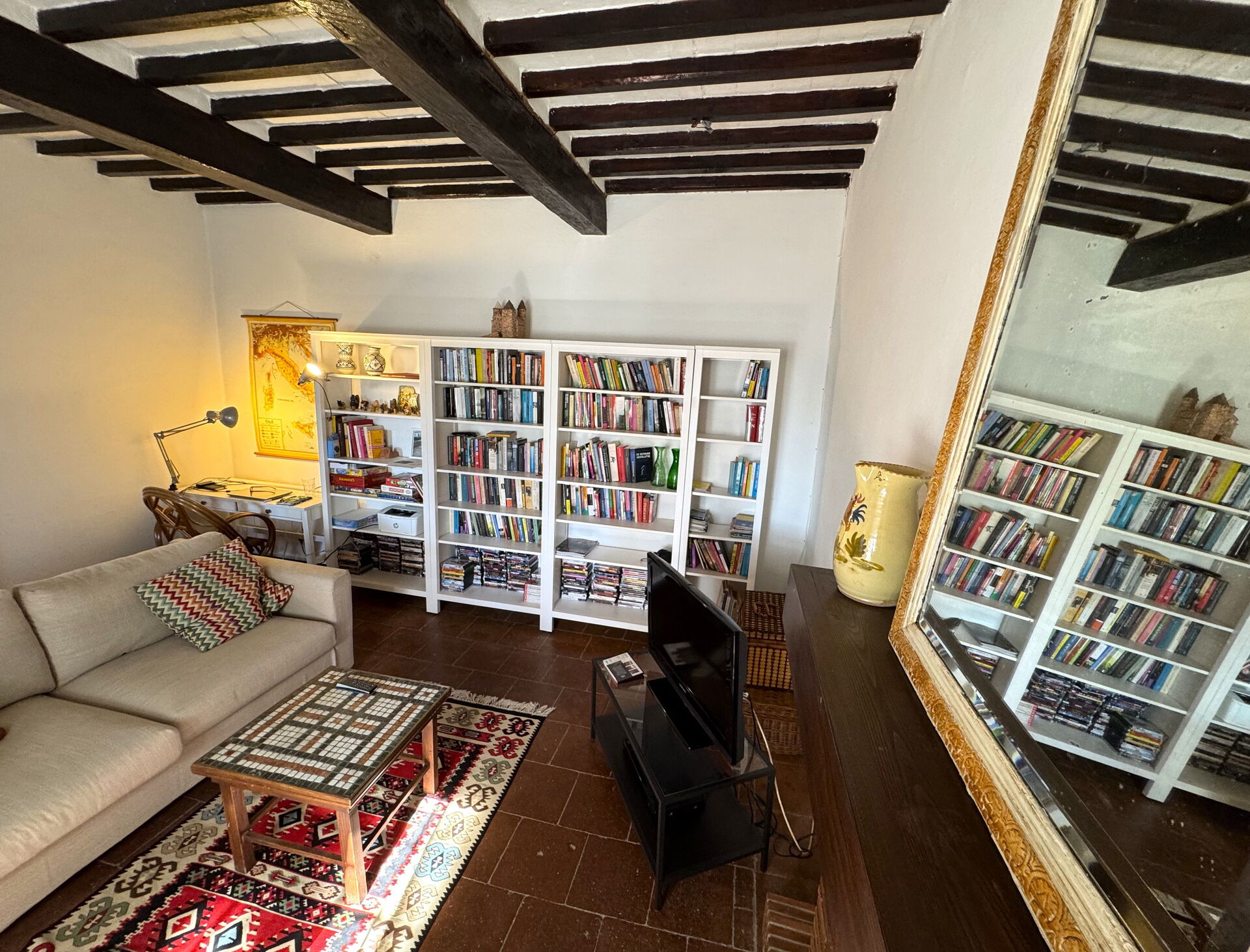 Soggiorno: scrivania, divano letto matrimoniale.