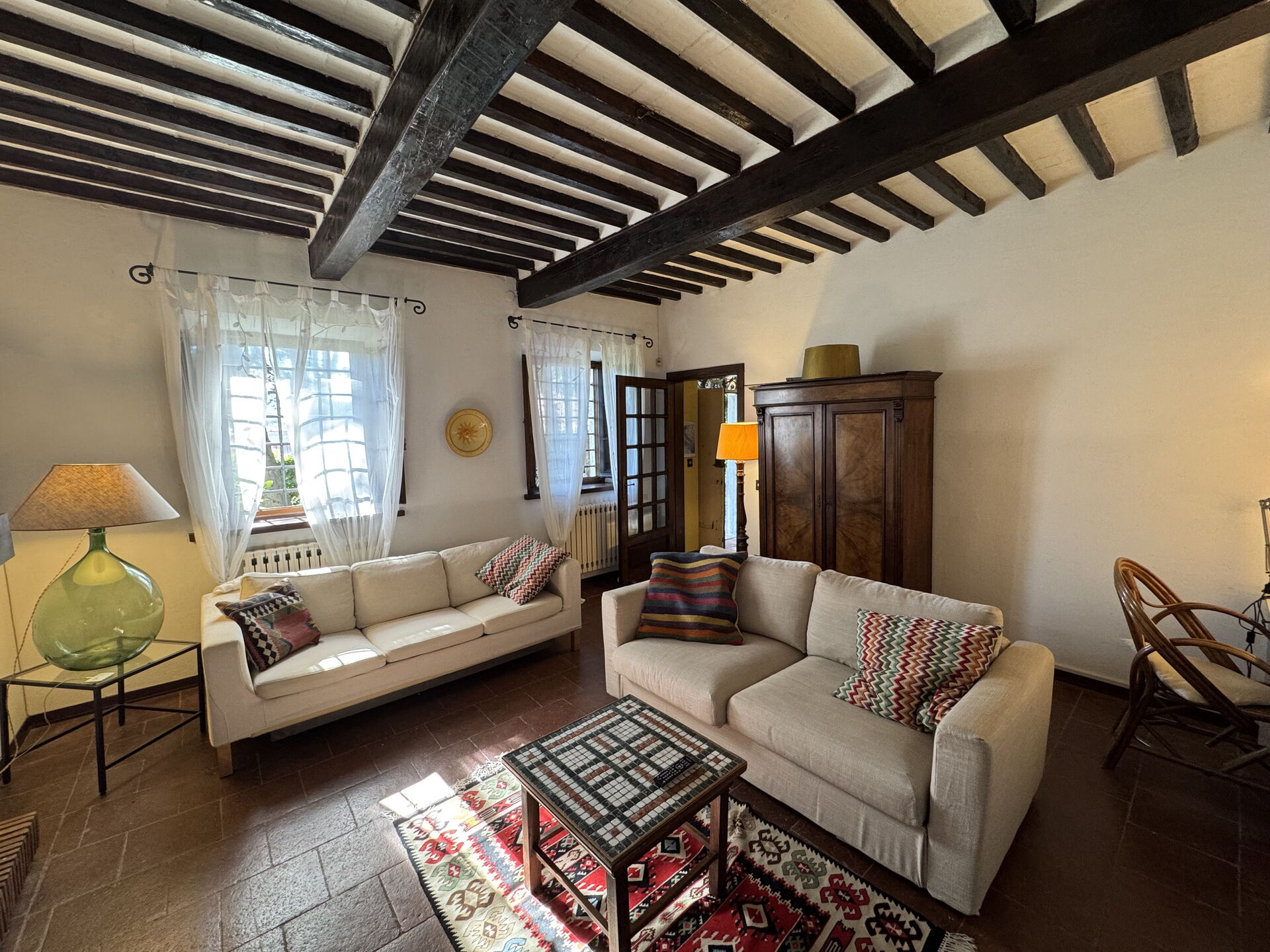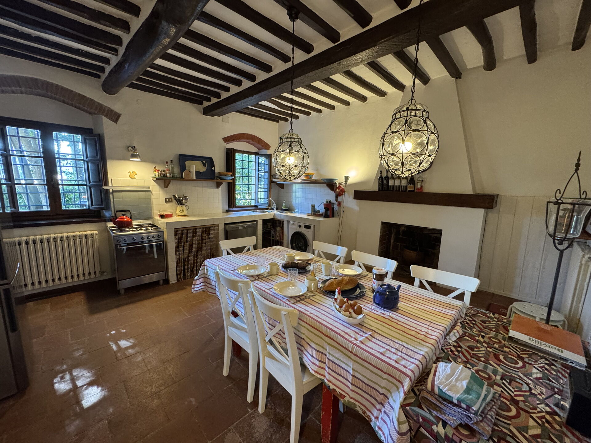 All'arrivo sarai accolto dal proprietario o dal gestore della tua bellissima casa vacanze, una proprietà pulita e tenuta in ottime condizioni, ideale per una tranquilla vacanza in Toscana. Dopo una frenetica giornata ricca di gite turistiche, concediti del tempo con famiglia e amici a bordo piscina per gustarti una bibita rinfrescante o un buon calice di vino - non c'è niente di meglio per riposarti alla fine della giornata. C'è una cucina con macchinetta per il caffè, fornelli e frigorifero, così come un numero sufficiente di stoviglie e posate per un massimo di sette persone.