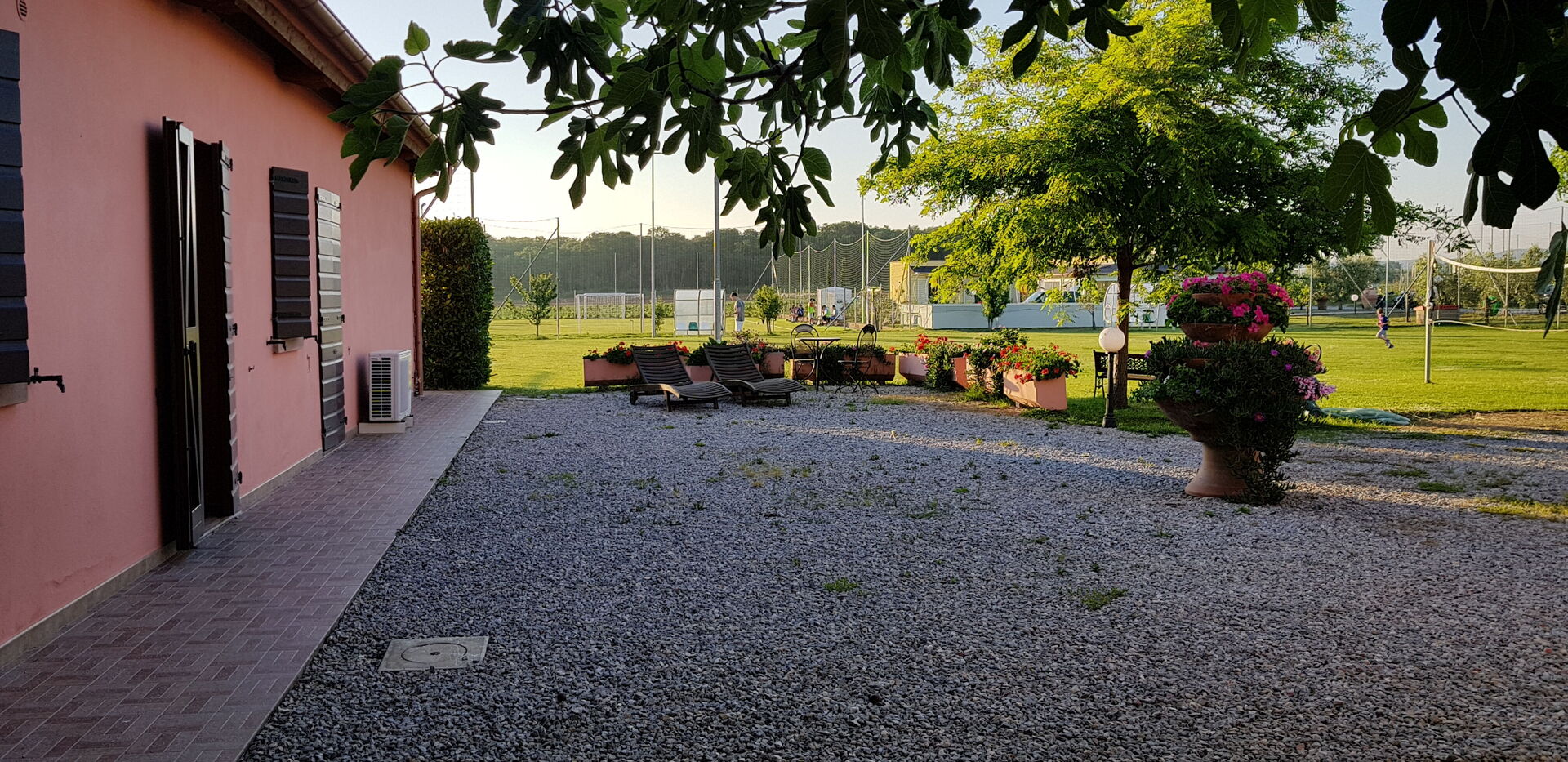 Area sportiva con campo da calcio e Padel.