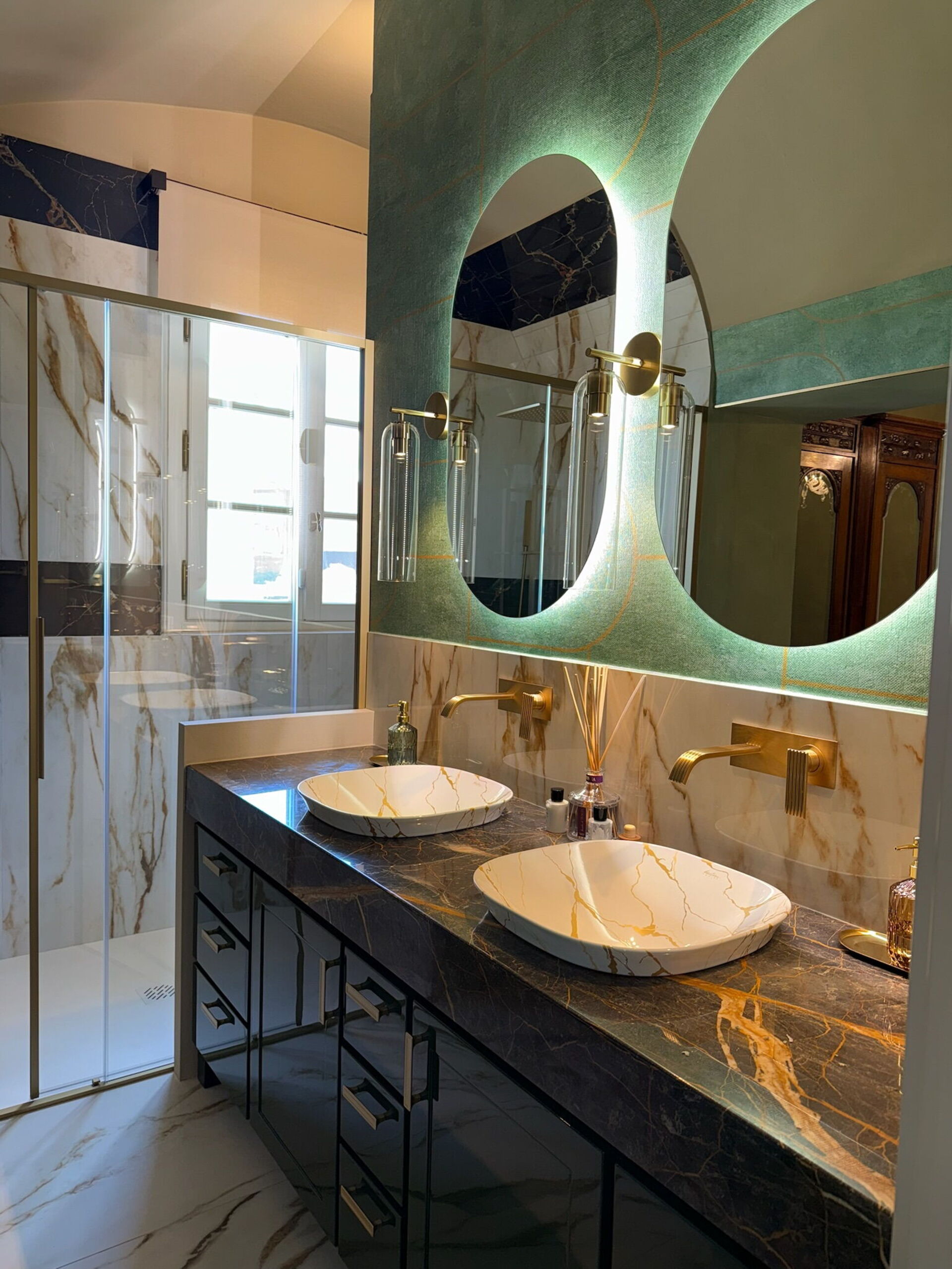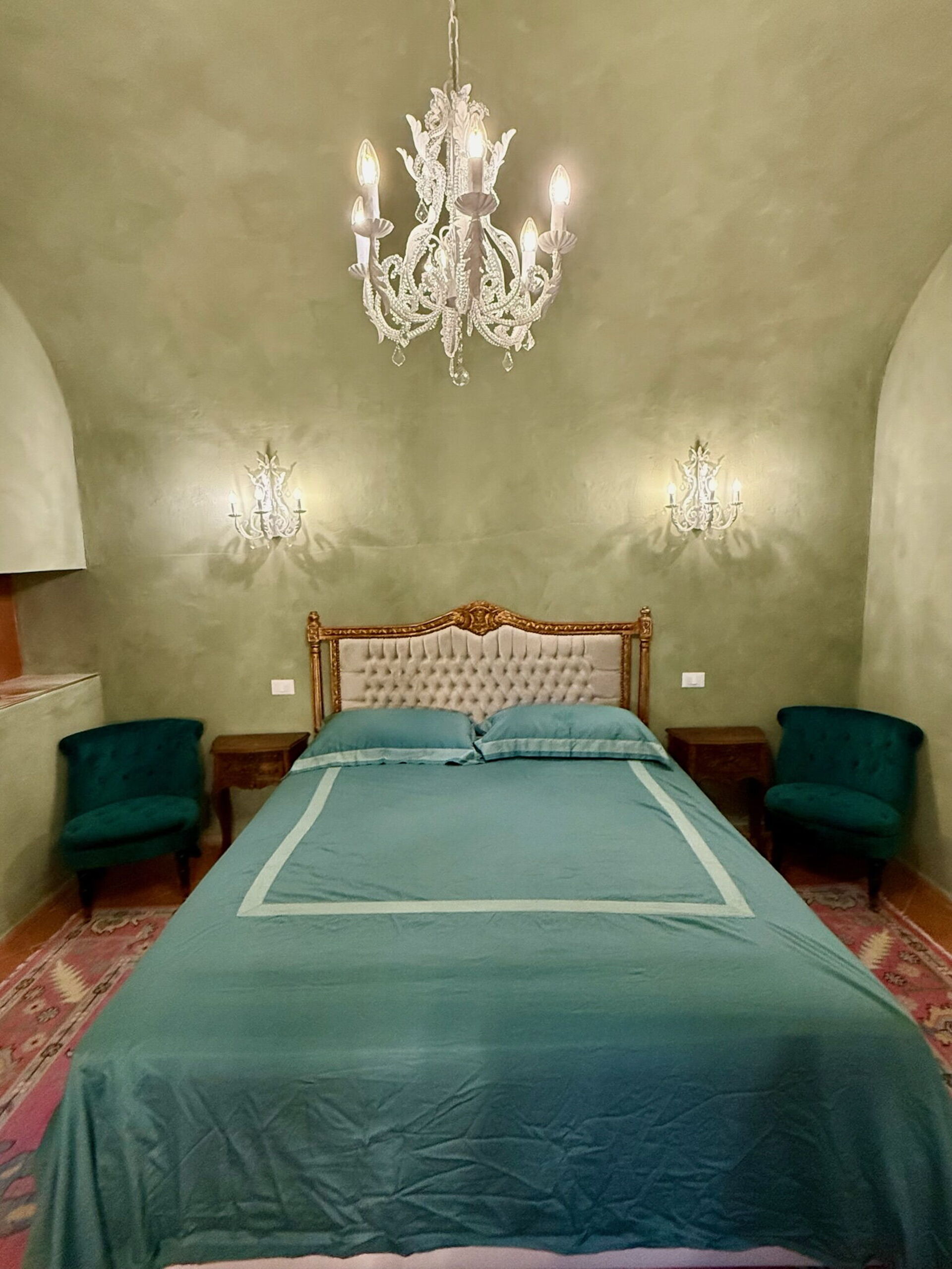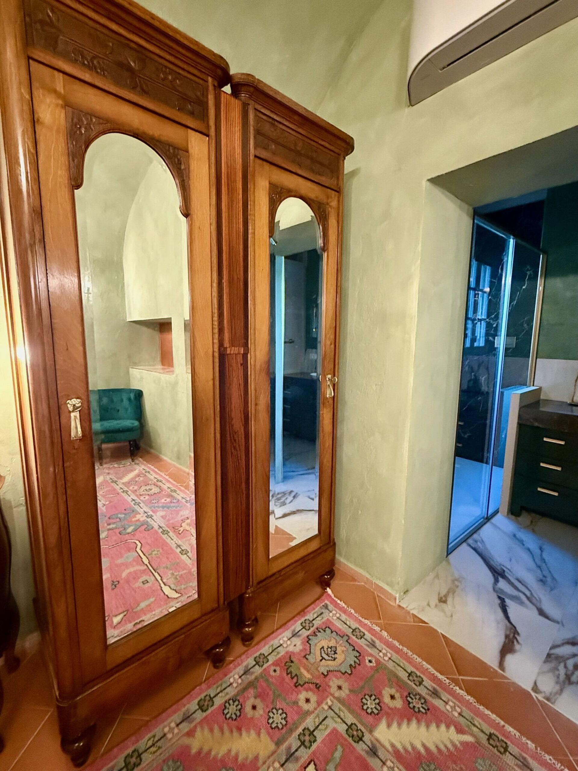 Camera da letto con bagno 1: letto matrimoniale, internet WIFI, aria condizionata, zanzariere, poltrona, lavandino doppio, wc, bidet, doccia, asciugacapelli.