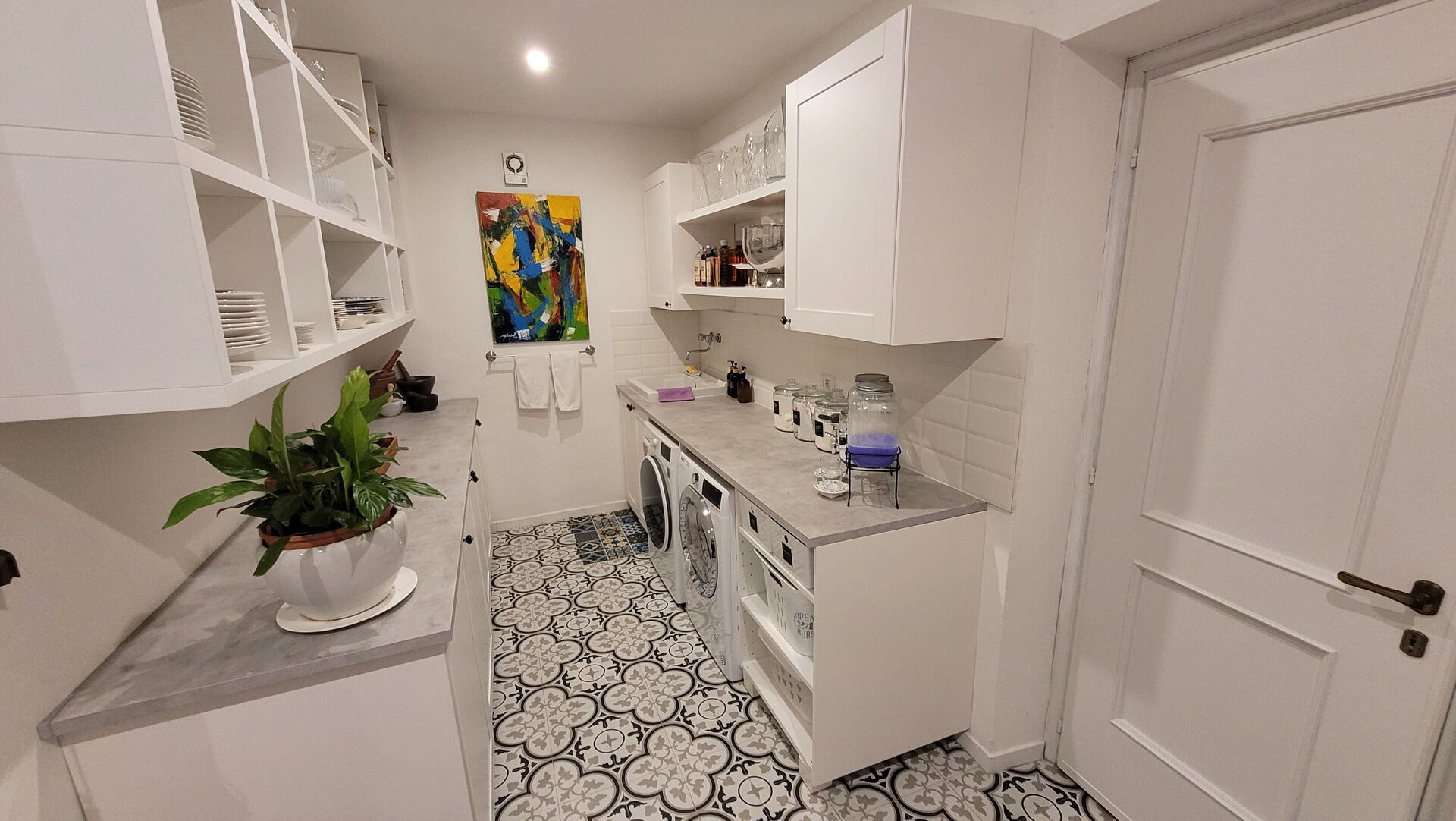 Stanza di servizio: ferro da stiro, lavatrice, asciugatrice.