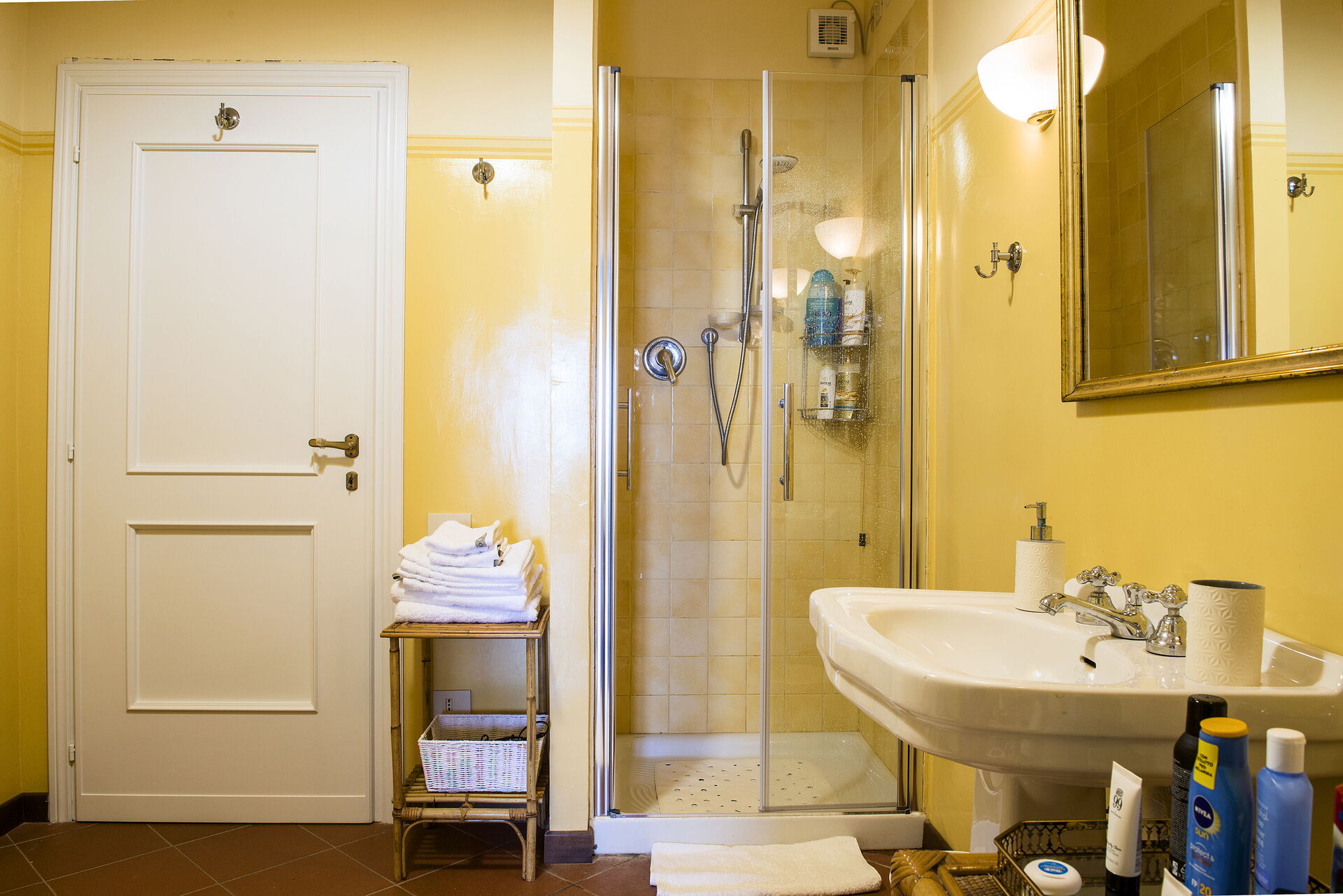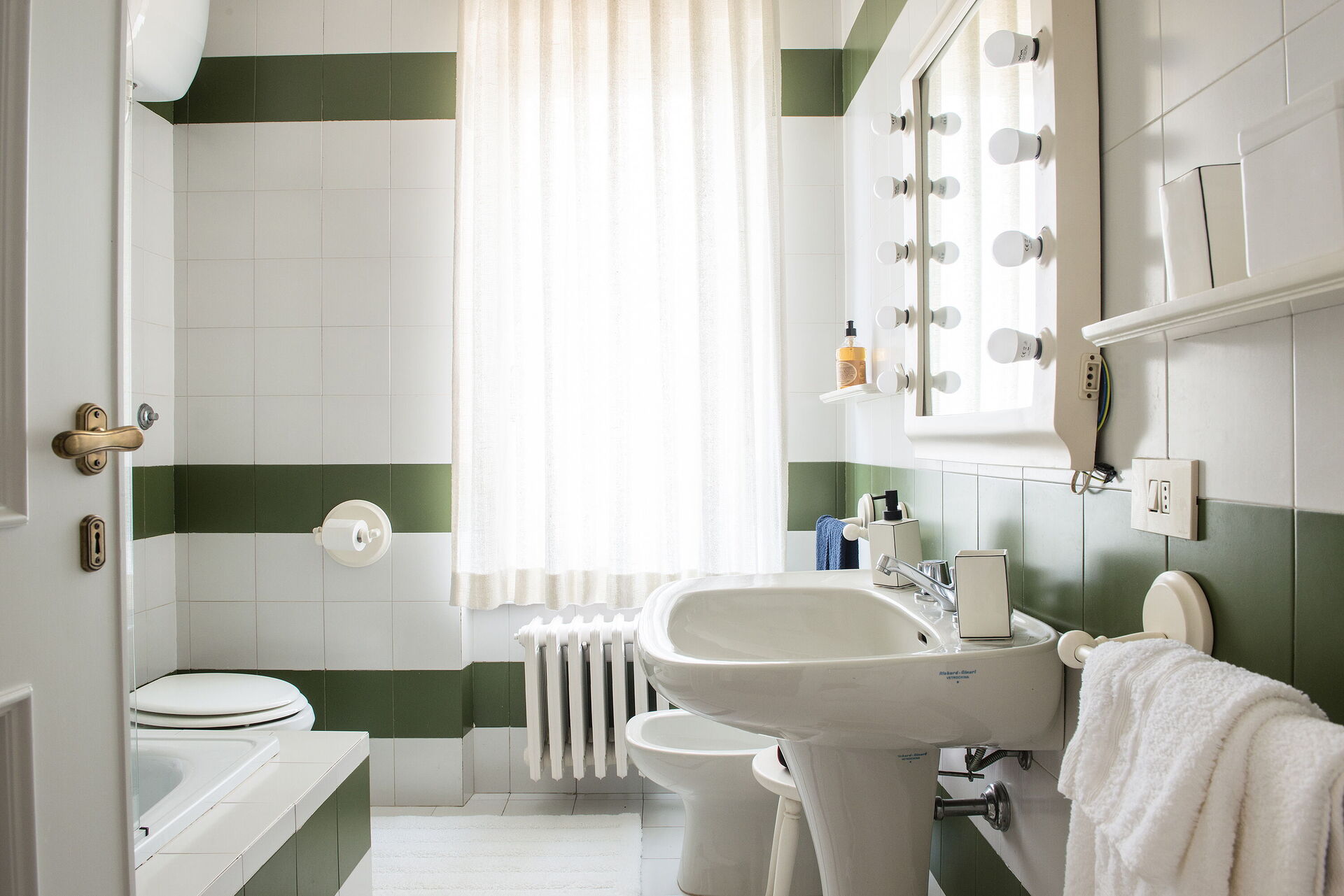 Bagno 1: lavandino, wc, bidet, doccia, asciugacapelli.