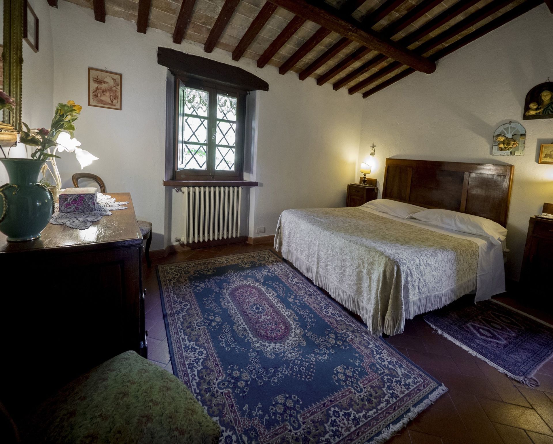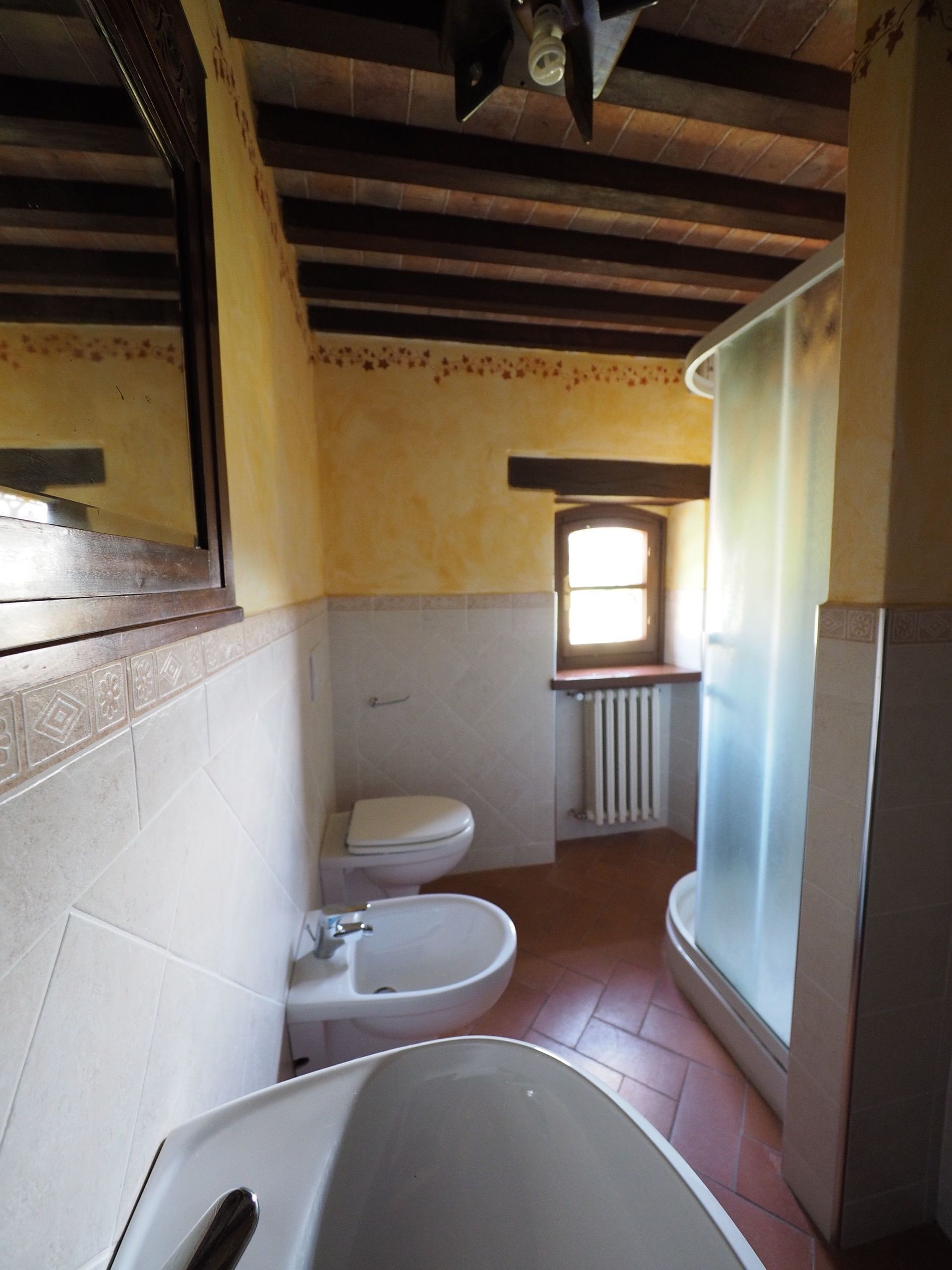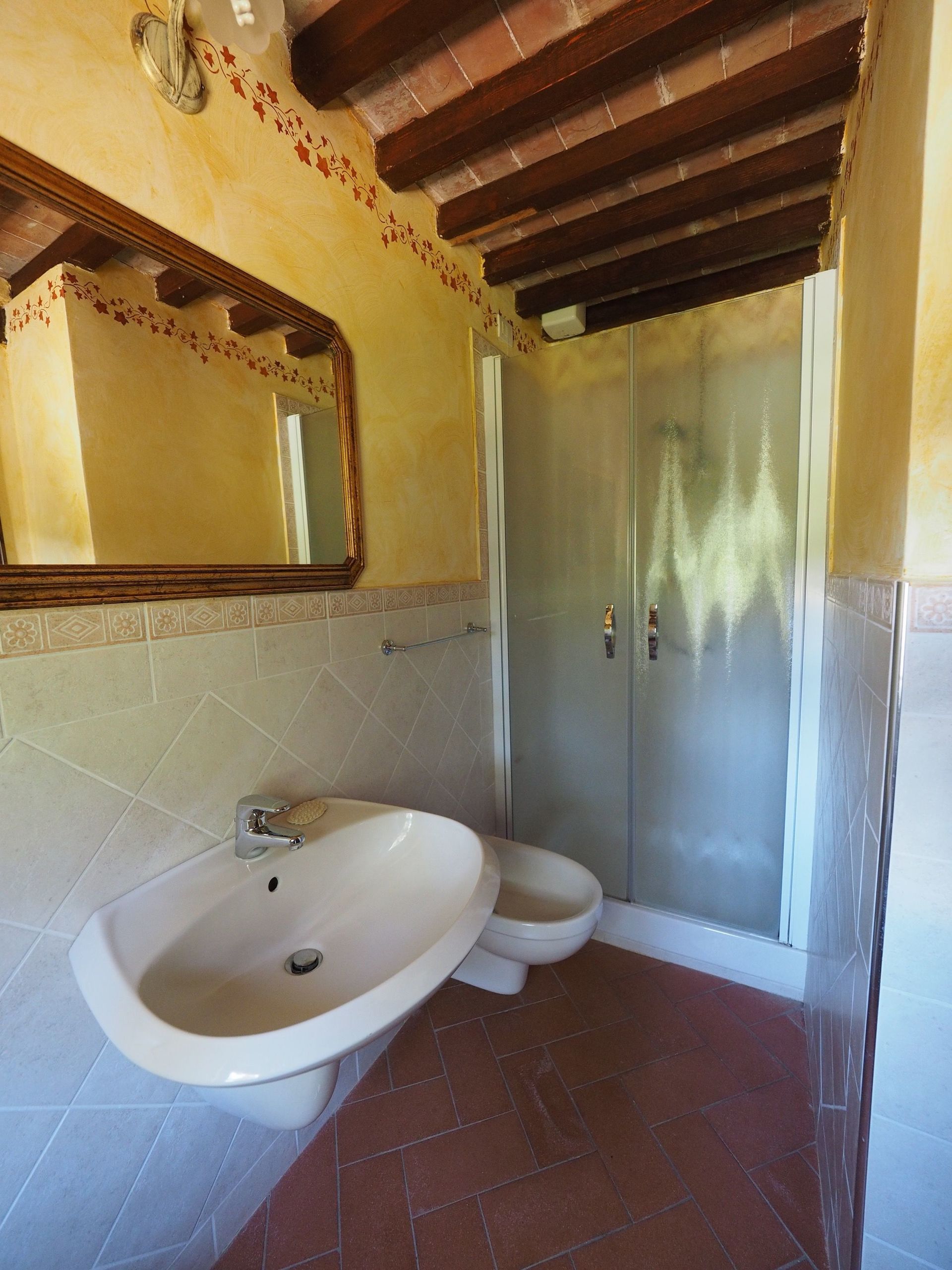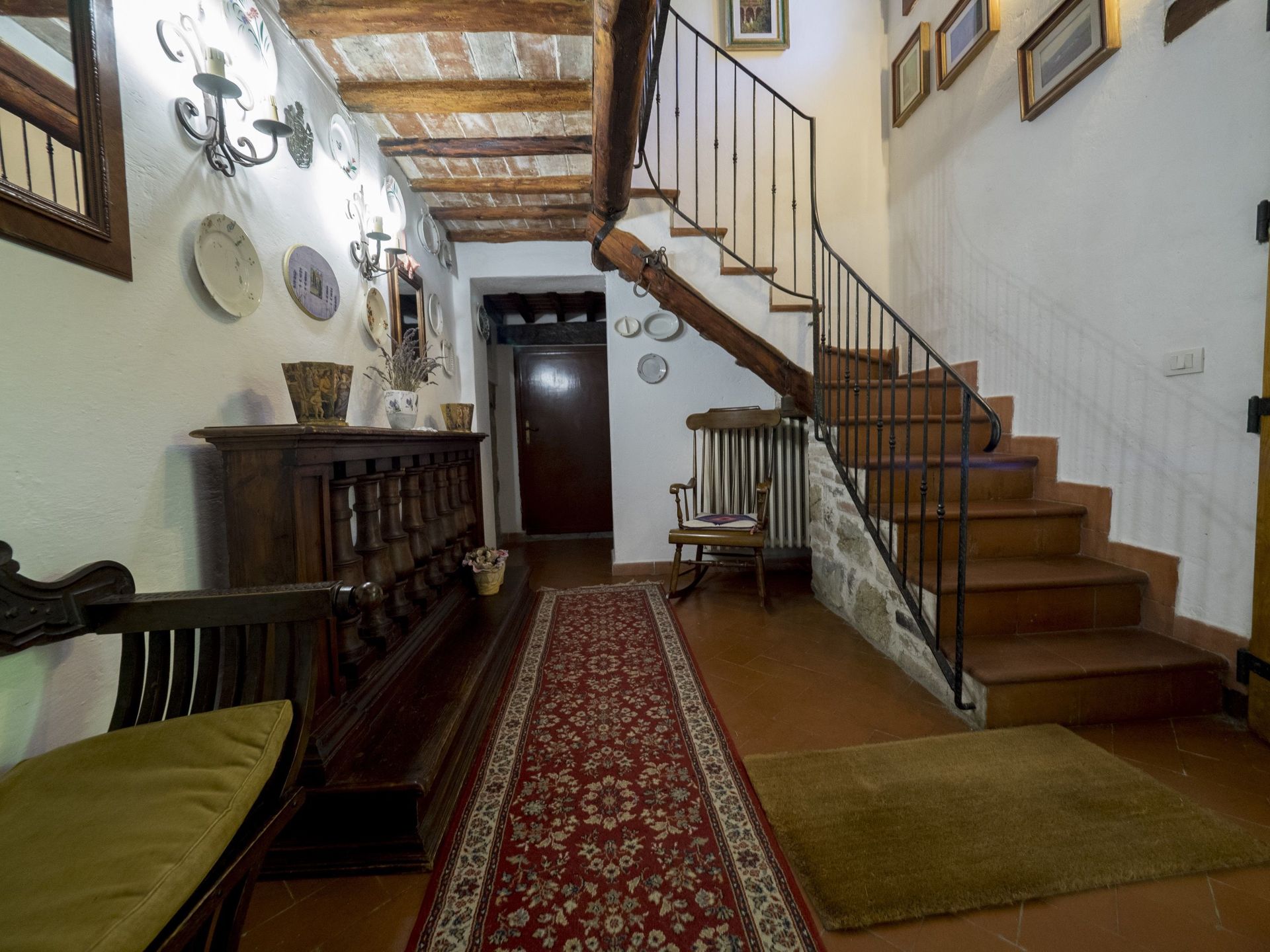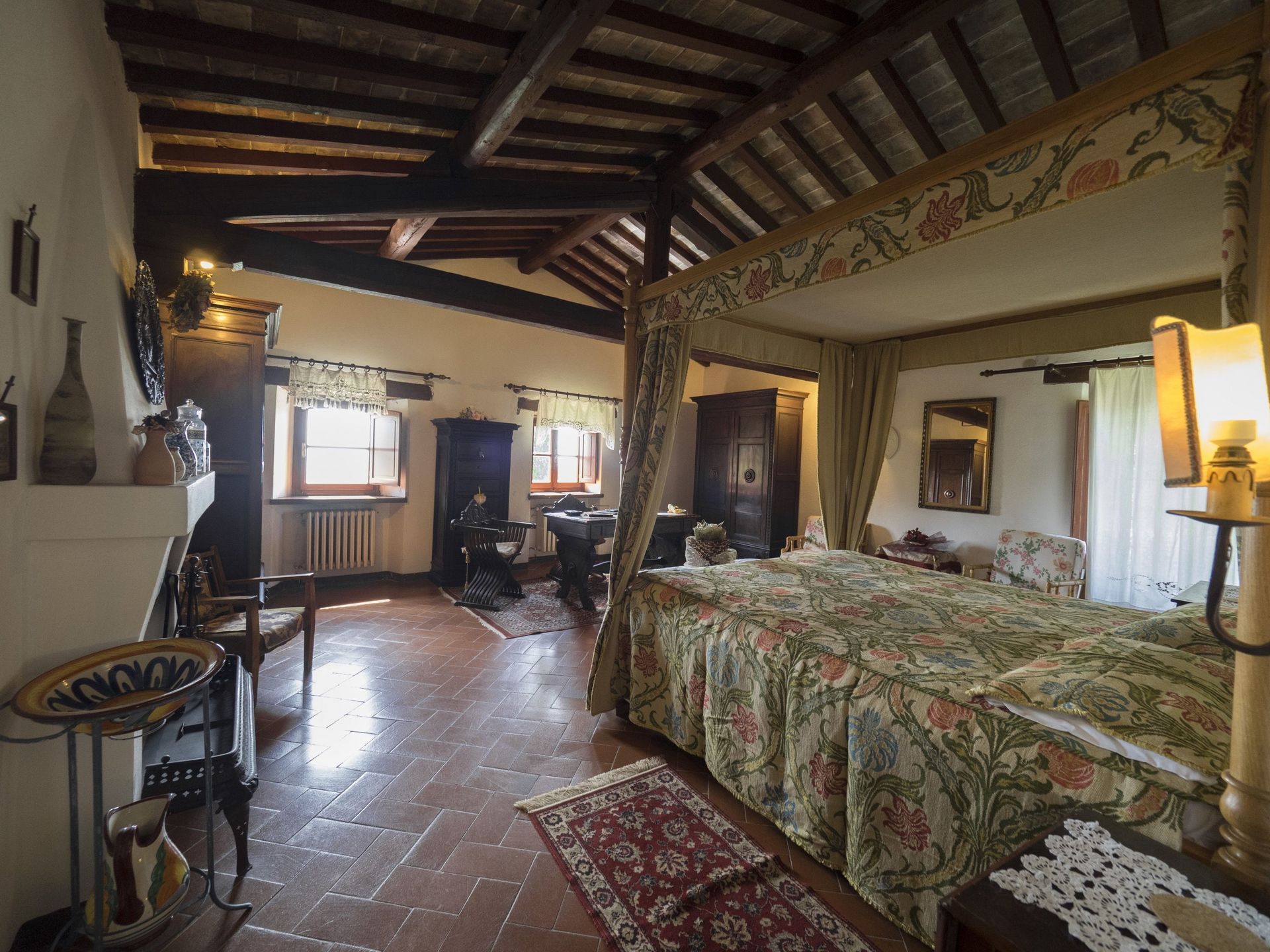 1° Piano: grande camera matrimoniale arredata con mobili antichi con camino, bagno con doccia (2 lavabi) e piccolo balcone con vista panoramica, camera con 2 letti singoli e bagno con doccia, camera matrimoniale con bagno con doccia. Spazio esterno privato e attrezzato con barbecue.