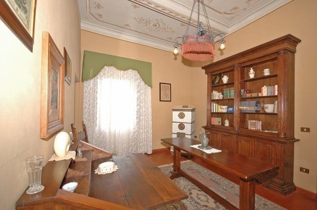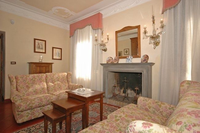 1° Piano: grande soggiorno con camino, piccolo studio di passaggio, 2 camere matrimoniali di cui una con camino e bagno privato con vasca, camera con 2 letti singoli, grande e luminoso bagno con vasca.