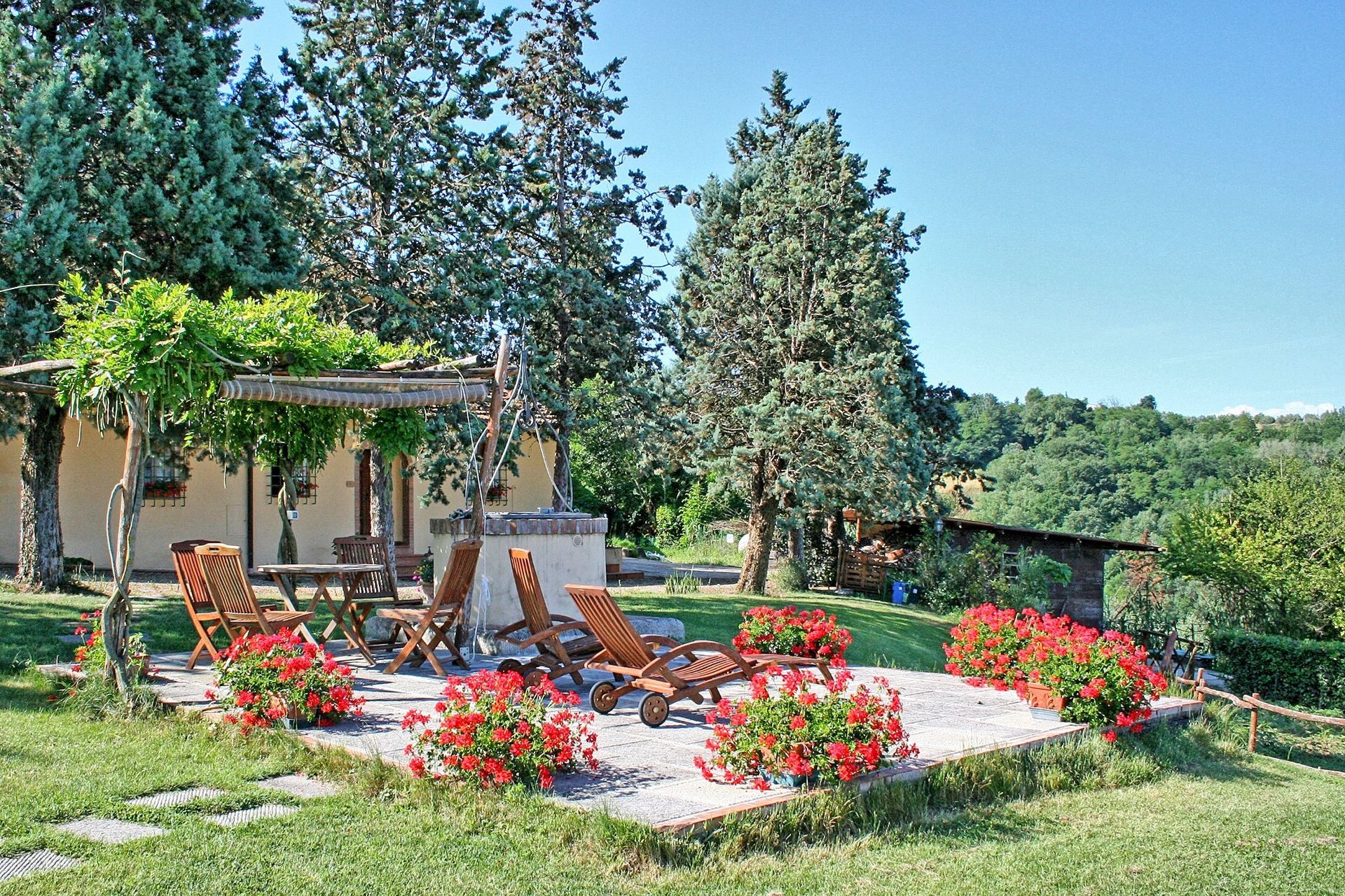 Spazio esterno privato ed attrezzato con una splendida vista sulla campagna circostante.